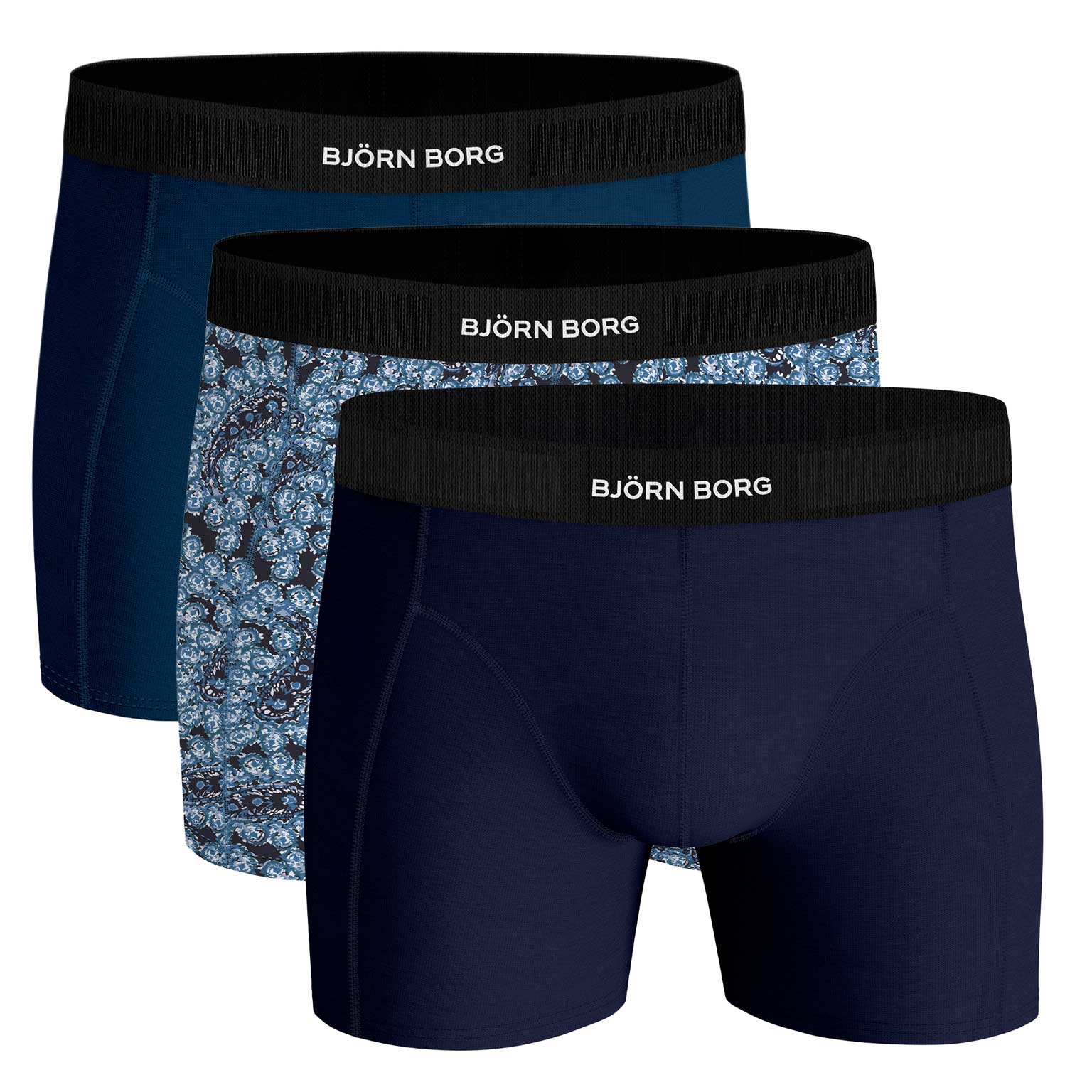 Björn Borg Multipack with 3 Premium Cotton Boxer Shorts. These Core shorts have a mid-rise cut and are worn comfortably on the hips. They feature a wide waistband and are made of heavier stretch cotton than a regular boxer from the essential cotton series, which helps maintain the fit better and makes these premium boxers last longer. With these three Björn Borg boxers, you have a good addition to your underwear drawer and are set for a while.