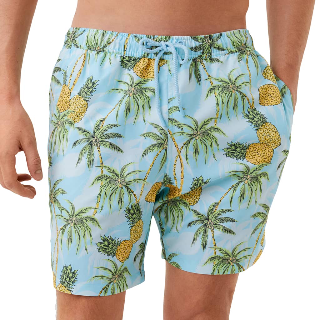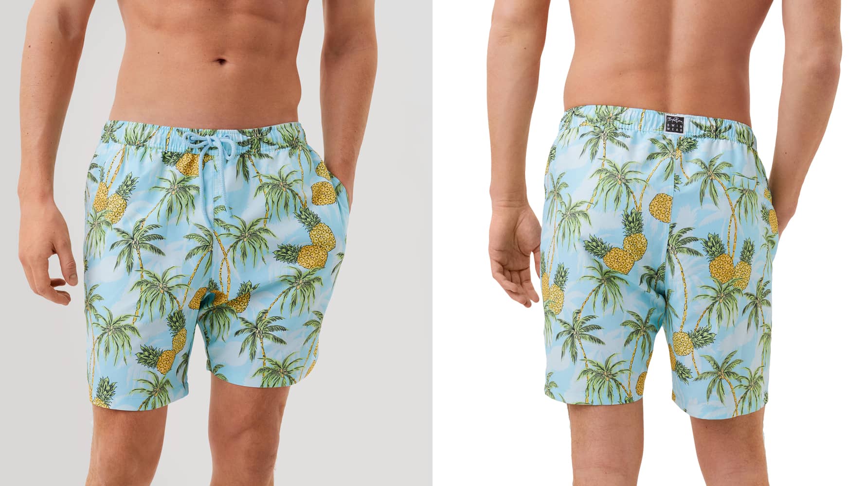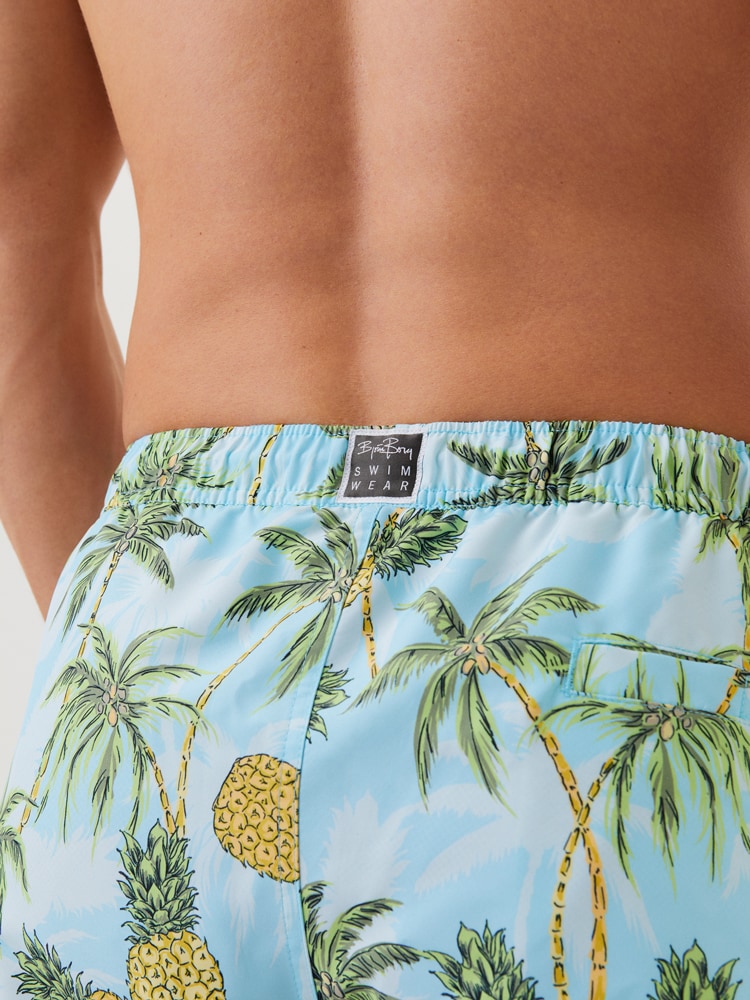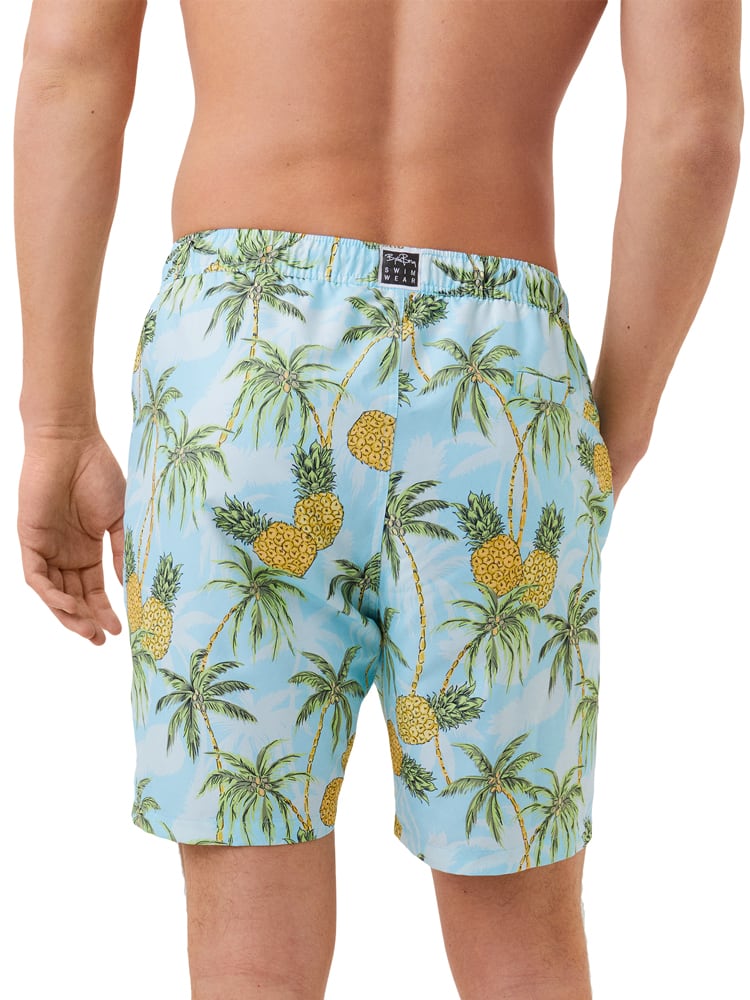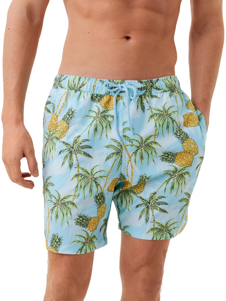 A summery swim short with a beautiful print, made from 100% eco-friendly recycled polyester. Polyester is water-repellent, allowing it to dry quickly. The swim short features an inner mesh lining, has pockets on the left and right sides, and a back pocket with Velcro to securely store your belongings. The swim short has an elastic waistband with an outer drawstring to adjust the beach short to the perfect fit.