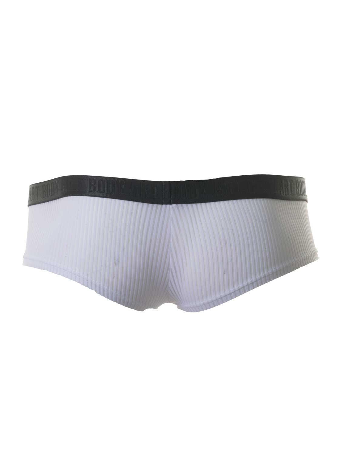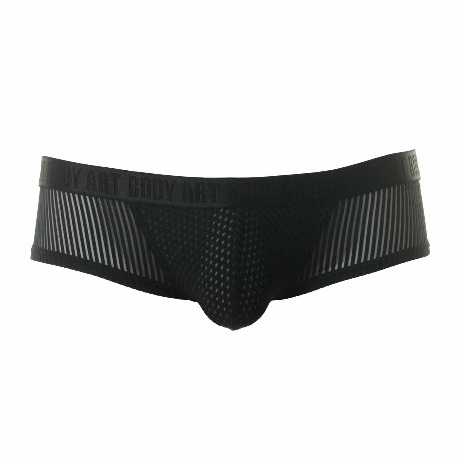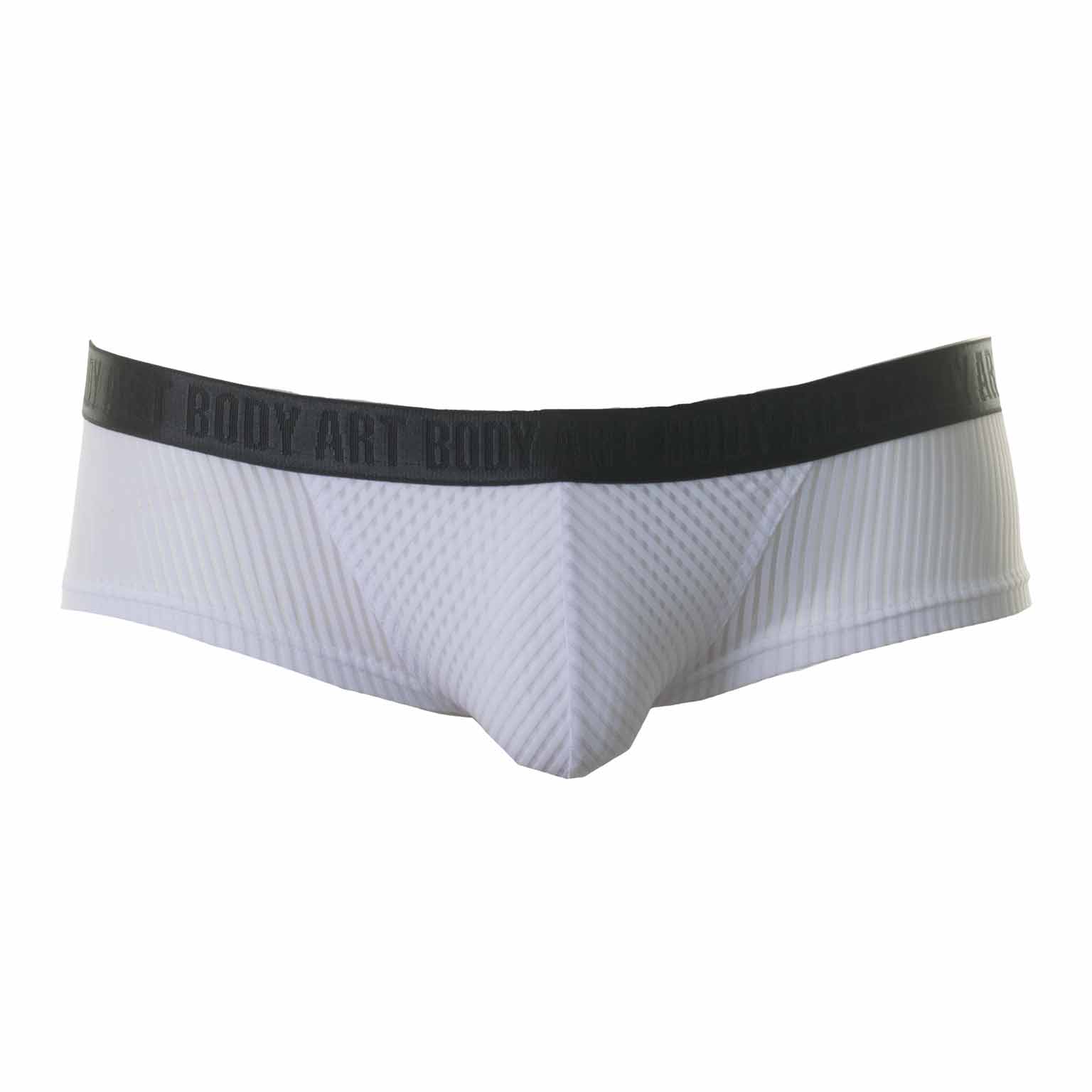 The Rhea hip brief from Body Art is an elegant yet daring men's brief that is worn low on the hips. The fabric is lightly transparent all around, allowing the skin to show through. The pouch is double-lined, making it less transparent than the surrounding fabric, keeping the hip brief more discreet. The fabric is made from soft and comfortable microfiber, which fits closely to the skin, making it almost invisible under tight clothing. The brief features a waistband with the Body Art logo. Available in white and black.