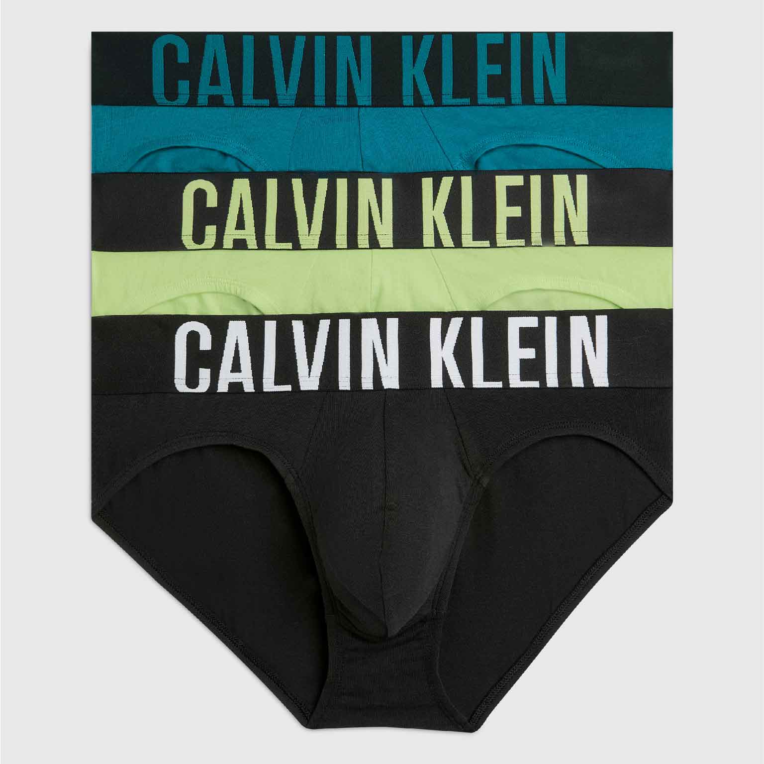 3 Hip Briefs from the Intense Power collection in a value multi-pack. The Intense Power collection is characterized by the wide waistband with the CALVIN KLEIN logo centered on the front. The men's briefs are worn on the hips. The fabric is made from comfortable stretch cotton, 21% of which is recycled cotton. Available in various color combinations.