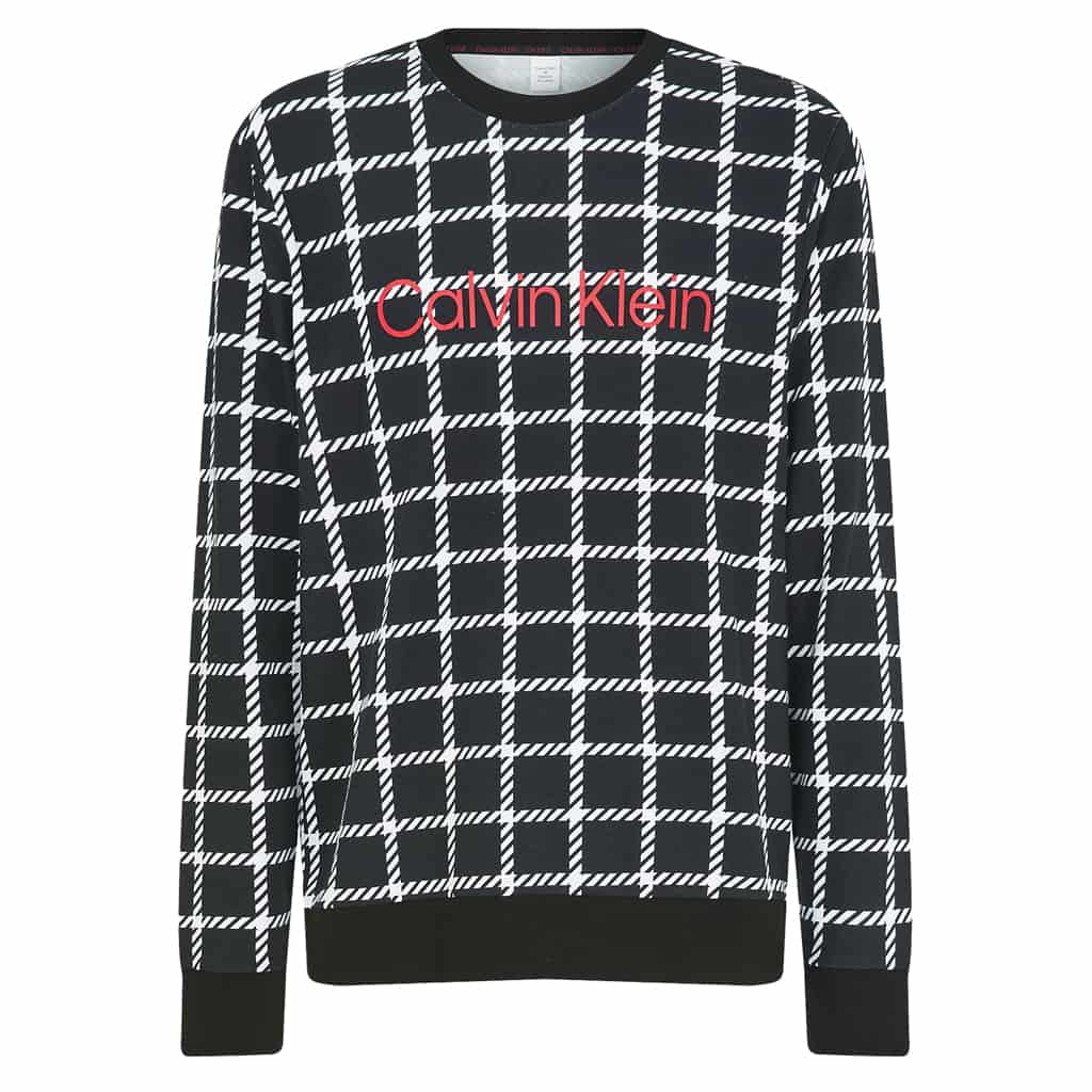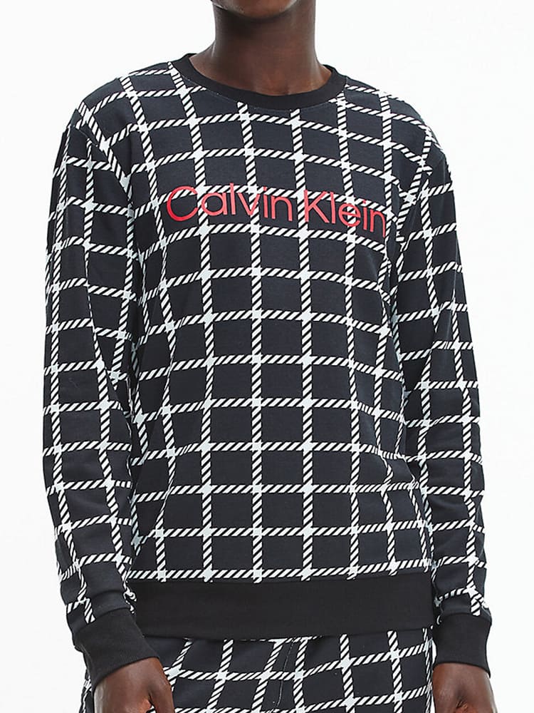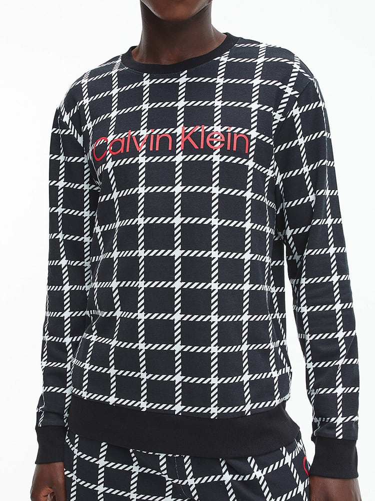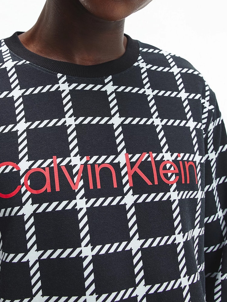 A Sweatshirt with a cool retro look from Calvin Klein. Made from a soft comfortable fleece with a beautiful checkered print and the Calvin Klein logo on the chest. Features a round neckline and long sleeves. You can pair the top with matching pants for a complete lounge set, perfect for relaxing at home on the couch.