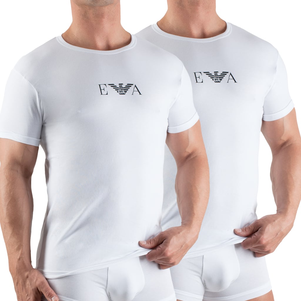 2 stylish shirts from Armani in a value pack from the CC715 Essential Monogram series. The shirts are made from stretch cotton to fit perfectly on the body. Designed with a round neckline and featuring the EA logo with the Giorgio Armani Eagle monogram on the chest.