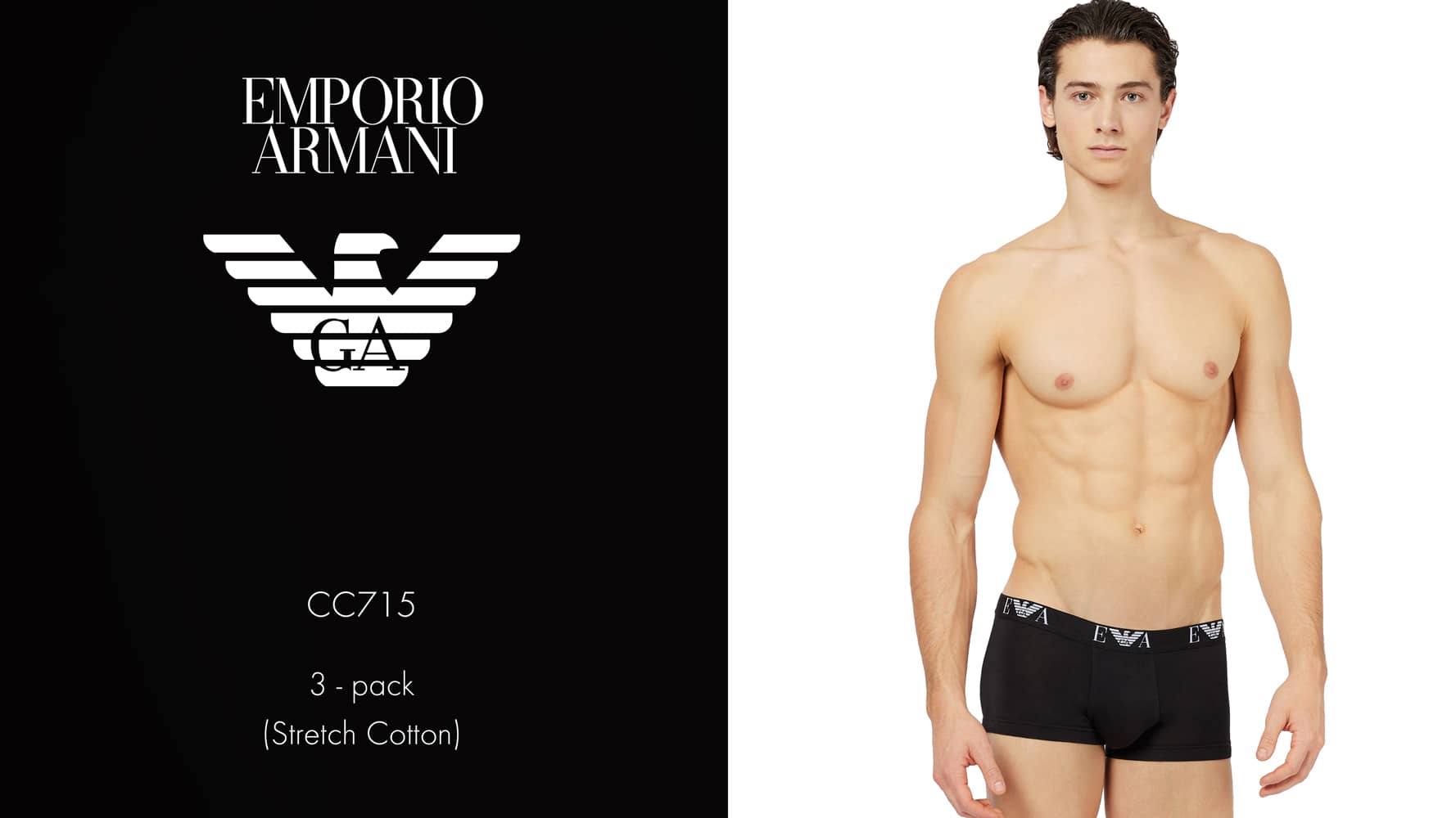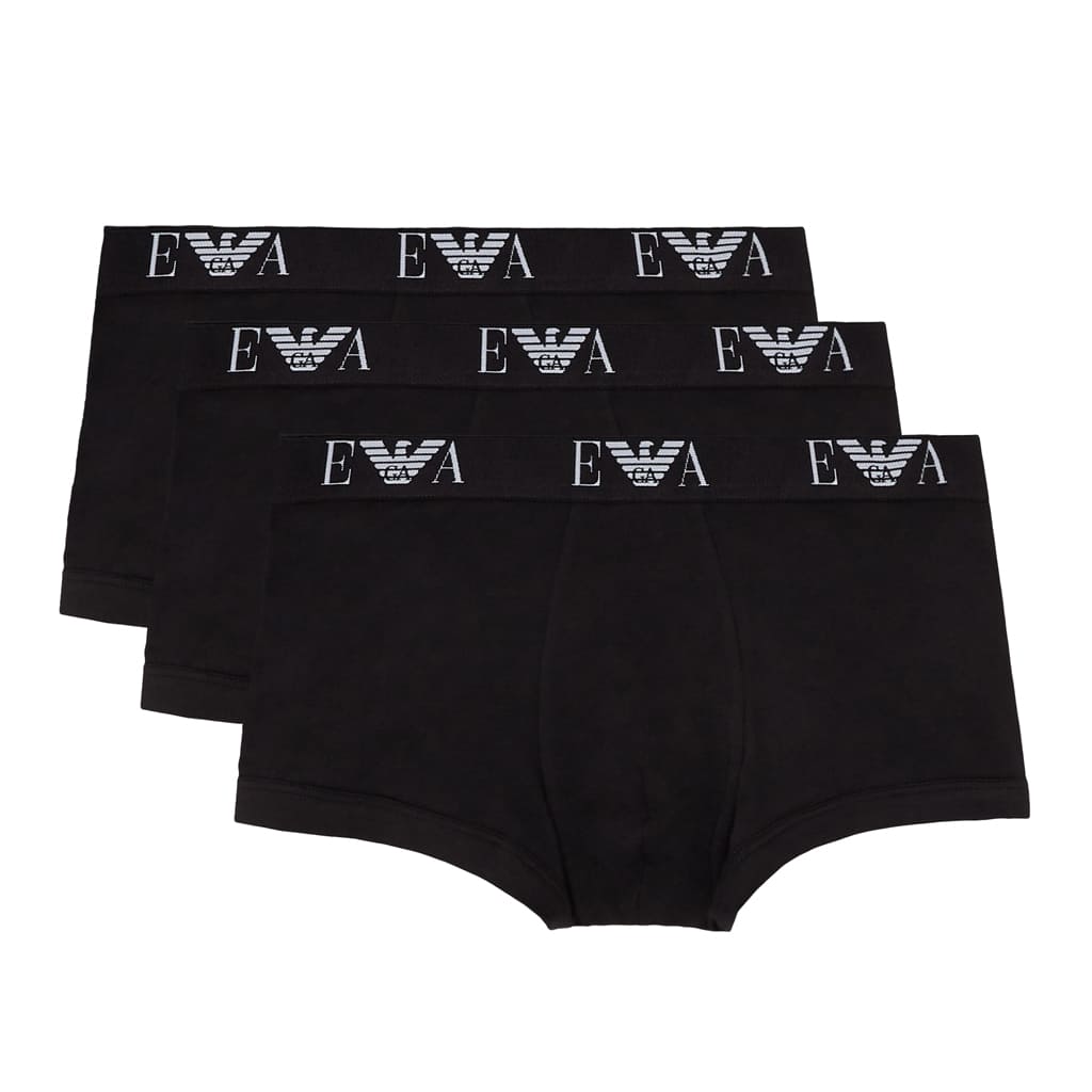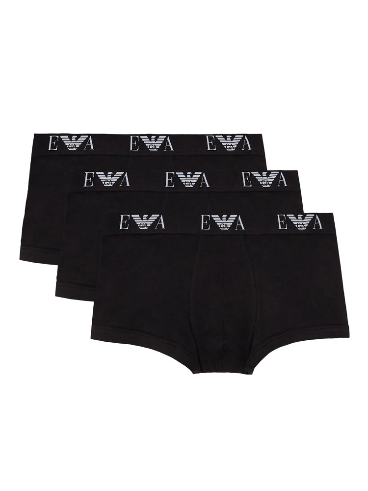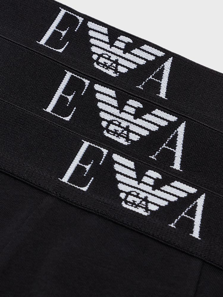 Value 3-pack from Emporio Armani, featuring 3 trunks from the CC715 Essential series. The short boxers are made from stretch cotton and designed for everyday use. The boxers have a waistband with the EA logo and the iconic Eagle monogram.