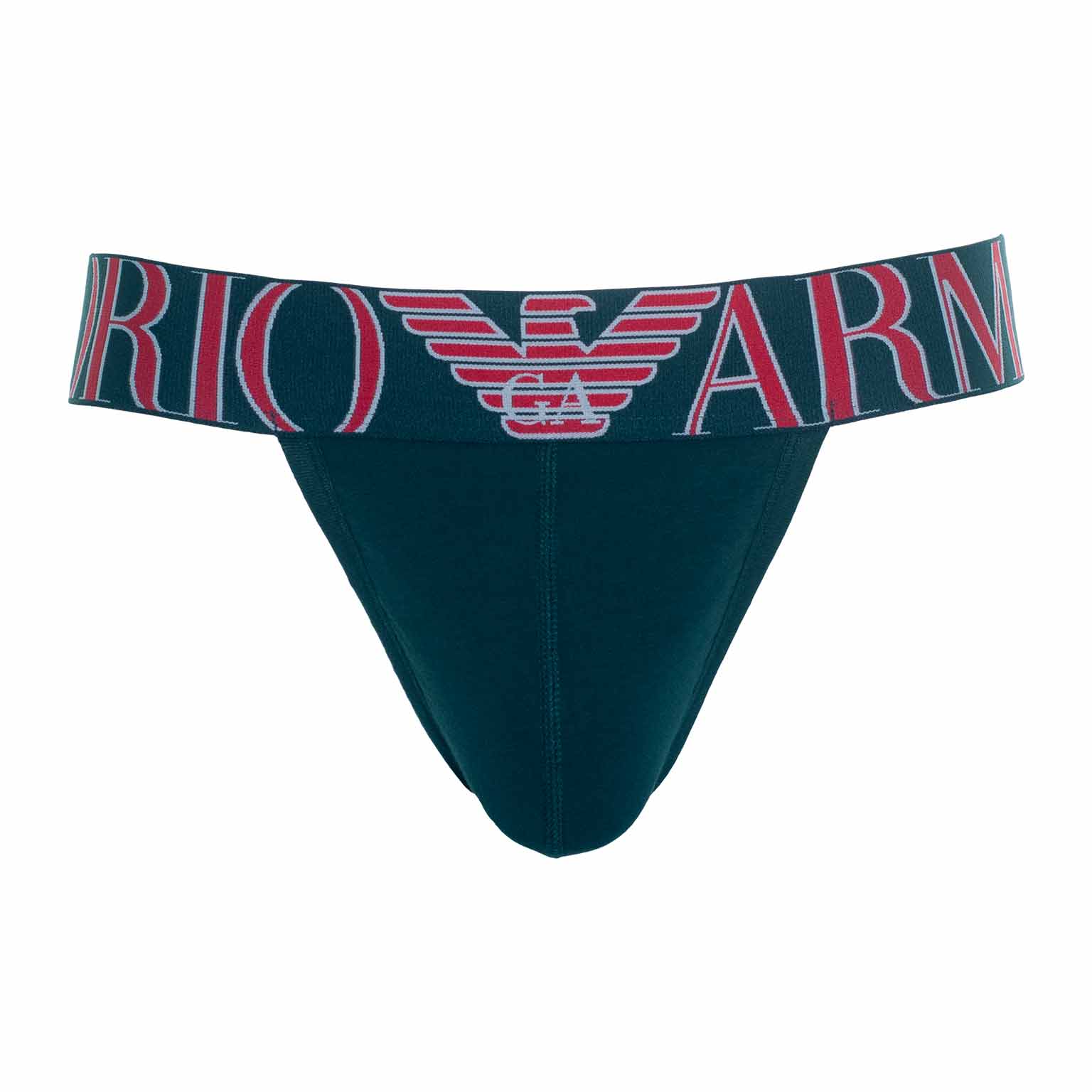 Jockstrap from Emporio Armani with a wide elastic waistband featuring the logo and the iconic eagle in a contrasting color. The jockstrap is made from comfortable stretch cotton and has wide straps for extra support. Available in various colors.