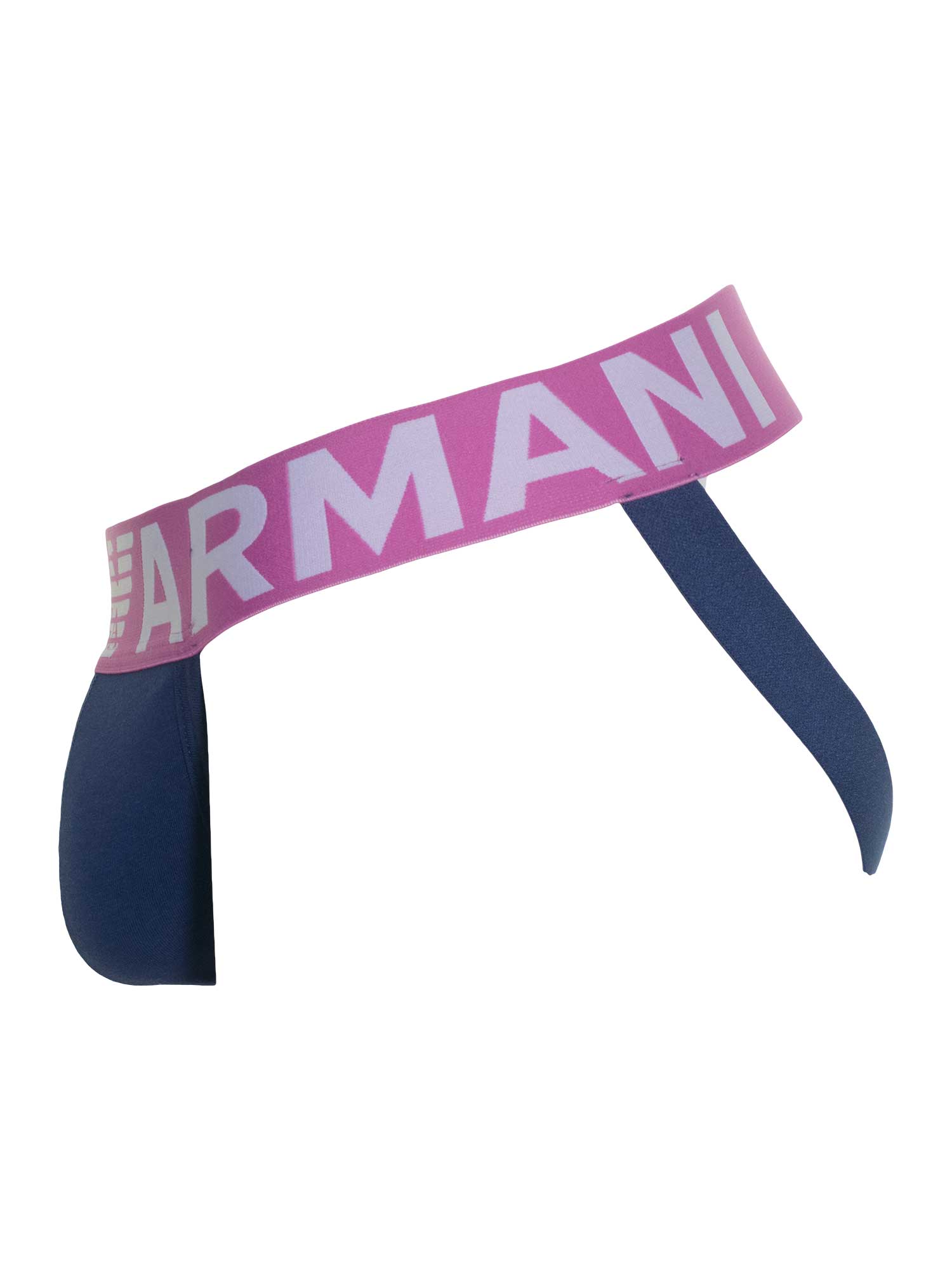 A logo adorned elastic band featuring a new font, is the recurrent theme that runs throughout the Megalogo collection. This stretch cotton line combines the brand’s high-visibility logo with the comfort of impeccable design. The cotton jockstrap feels comfortable against the skin, and the soft straps give you exactly the right amount of support. The jockstraps feature the Armani logo, in a contrasting waistband, and are avaialable in 4 colors.