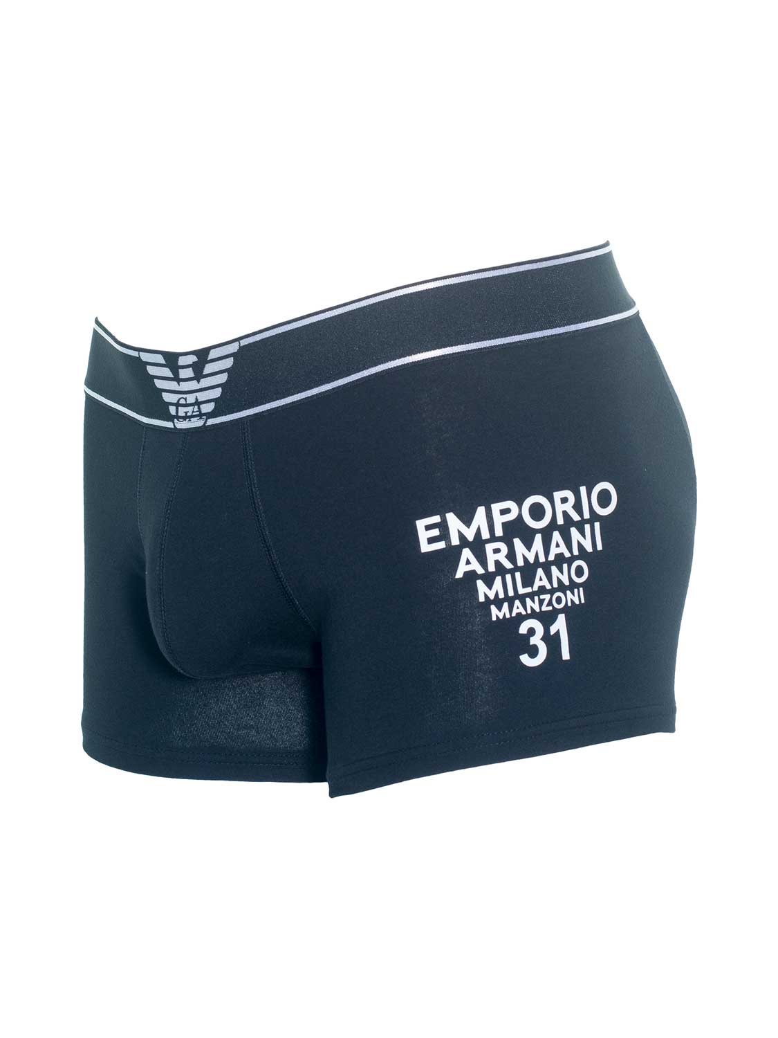 Relax in comfort with these Armani stretch cotton trunks. Cotton is easy to clean and maintain, breathes perfectly, wicks away moisture, and feels amazing against the skin. Available in red, black, navy and grey, with the Emporio Armani Logo proudly displayed on the wide waist-band.