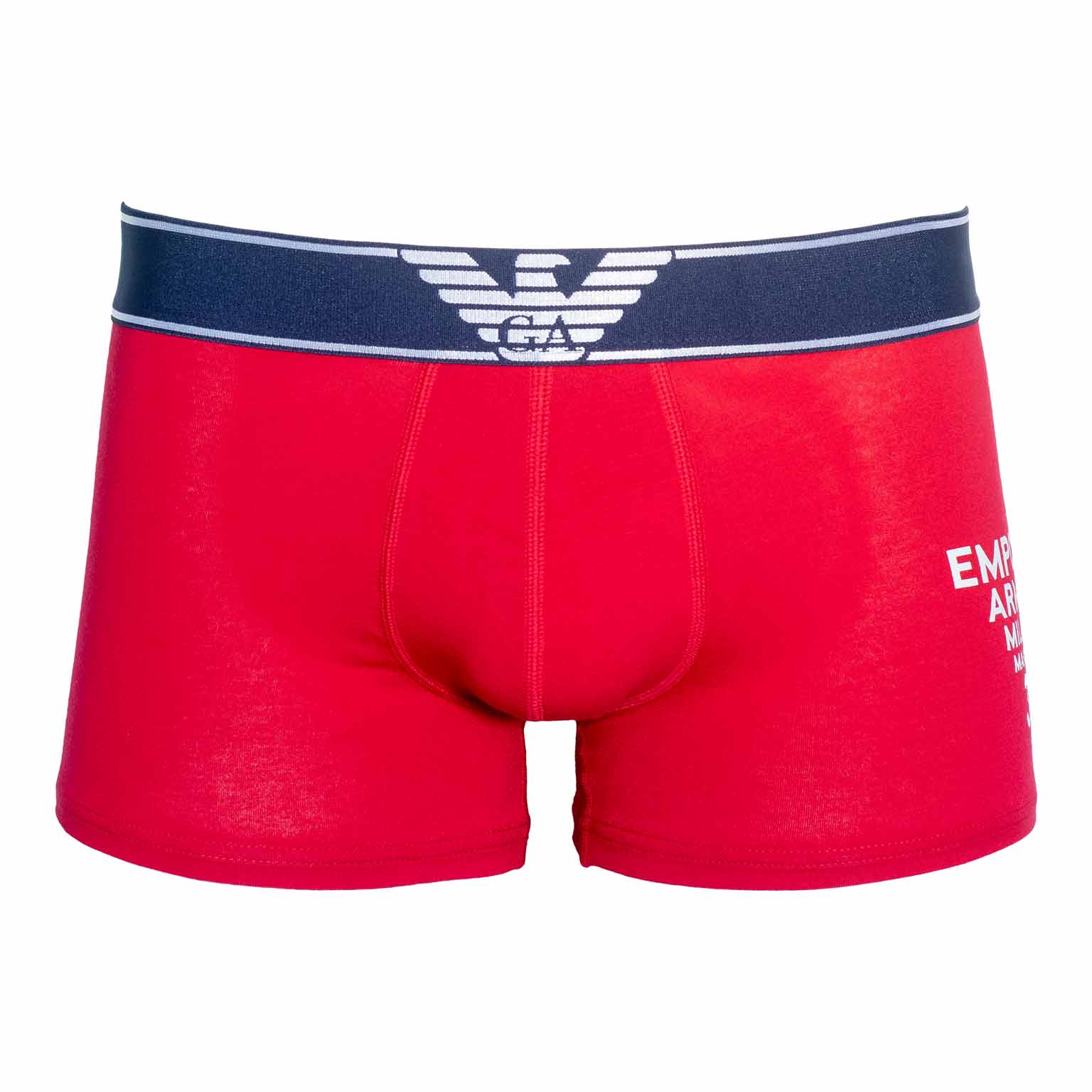 Relax in comfort with these Armani stretch cotton trunks. Cotton is easy to clean and maintain, breathes perfectly, wicks away moisture, and feels amazing against the skin. Available in red, black, navy and grey, with the Emporio Armani Logo proudly displayed on the wide waist-band.