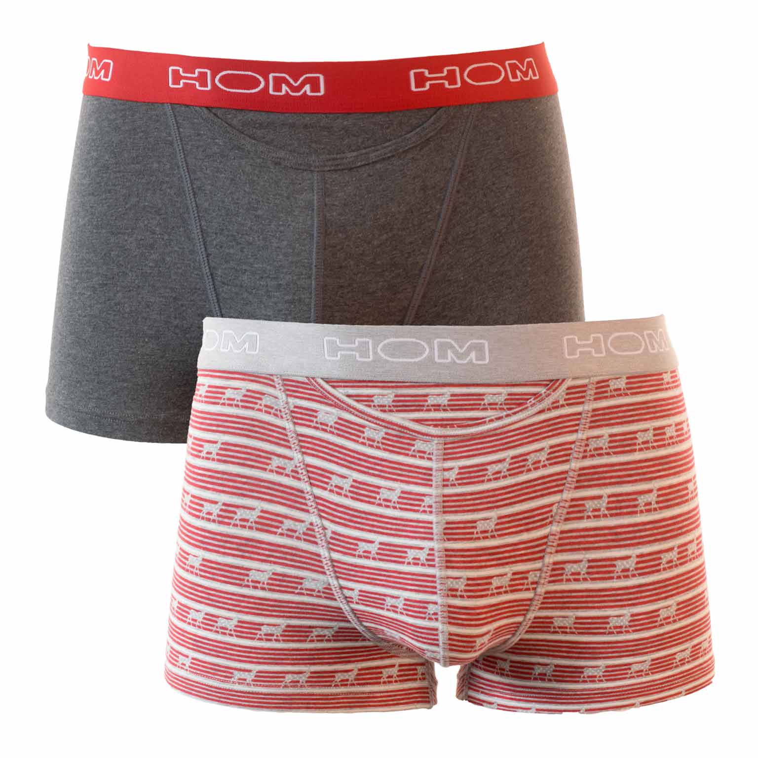 Produced in christmas colours, one boxer brief features a stylish, nordic reindeer pattern, while the other is a solid grey with a christmas red elastic waistband. As always, the HOM logo is proudly displayed around the secure waistband. The boxer briefs feature the HO1 horizontal fluy for which HOM is famous for.