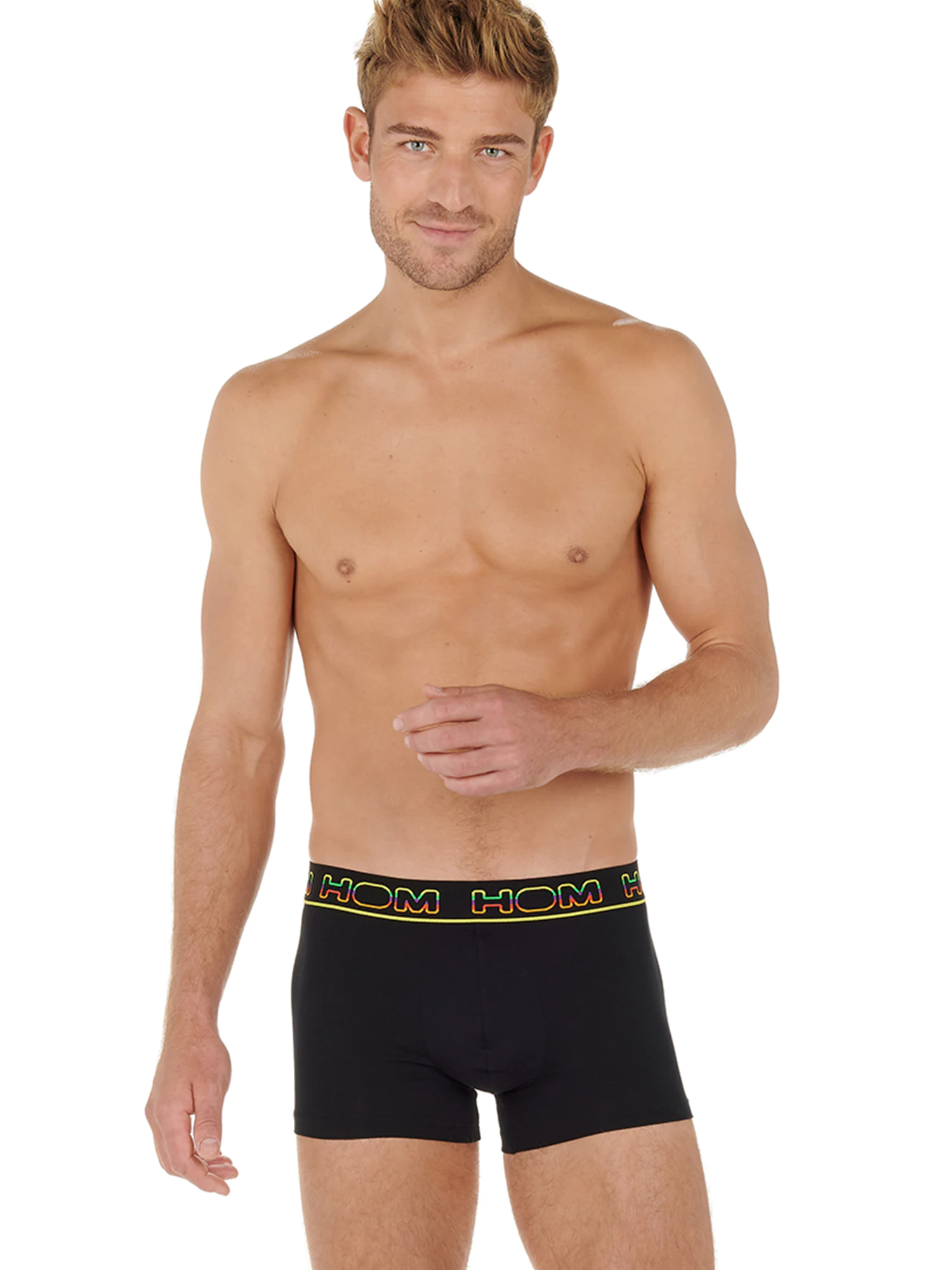 The 2p Boxer Briefs - Ivano is an affordable 2-pack. The boxers are part of the HOM BOXERLINES series and are made from combed stretch cotton. These men's boxers are suitable for daily use and feature a pouch at the front for extra support and comfort. The BOXERLINES series is made from a lighter quality cotton than the single packs. The Ivano boxers come in black and red with a sporty colorful elastic waistband.