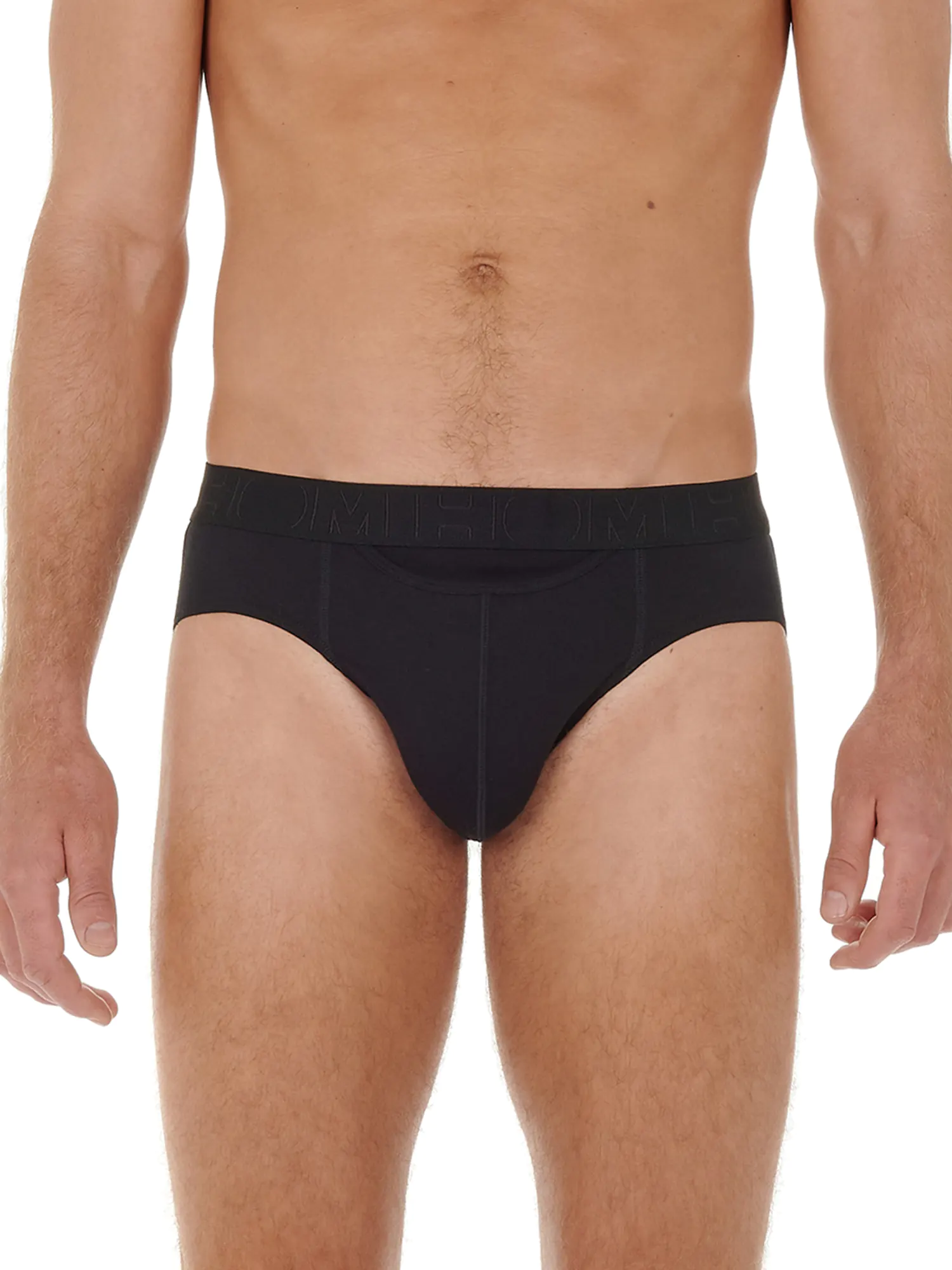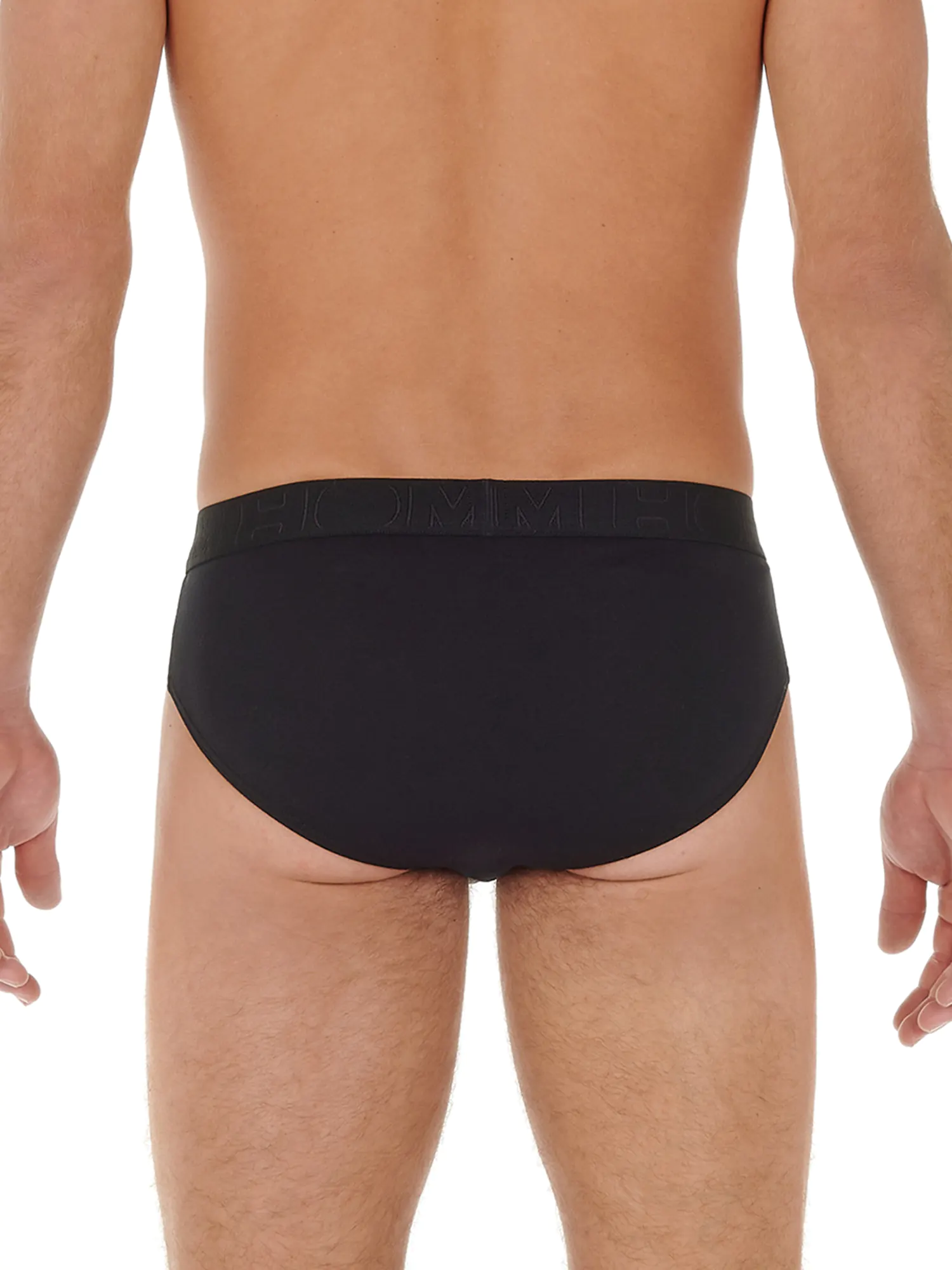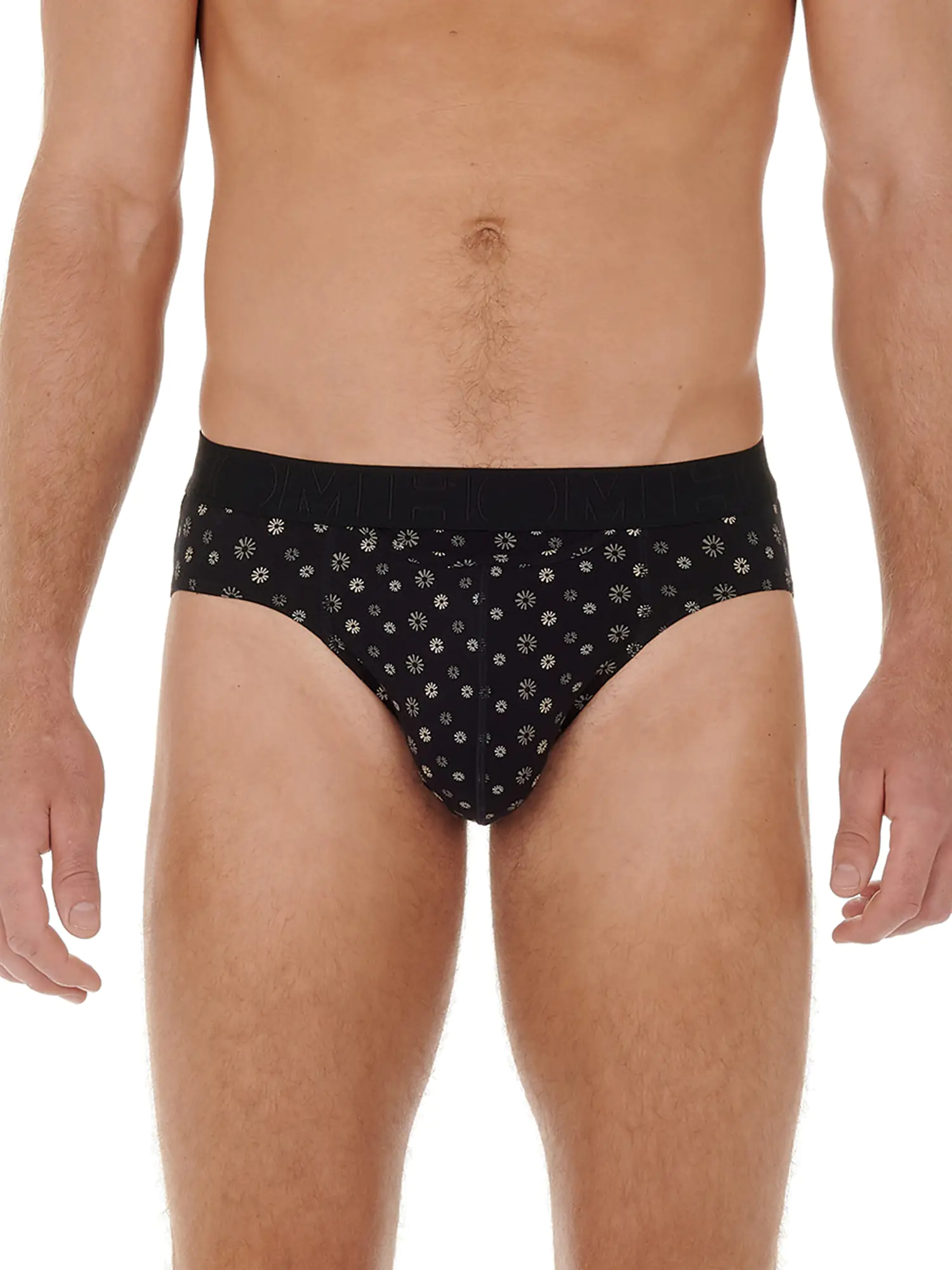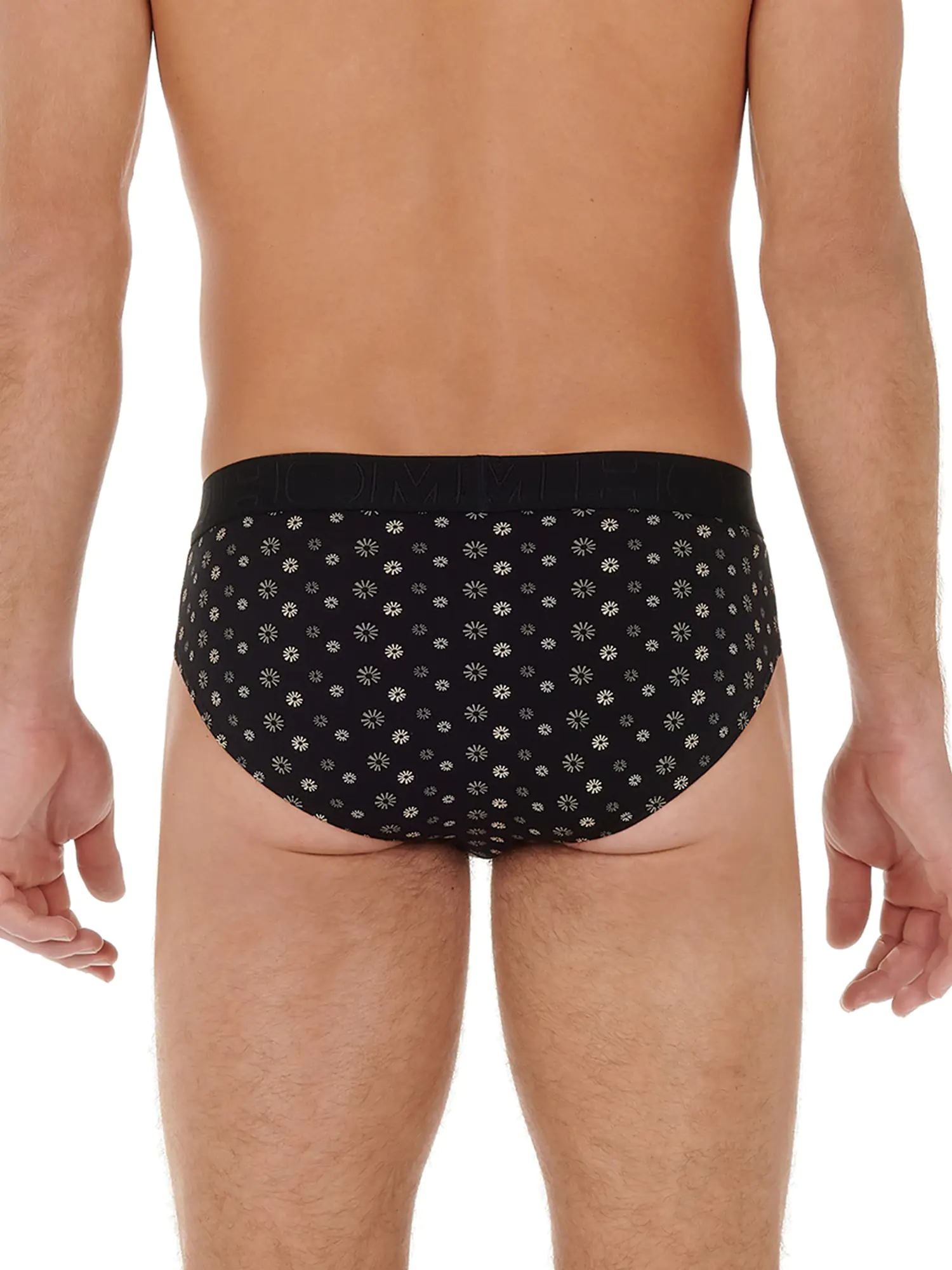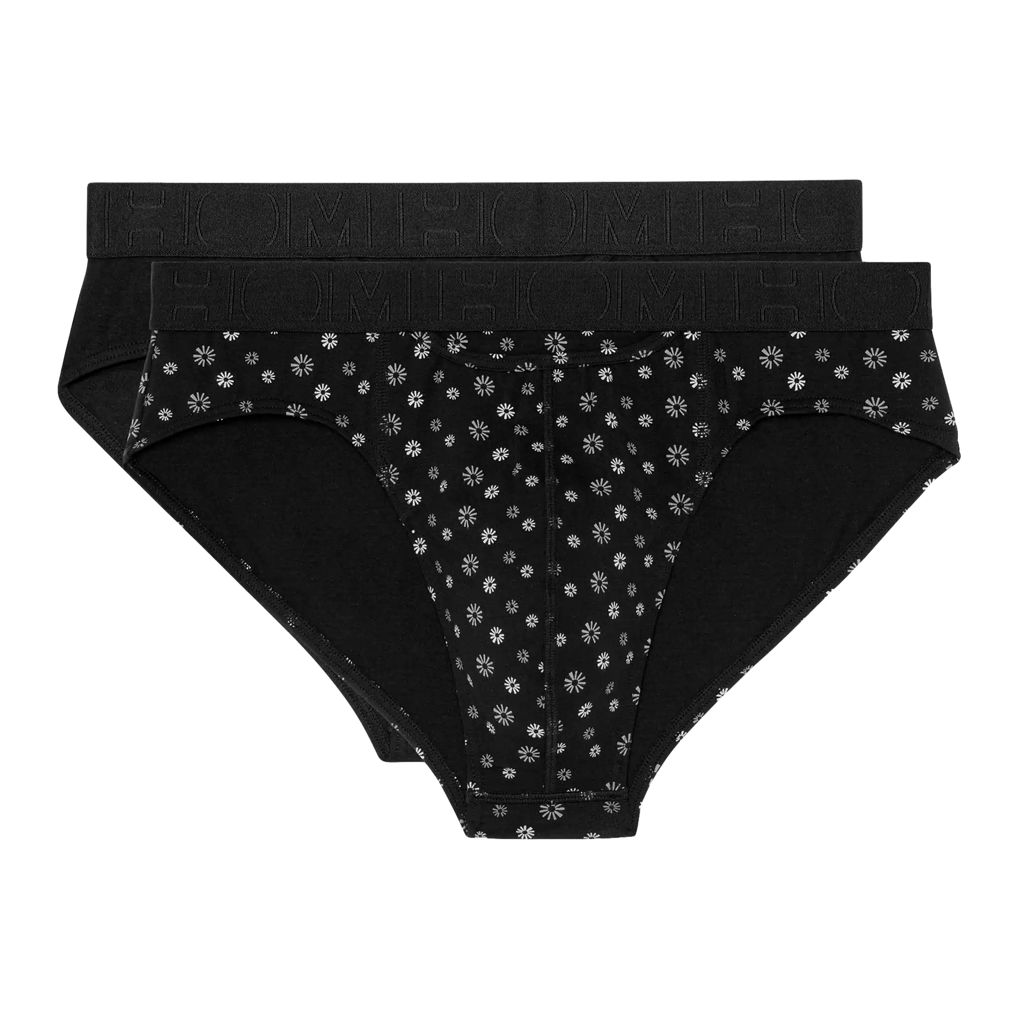 2 Mini Briefs in an affordable 2-pack featuring the horizontal fly that HOM is known for, providing extra convenience and comfort. These HO1 men's briefs are part of the Boxerlines series and are made of combed stretch cotton. This multipack includes one brief in black and one brief with a subtle floral print in gray on a black background. The briefs are suitable for daily use and are designed with a pouch at the front for extra support and comfort. The Boxerlines series is made of a lighter quality cotton than the single packs.