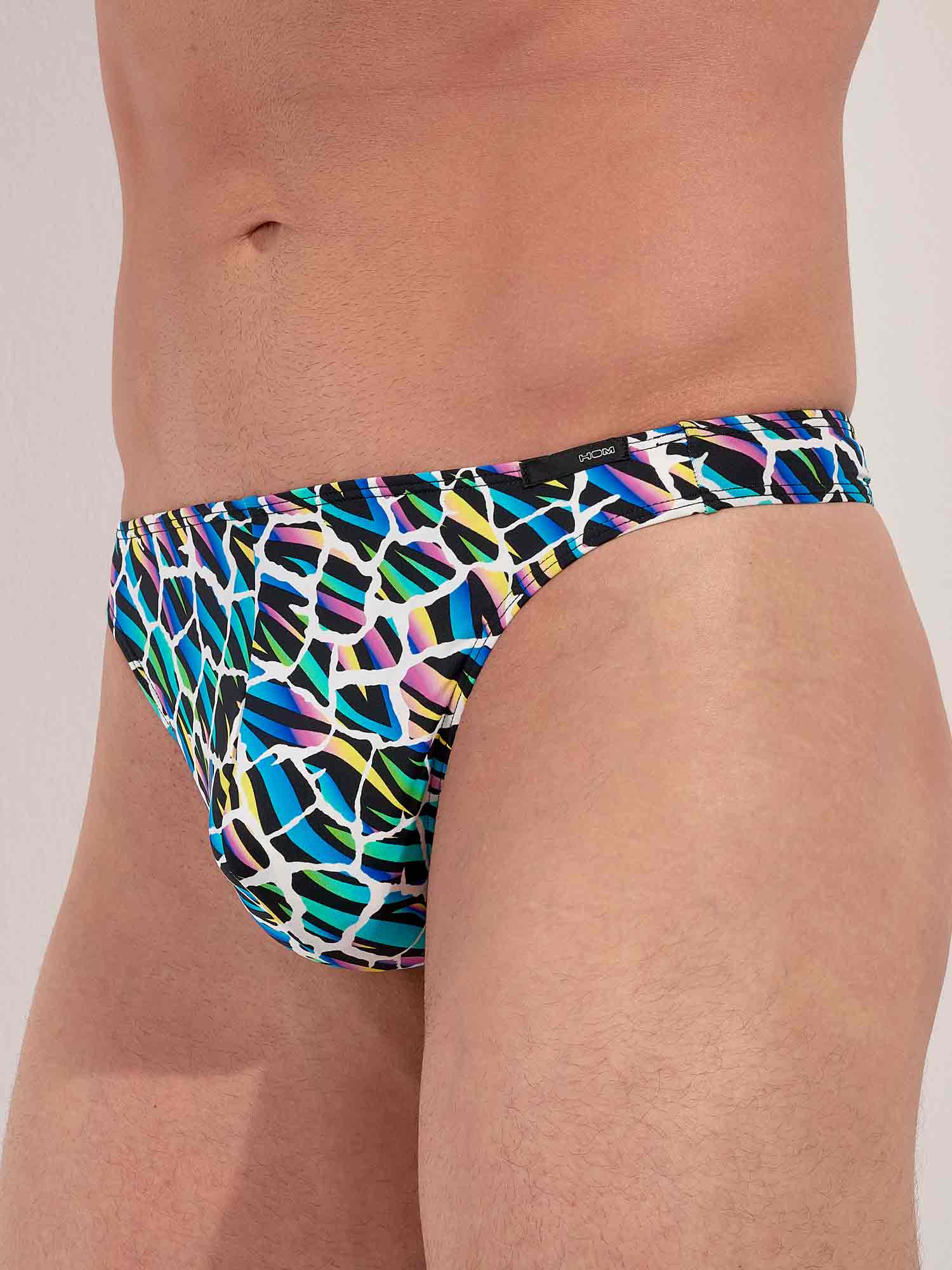 Because it is made of microfiber, the string fits closely against the skin. Microfiber is highly resistant to friction damage and dries quickly. The elastic waistband does not pinch or press into the skin, making this men’s string a pleasure to wear. Funky Styles is a fashion item and available in limited prints.