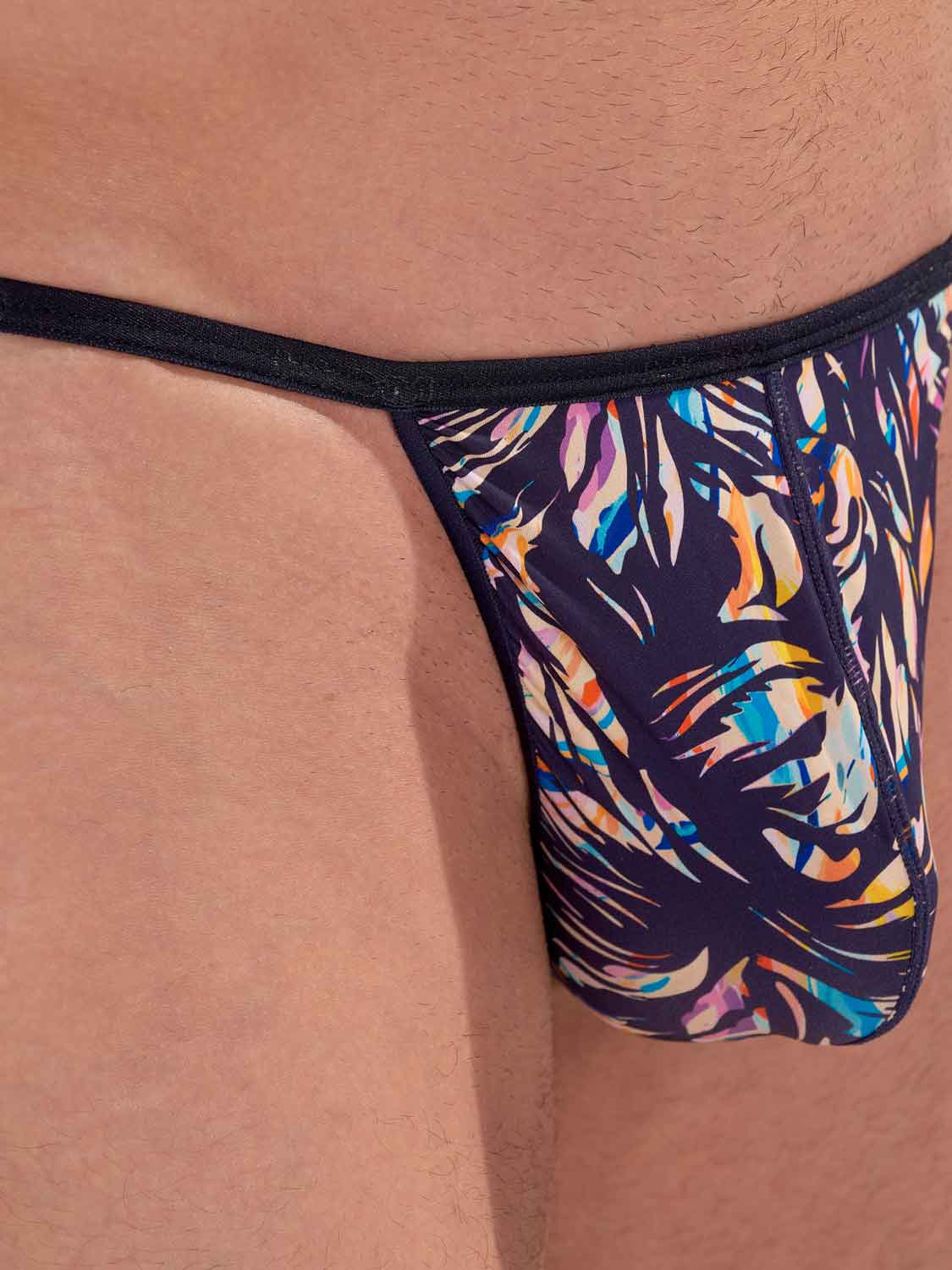The HOM Viscaya g-string from the Temptation collection is refined seduction at its most elegant. Crafted in ultra-thin microfiber, it hugs the body like a second skin and stays discreet under close-fitting outfits. The harmonious pastel floral fresco on deep navy adds an exotic softness, while the minimalist cut and slim straps with a subtle inlaid HOM logo keep the silhouette sharp and modern. A confident choice for the man who wants luxury, comfort and allure in one piece.