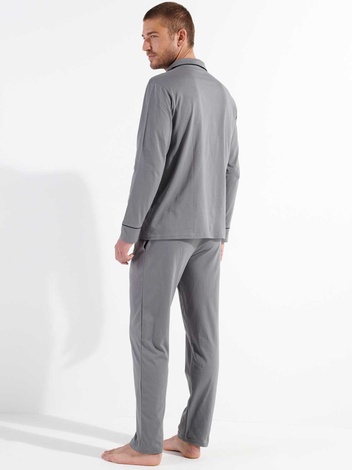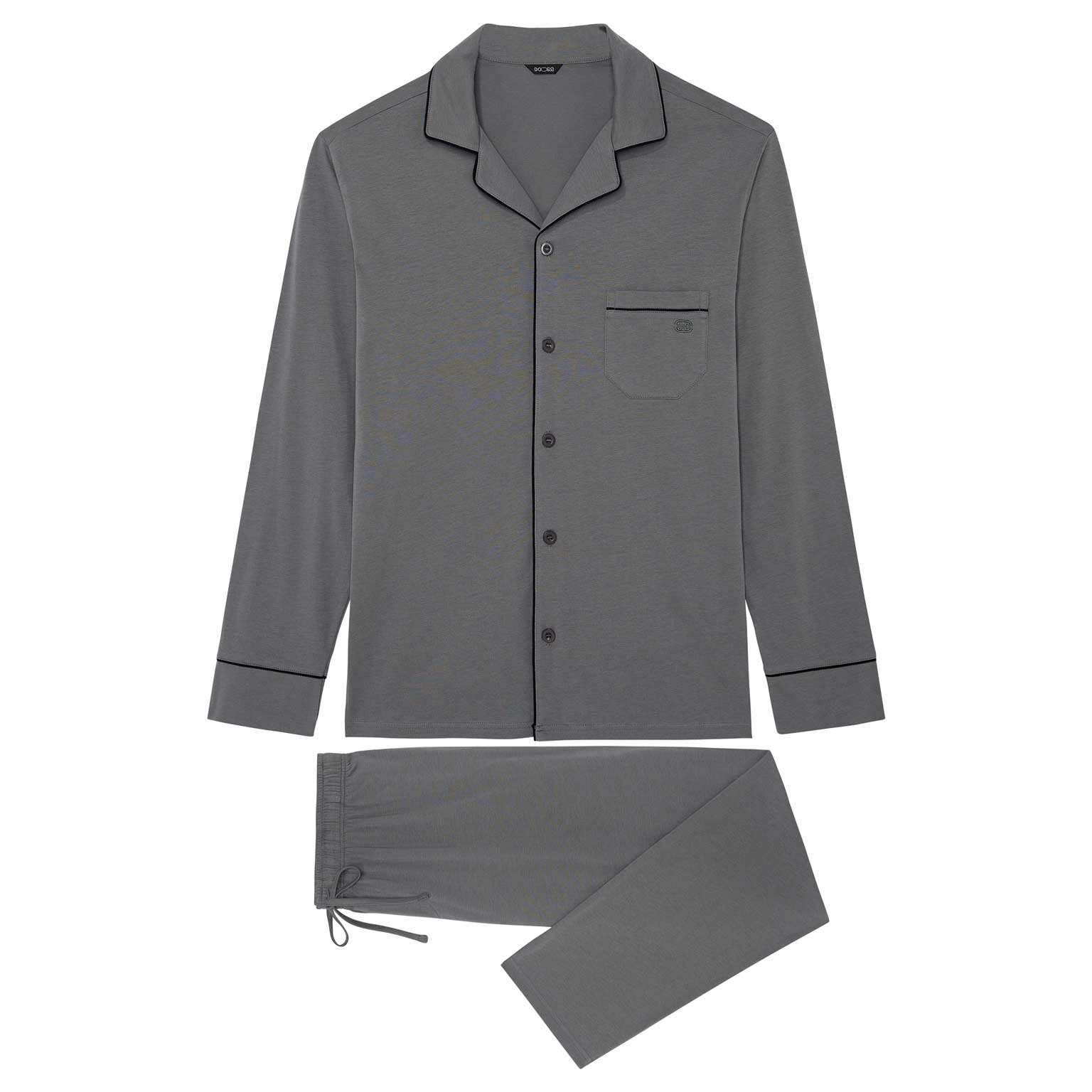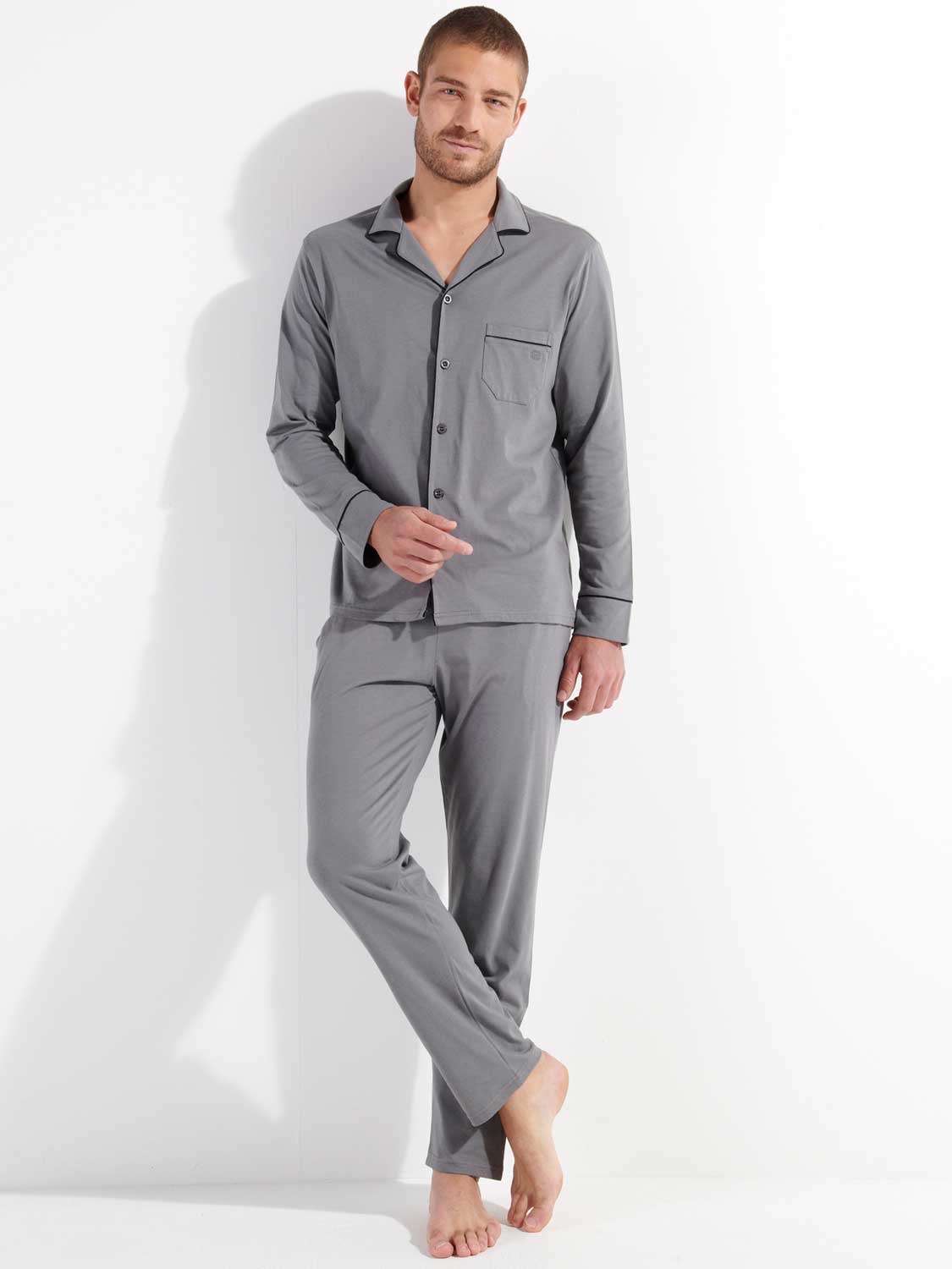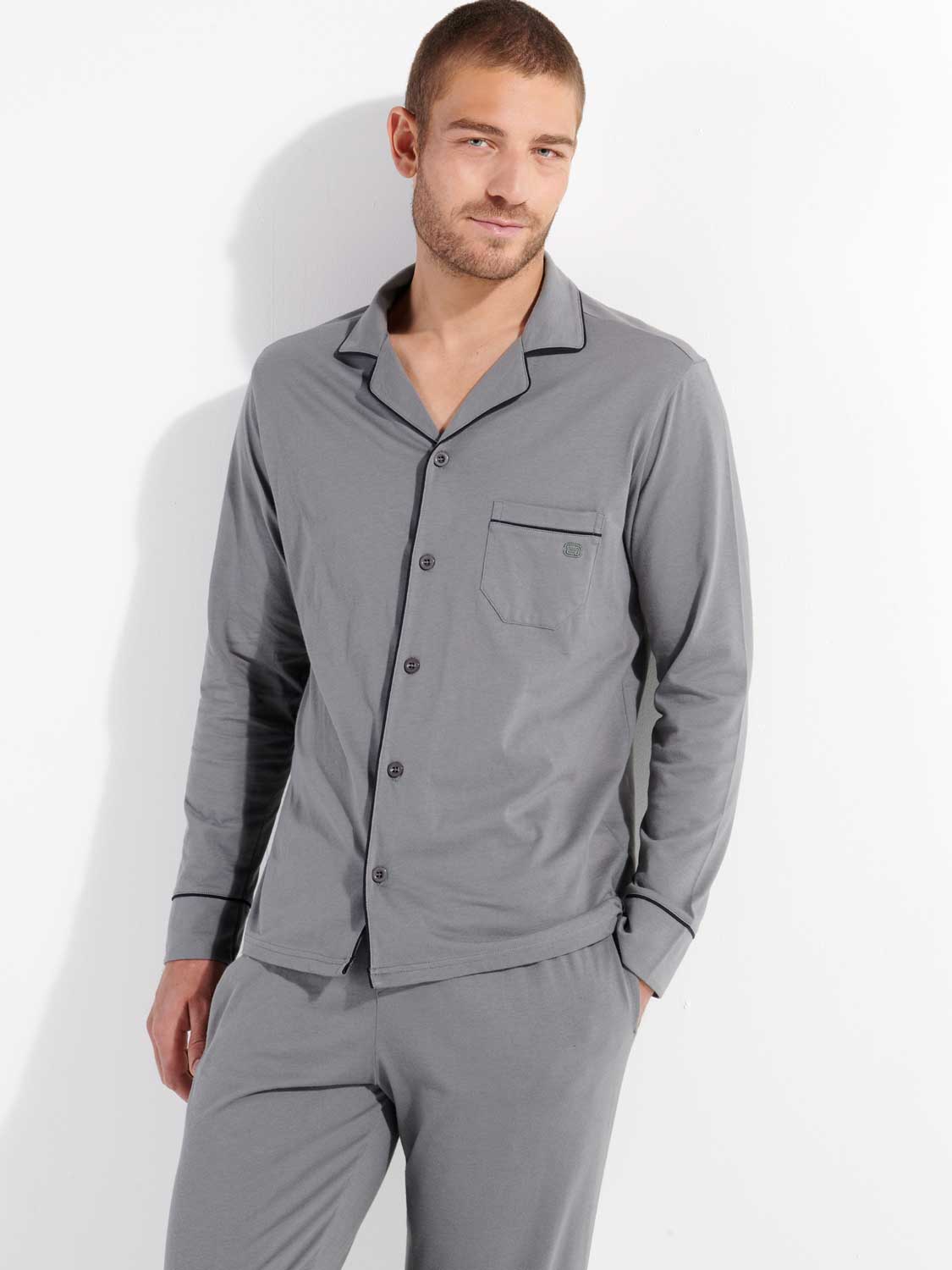 The Albert Long Sleepwear is a classic "button down" pajama with a modern touch, made from 100% jersey cotton. The pajama features a long-sleeve shirt with a chest pocket on the left side. The long pants come with a drawstring to adjust them perfectly to size.