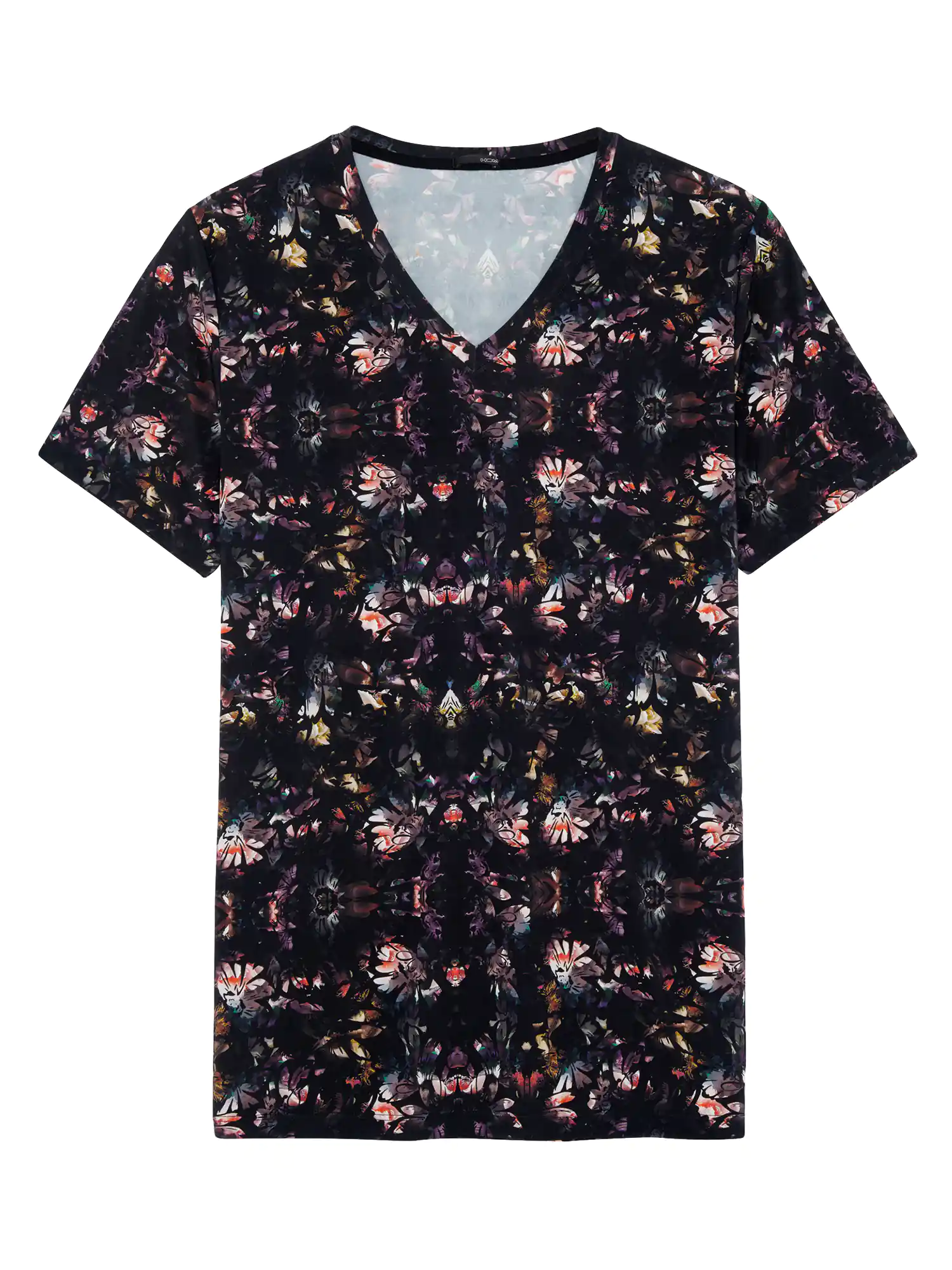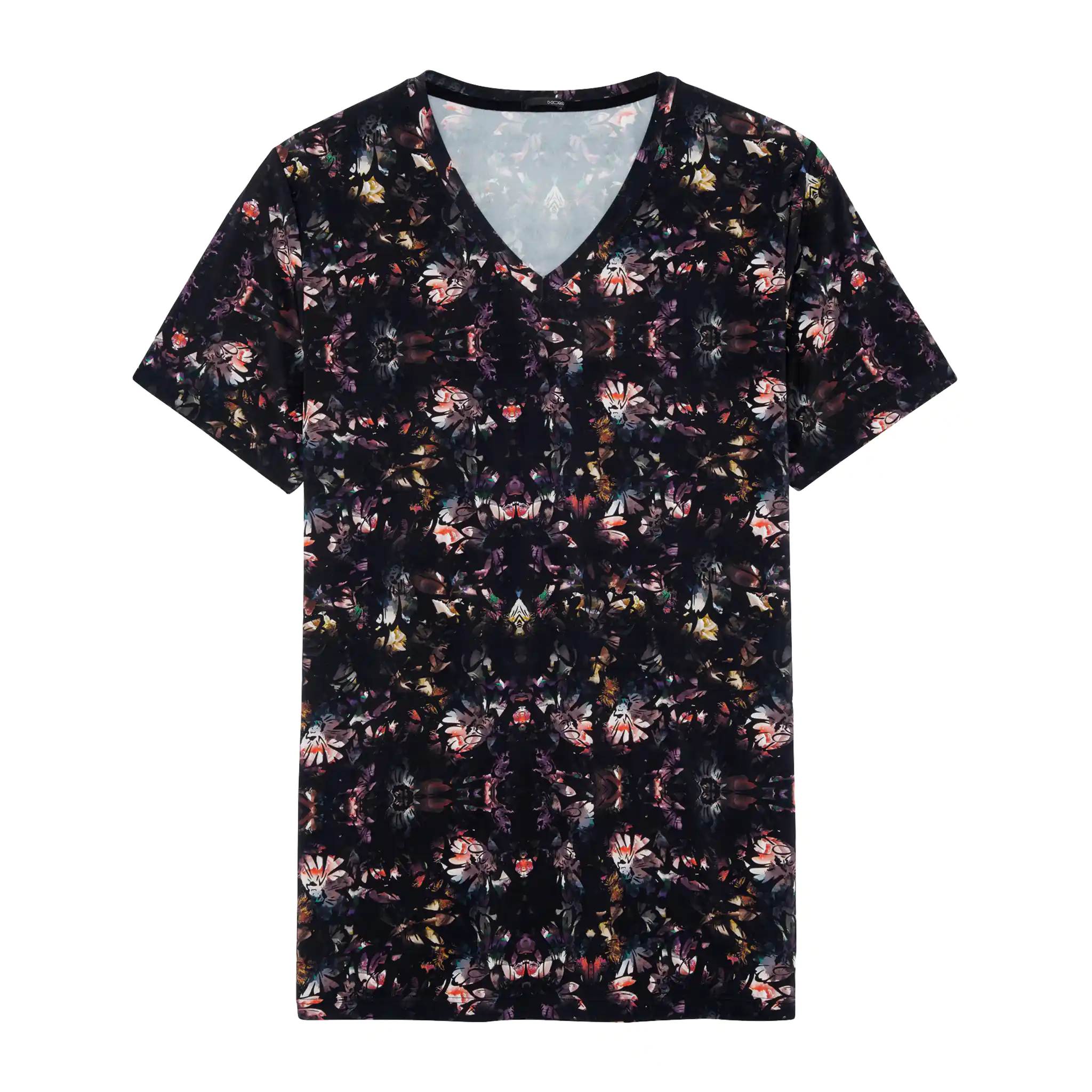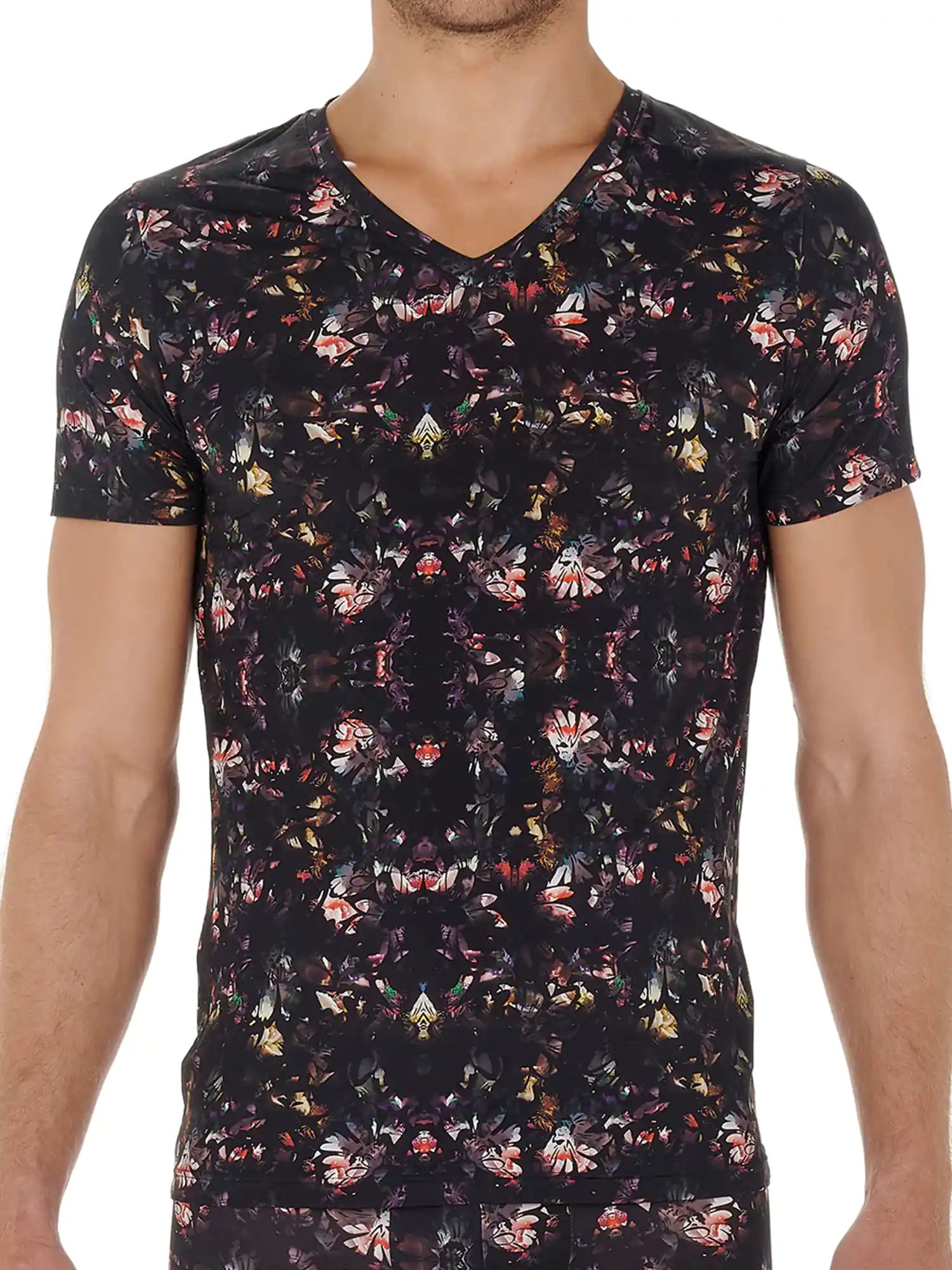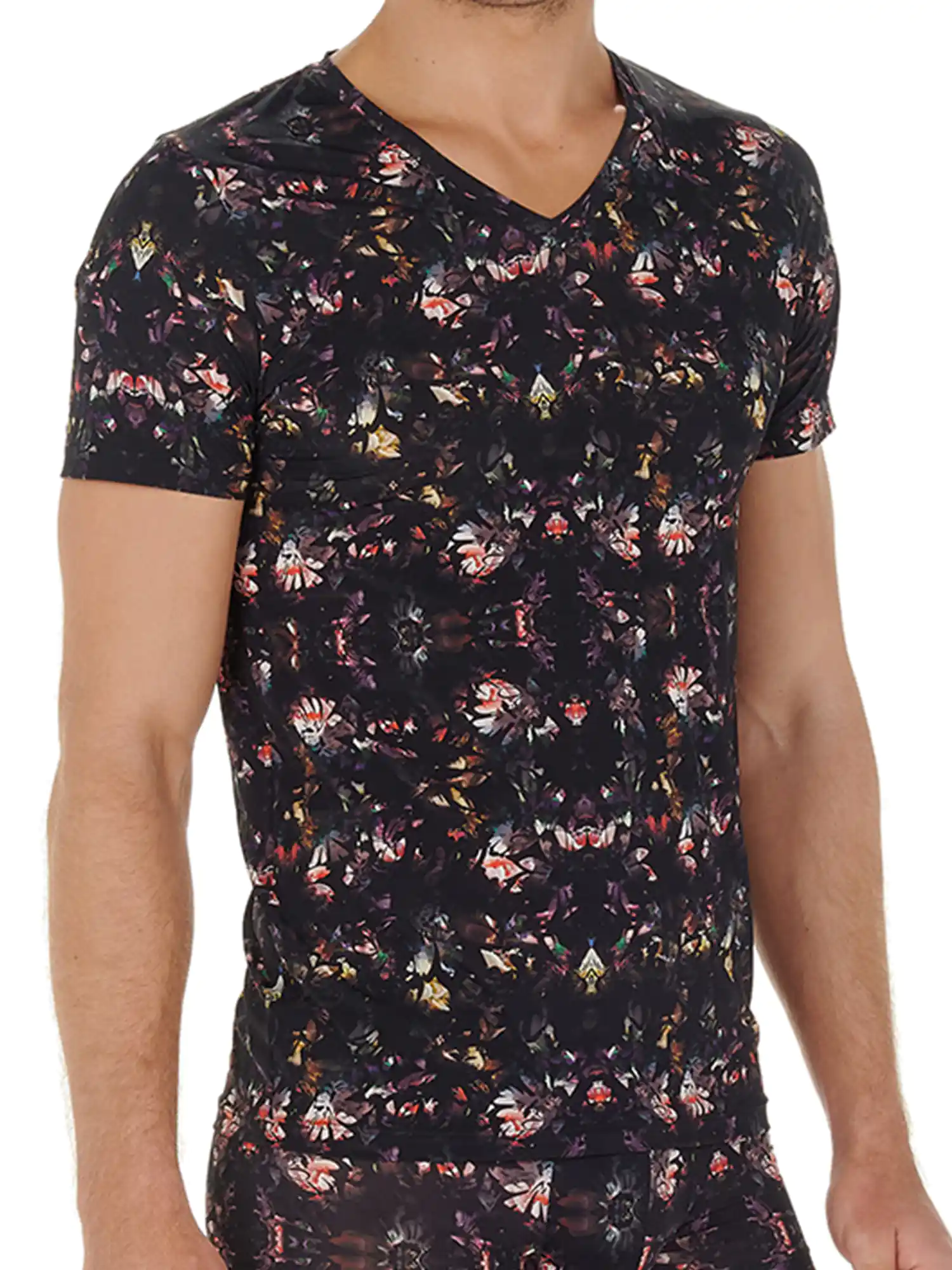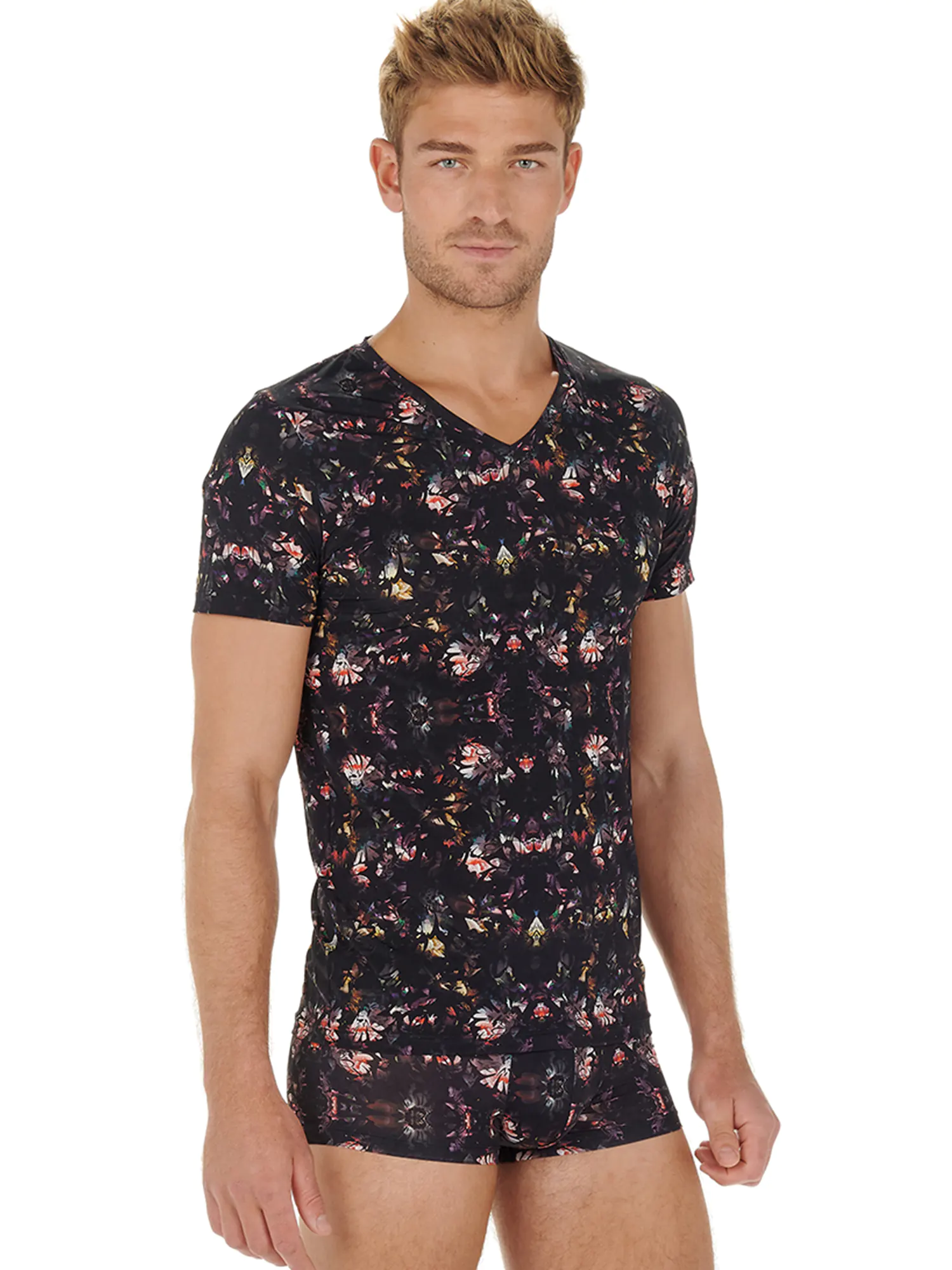 An engaging floral pattern with the Sebastian series from the Temptation collection, for the man who knows the language of seduction. The shirt is made of microfiber, fitting closely to the skin. The shirt features a V-neck and is adorned with the colorful Sebastian floral print on a dark background, creating a mysterious look. You can pair the shirt with the Sebastian Trunk or G-string for a complete set.