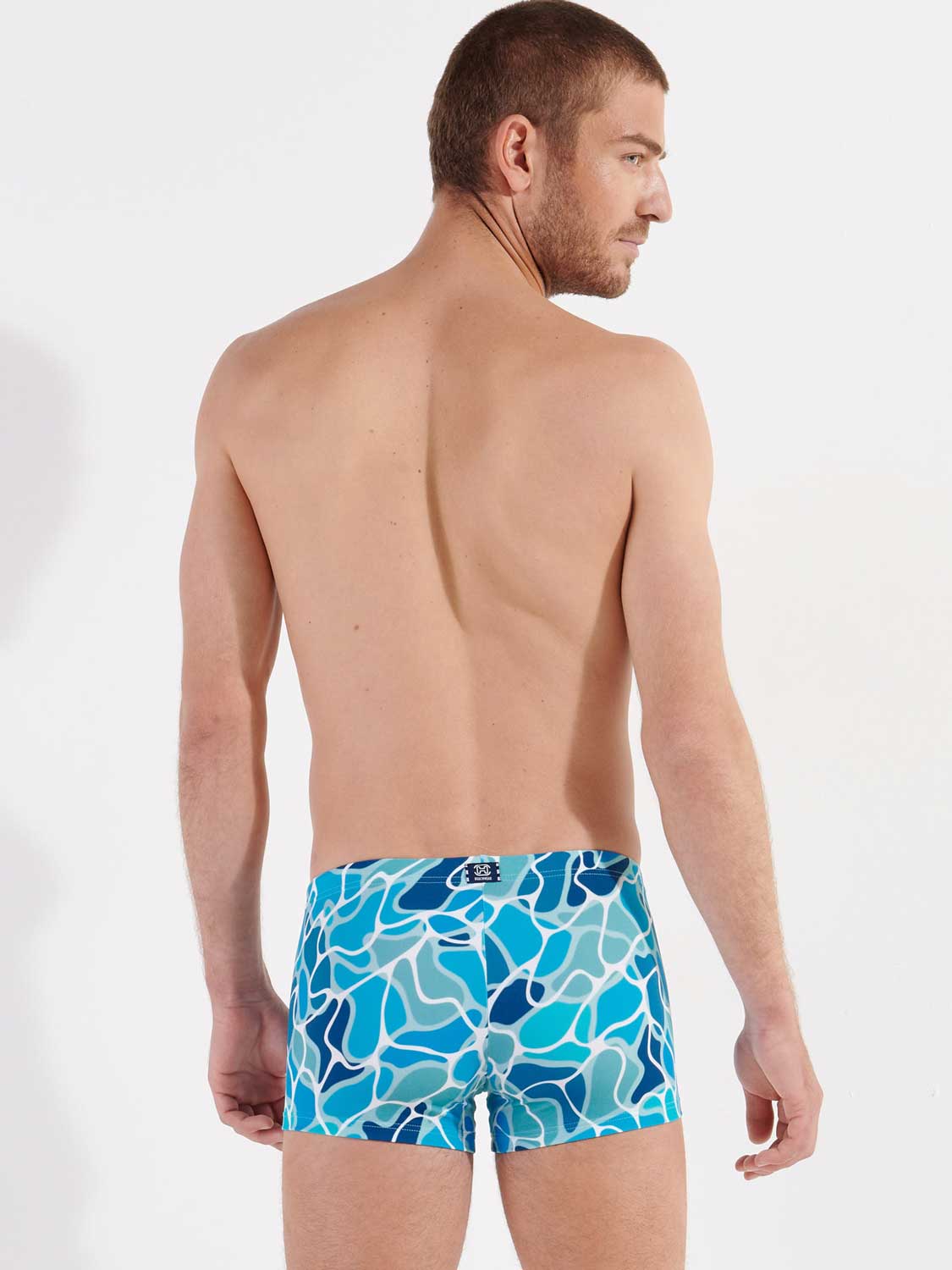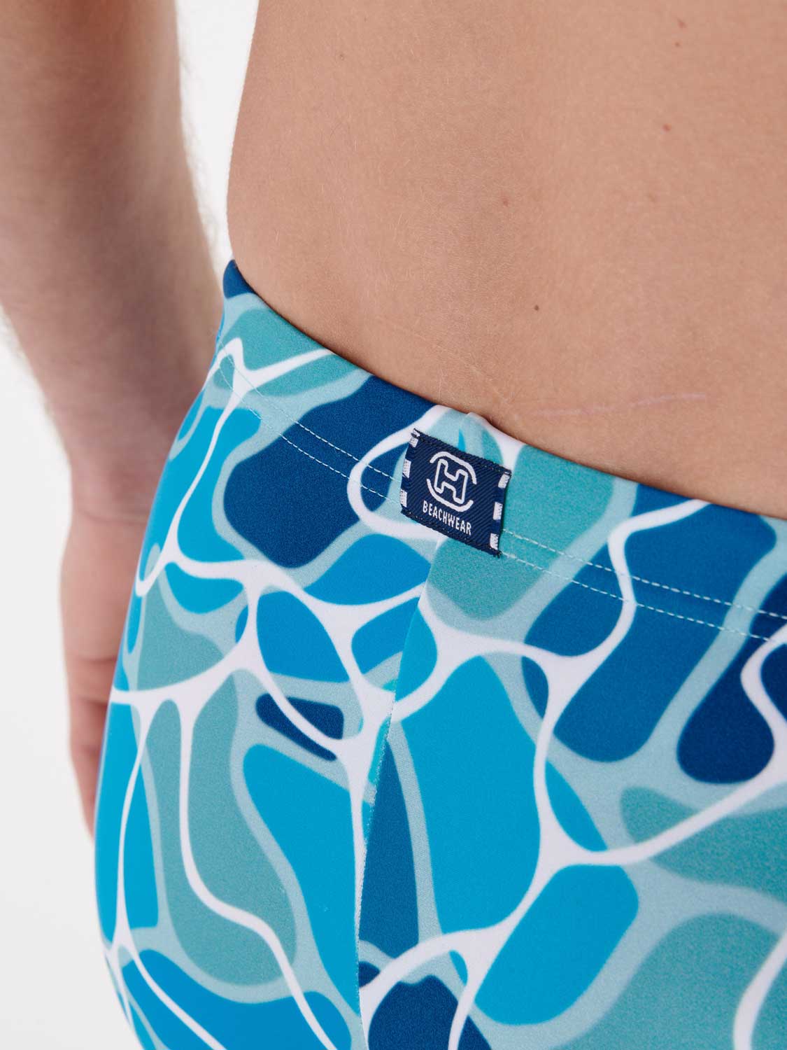 The Alain - Swim Short features a beautiful print in blue with a ripple effect for a free feeling in the water. The fabric is elastic, fits nicely to the skin, and is not see-through. With the drawstring in the waistband, you can adjust the swim shorts perfectly to size. A beautiful fashion item for the beach or the pool.