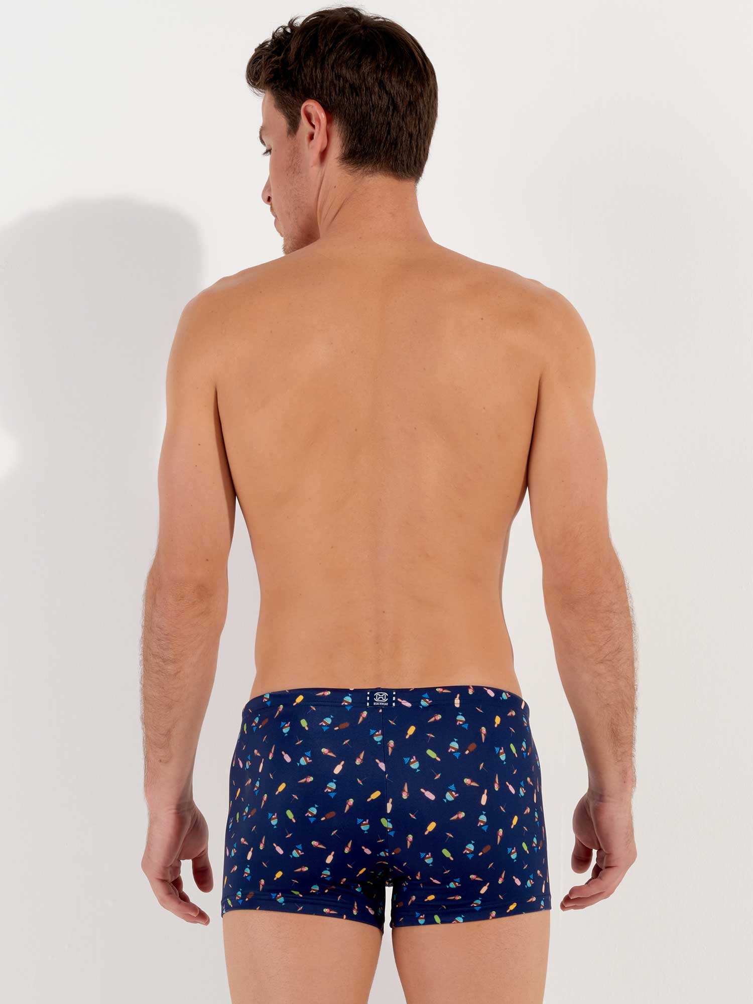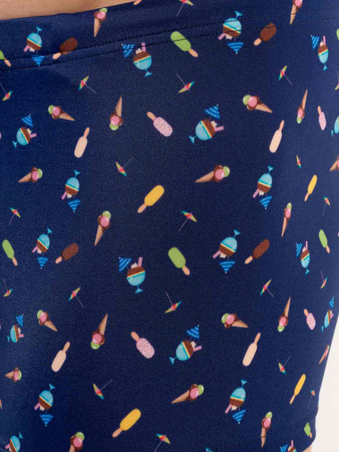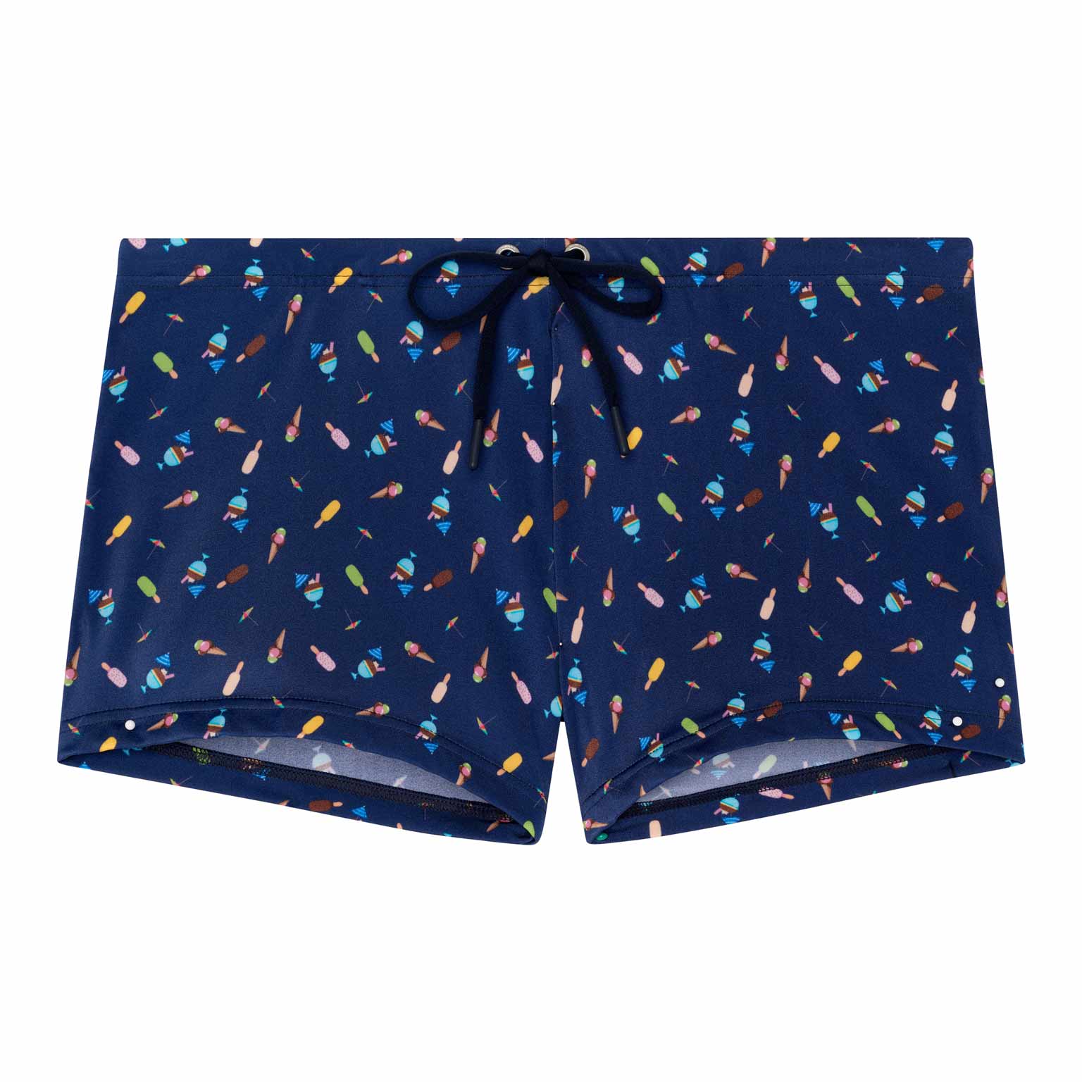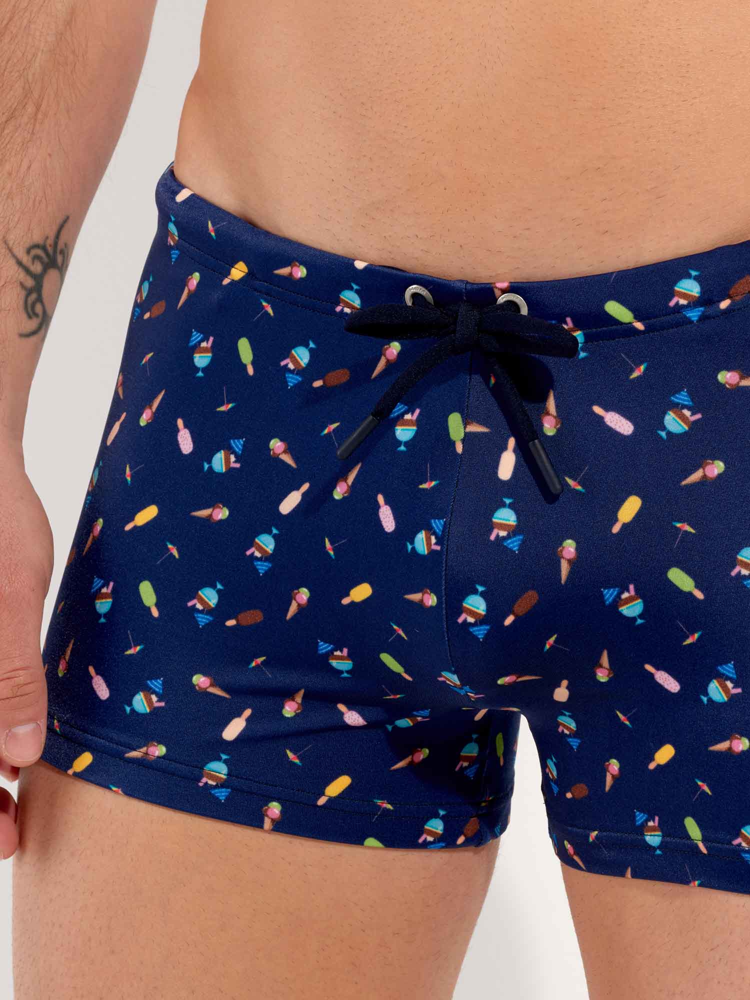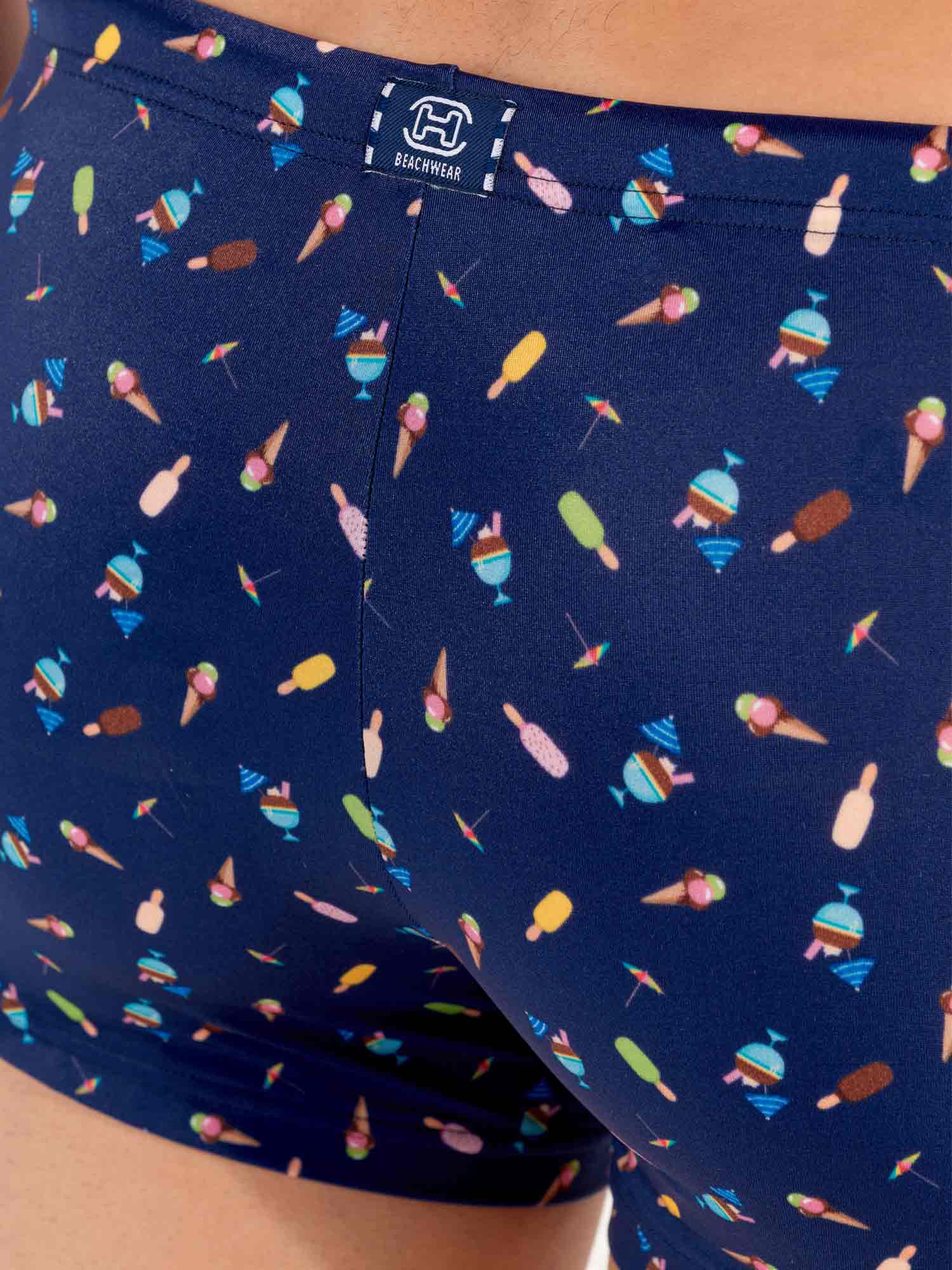 The Summer - Swim Shorts are part of the HOM summer swim collection. The print features colorful ice creams on a navy blue background, evoking the sweetness and delicacy of summer vacations. The fabric is elastic, fits nicely to the skin, and is not see-through. The drawstring in the waistband allows you to adjust the swim shorts perfectly to size for a secure fit. With this fashion item. Bring a touch of cheerfulness to the beach or the pool with this swim short.