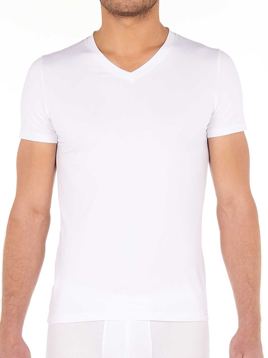 The TENCEL SOFT T-Shirt is made from Lyocell, featuring a V-neck and a straight cut that falls along the body. The shirt is a basic of very high quality with optimal wearing comfort. The fabric Lyocell is derived from wood pulp and absorbs 4 times more moisture than cotton. The production process requires little water, thereby limiting the environmental impact. Lyocell does not wrinkle and feels soft and comfortable. This fabric is therefore extremely suitable for men who prefer natural fabrics.