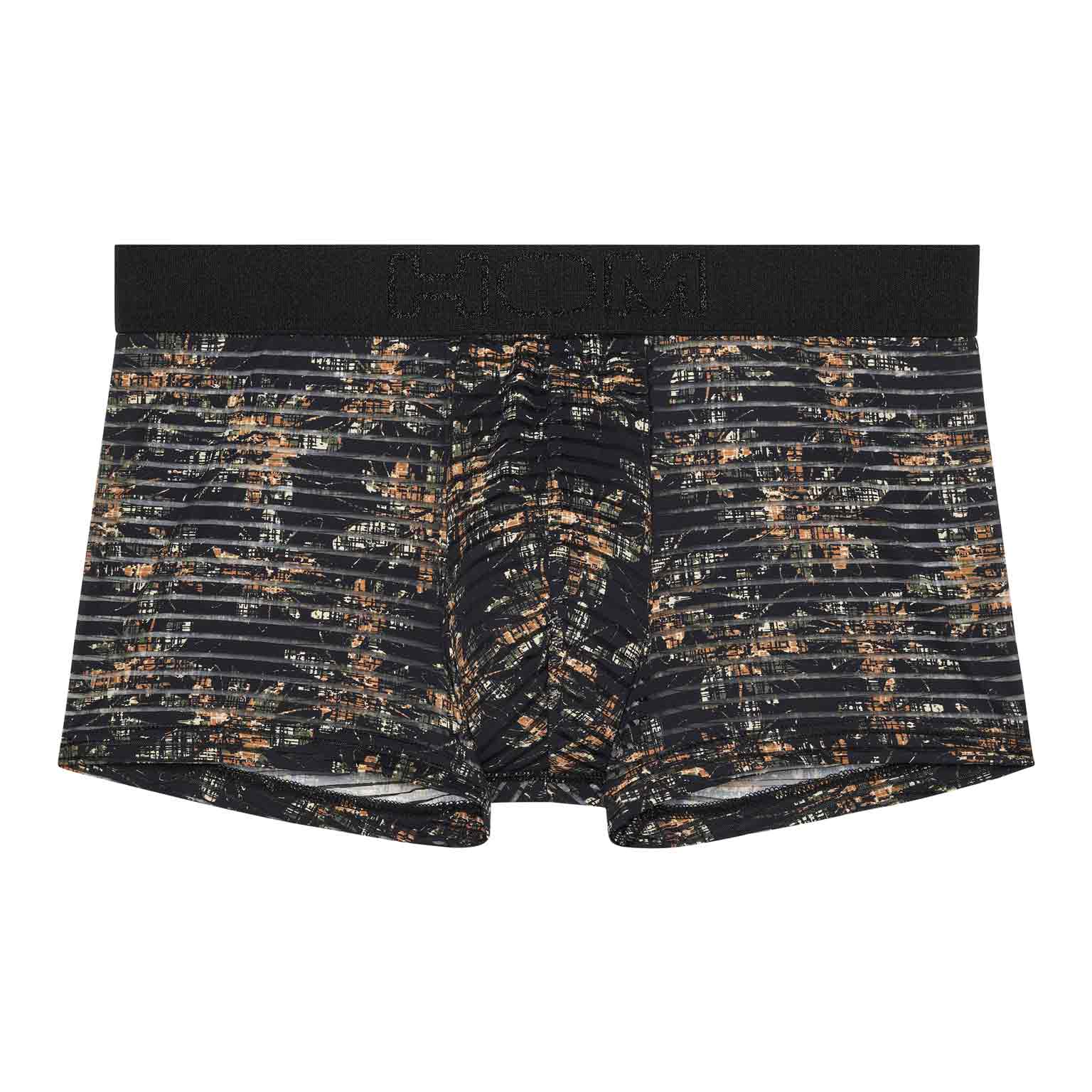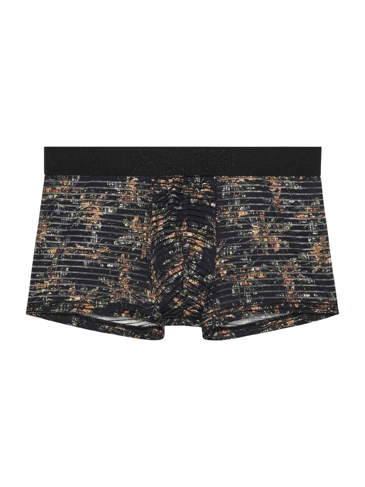 The Iraty trunk from the HOM Temptation collection is a masterclass in subtle seduction. It blends a sensual camouflage pattern in green, ochre, and black with floral details that invite closer inspection. Horizontal transparent lines reveal just enough skin for a tantalising silhouette, while the velvety microfiber hugs the body effortlessly. The lined pouch offers extra comfort and a discreet, flattering look. The Iraty trunk is made for men who dare to seduce with style and confidence.