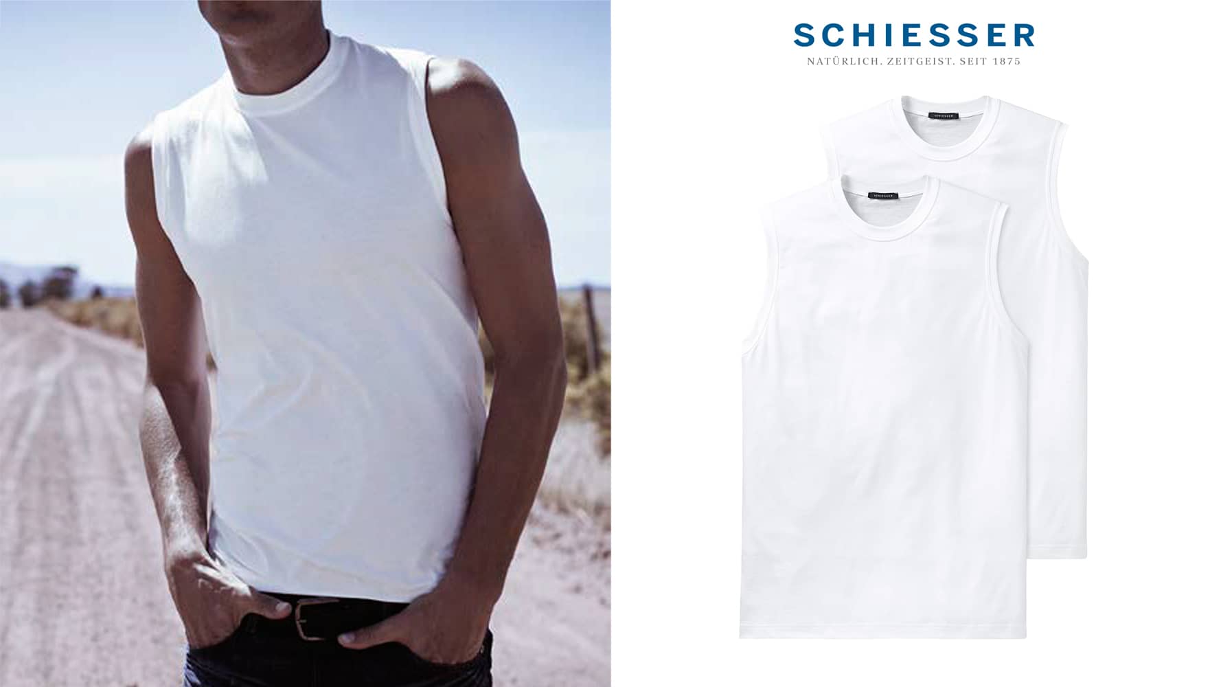 2 Basic shirts in a duo pack: These Muscle shirts are suitable for the demanding man who desires high wearing comfort and soft material. The shirts are made from 100% combed cotton and have a perfect fit that conforms to the body. The shirts are durable and long-lasting. Even after many wash and dry cycles, these shirts retain their shape. With these American Muscle shirts enjoy the quality which SCHIESSER is known for!
