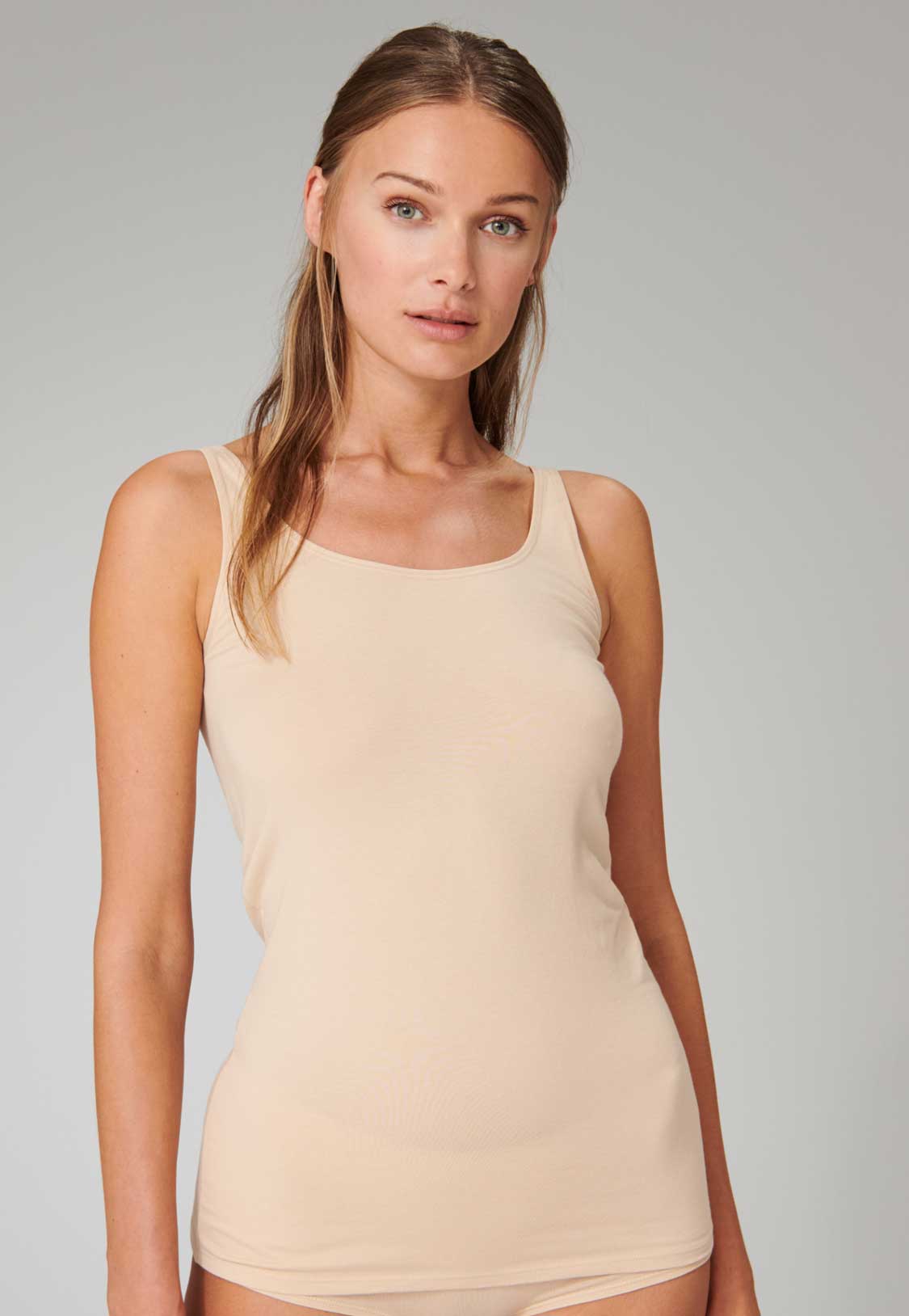 A value pack with 2 tops for women from the popular Schiesser "95/5" series. The tops are made of silky soft organic cotton mixed with 5% elastane and knitted in jersey, for an optimal fit and the best wearing comfort. Thanks to Schiesser's special production process, the elastane in the fabric is so well protected that you can wash the tops at up to 60 degrees without them losing their shape. With these tops, you purchase the quality you can expect from Schiesser.