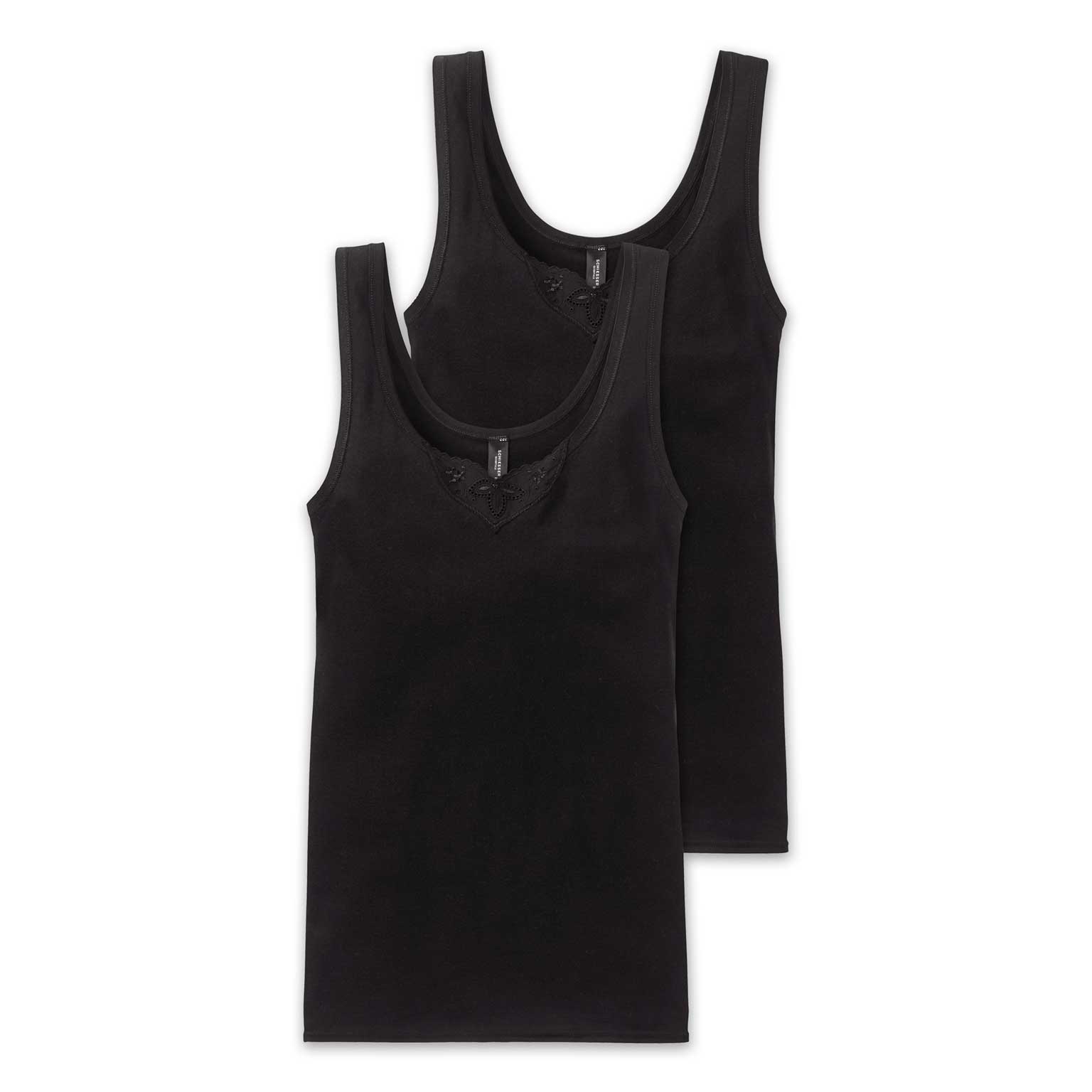 Two women's shirts made of cotton from the Cotton Essential series. Affordably priced in a multipack. Excellent underwear made of comfortable material with a basic look. The tops feature soft, narrow edges and not only offer a great fit but also feel wonderfully soft against the skin thanks to the elastic single jersey fabric. Available in white, black, and nude.