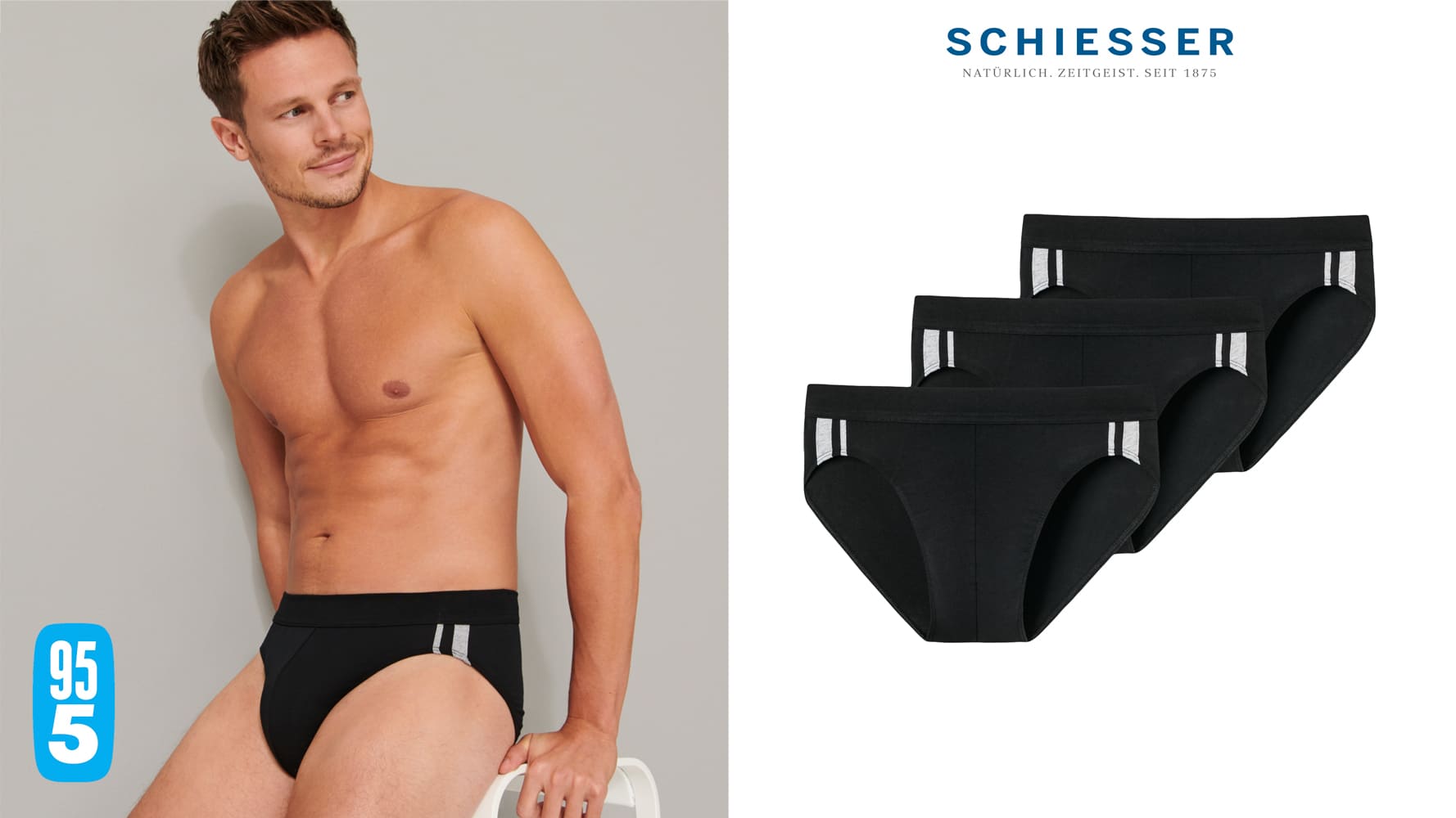 3 SCHIESSER Rio Slips for men from the well-known 95/5 series, available in a multi-pack. The men's slips come in various colors, with contrasting lines on the sides. A soft waistband ensures the best wearing comfort. The Rio slip sits on the hips and has a high-cut design. Made from organic cotton in a comfortable elastic jersey quality.