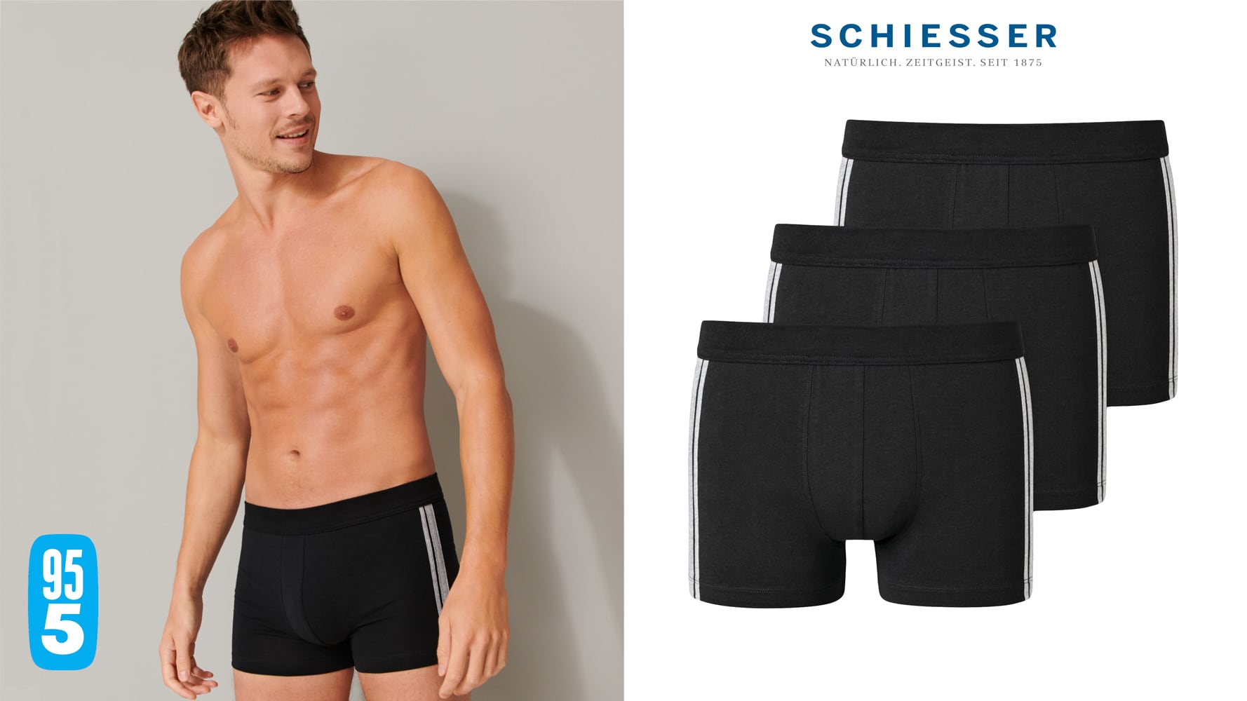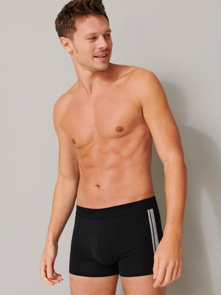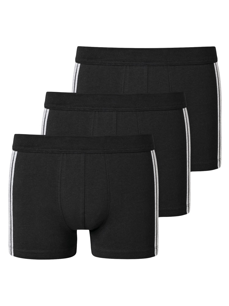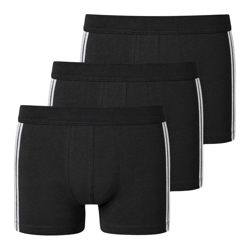 These men's shorts from SCHIESSER are available in various colors in a value 3-pack. The shorts are part of the popular '95/5 series' and feature a soft waistband in the same color. The shorts have contrasting stripes on the sides for a sporty look. The fabric is made from organic cotton and is knitted in an elastic single jersey. With this 3-pack, you get 3 men's boxers made with the quality SCHIESSER is known for.