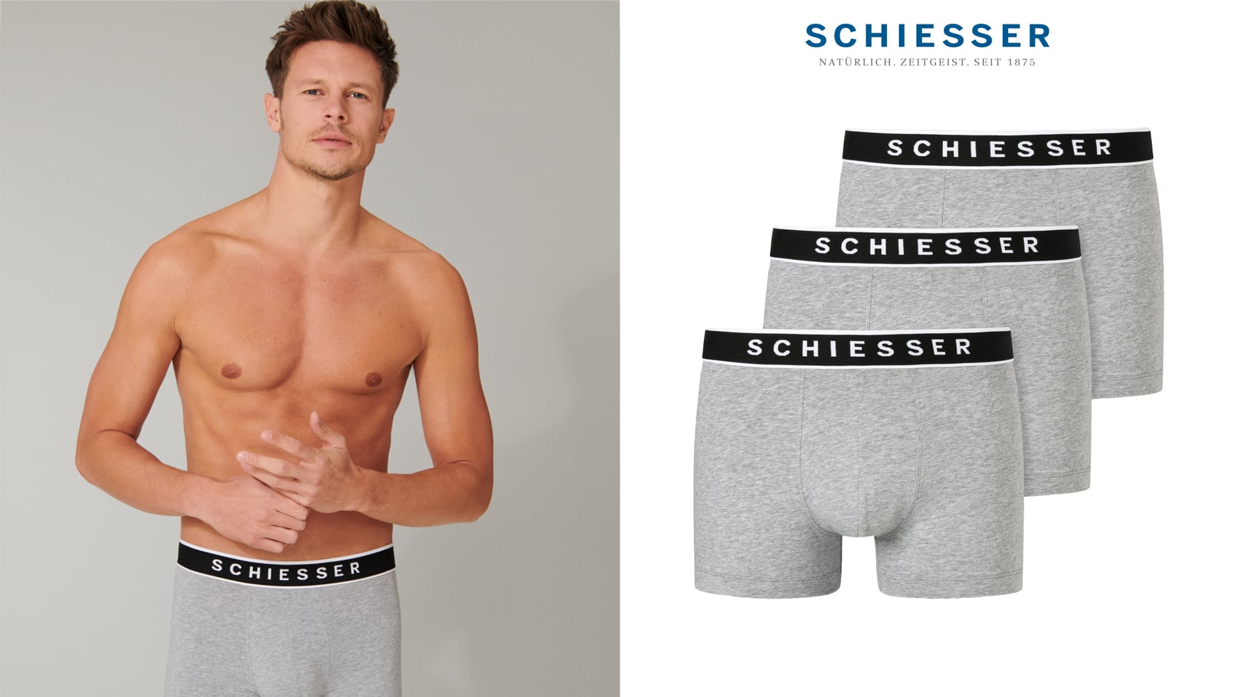 Value 3-pack from the popular 95/5 series by Schiesser. An ideal boxer short for daily use for every man. The shorts feature a comfortable woven elastic waistband with a sporty look, thanks to a striking white logo and contrast line along the band. They are made from soft organically produced cotton in a 95/5 quality for the perfect fit. 3 men's boxers at a great price made the well-known SCHIESSER quality!