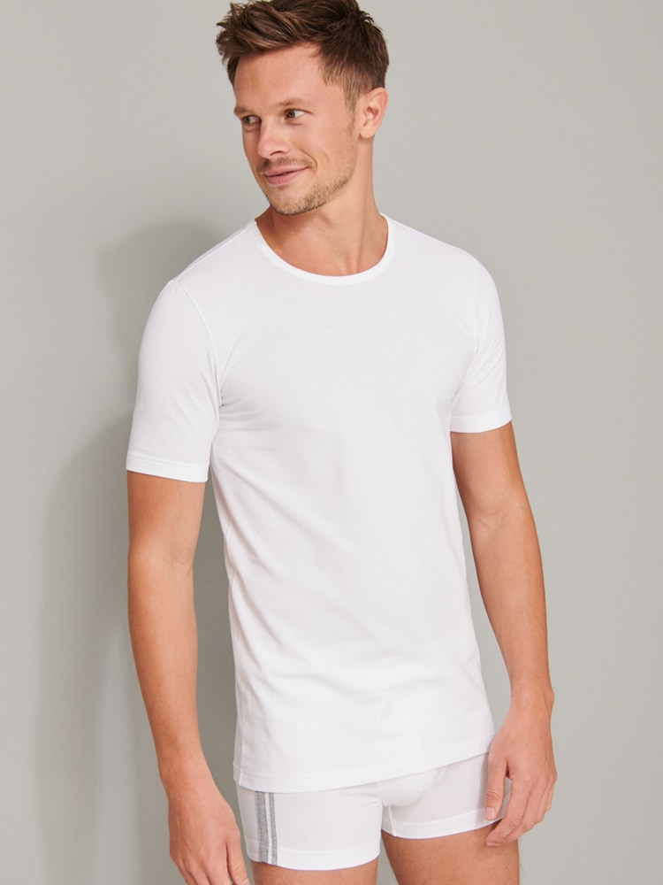 2 T-shirts with a round neck in a value duo-pack. These shirts from Schiesser are part of the 95-5 series, made from organic cotton. The shirts are knitted in a single jersey, and thanks to the addition of elastane, the shirts maintain their excellent fit, even when washed at 60 degrees. In short, 2 shirts with the quality you can expect from Schiesser.