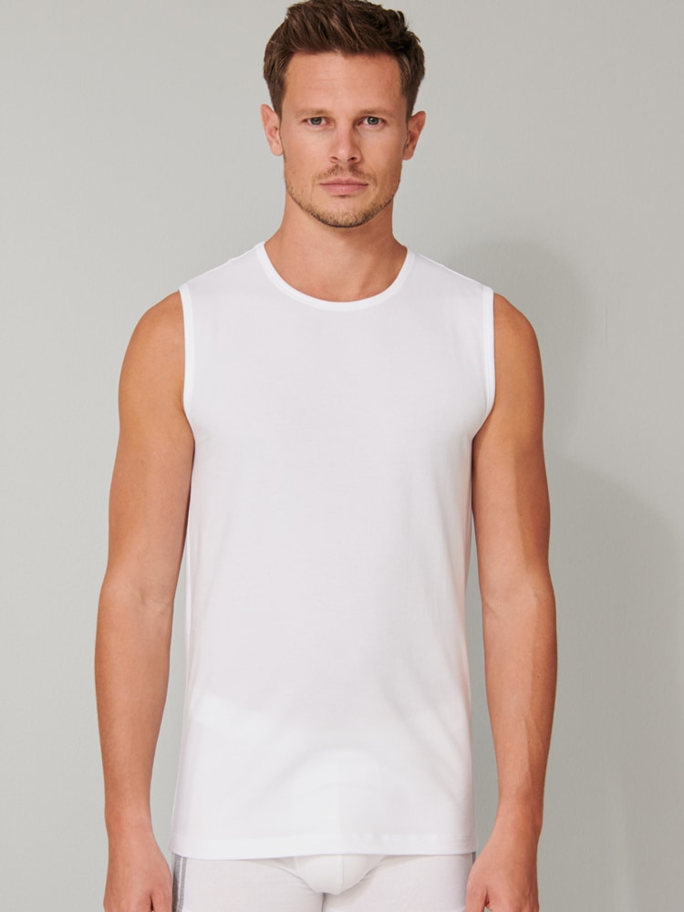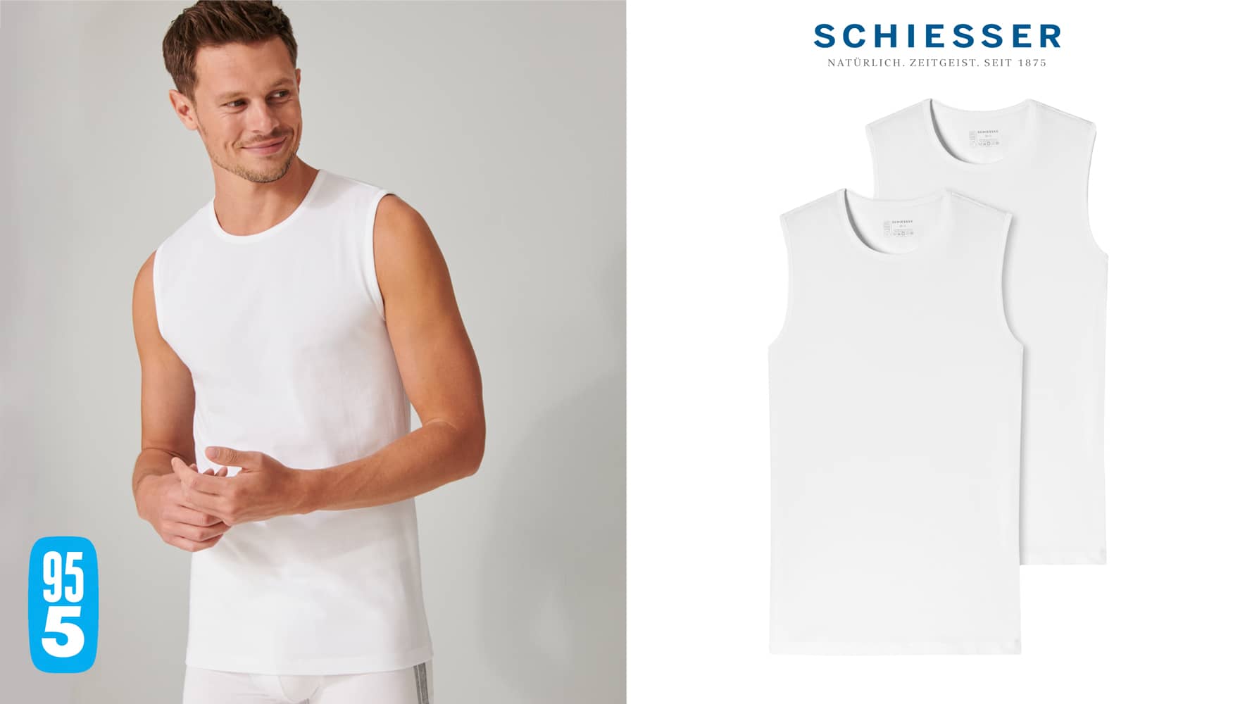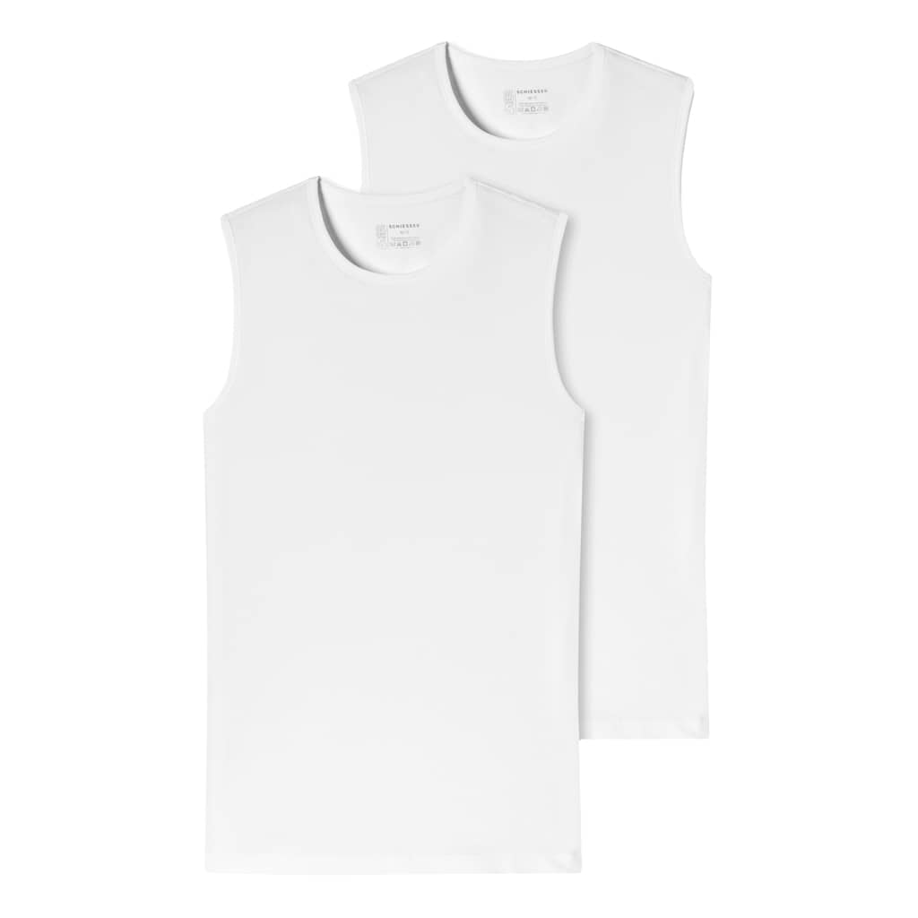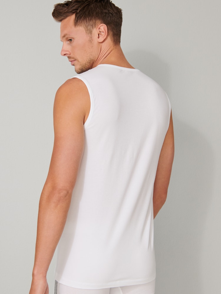 2 Tank tops for men in a double pack, from the popular SCHIESSER "95/5" series. The tank tops have a round neck and are made of 95% natural organic cotton and 5% elastane. They are knitted in a perfectly fitting elastic single jersey quality. The 95/5 tank tops can be washed at a temperature up to 60 degrees.