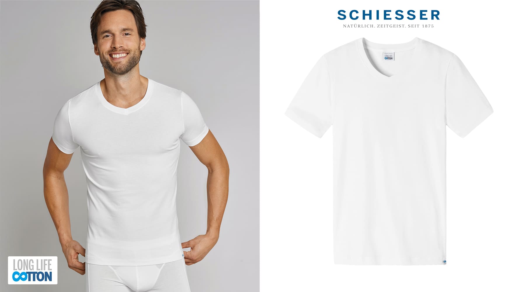 In the Long Life Cotton series, SCHIESSER also offers a T-shirt with a V-neck and 3/4 sleeves, specially designed for the man who loves cotton. The Long Life Cotton is manufactured in a special way, making the cotton not only feel exceptionally soft on the skin but also resistant to pilling and longer-lasting than regular cotton. As a result, your shirt will continue to look like new for a long time, even after many wears and washes! With this T-shirt, you are purchasing a cotton shirt in the best quality that SCHIESSER has to offer!
