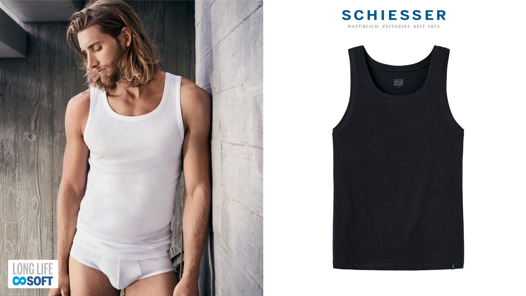 This sleeveless men's undershirt from the SCHIESSER "Long Life Soft" series impresses with its innovative material and perfect fit. Made from a high-quality, elastic single jersey with optimal moisture management thanks to the balanced micromodal blend. The fabric has a smooth and naturally glossy surface, providing a uniquely soft feel on the skin. A comfortable sleeveless top with a shape-retaining base that stays in form even after many washes!