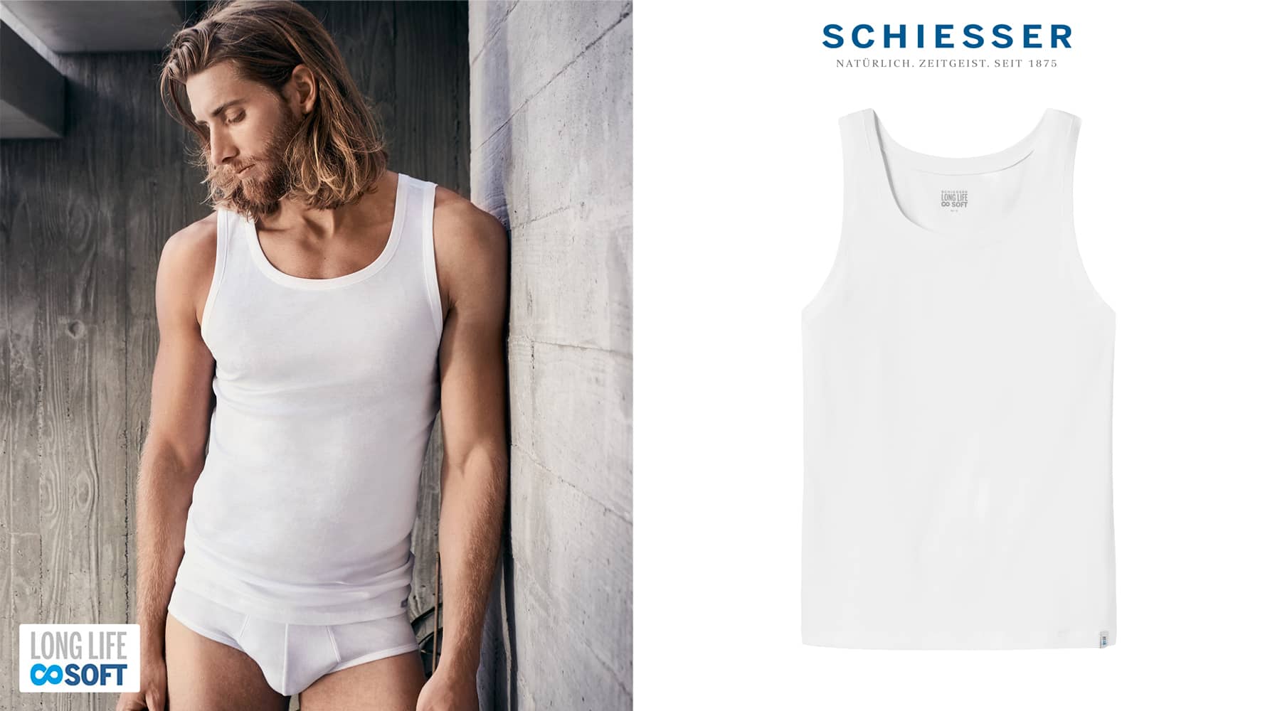 This sleeveless men's undershirt from the SCHIESSER "Long Life Soft" series impresses with its innovative material and perfect fit. Made from a high-quality, elastic single jersey with optimal moisture management thanks to the balanced micromodal blend. The fabric has a smooth and naturally glossy surface, providing a uniquely soft feel on the skin. A comfortable sleeveless top with a shape-retaining base that stays in form even after many washes!