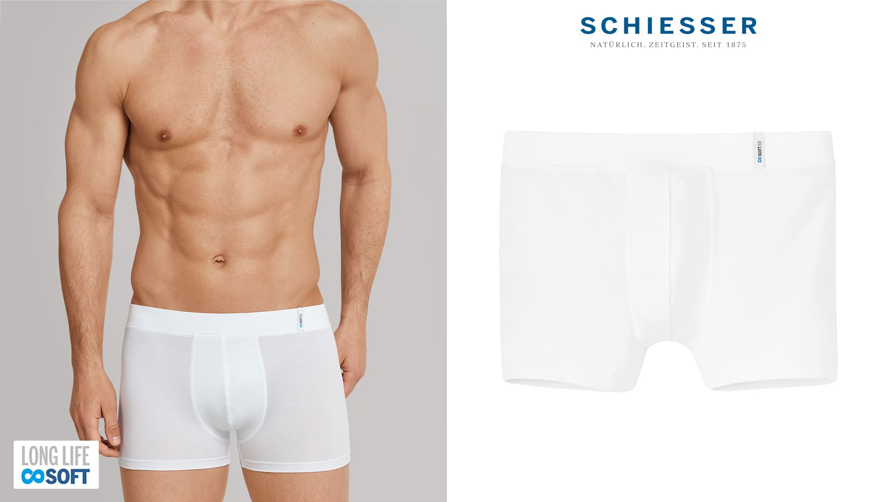 Men who value innovative material and a perfect fit will love these shorts from the SCHIESSER "Long Life Soft" series! The "Long Life Soft" is made from a soft cotton-modal blend, where the micromodal ensures optimal moisture management and the added elastane maintains the fit and sizing, making these SCHIESSER boxer shorts a pleasure to wear, even after many washes! Thanks to the special fabric composition, these boxers do not pill and gently adapt to every movement of your body, so you can stay in top form!