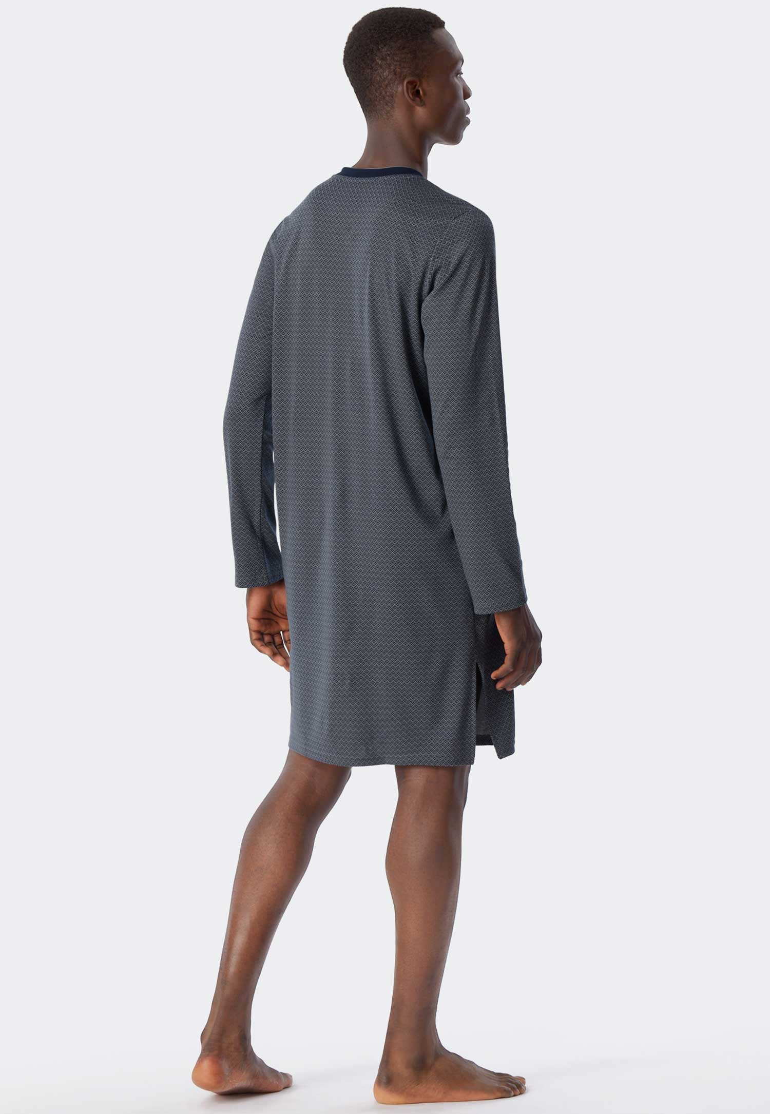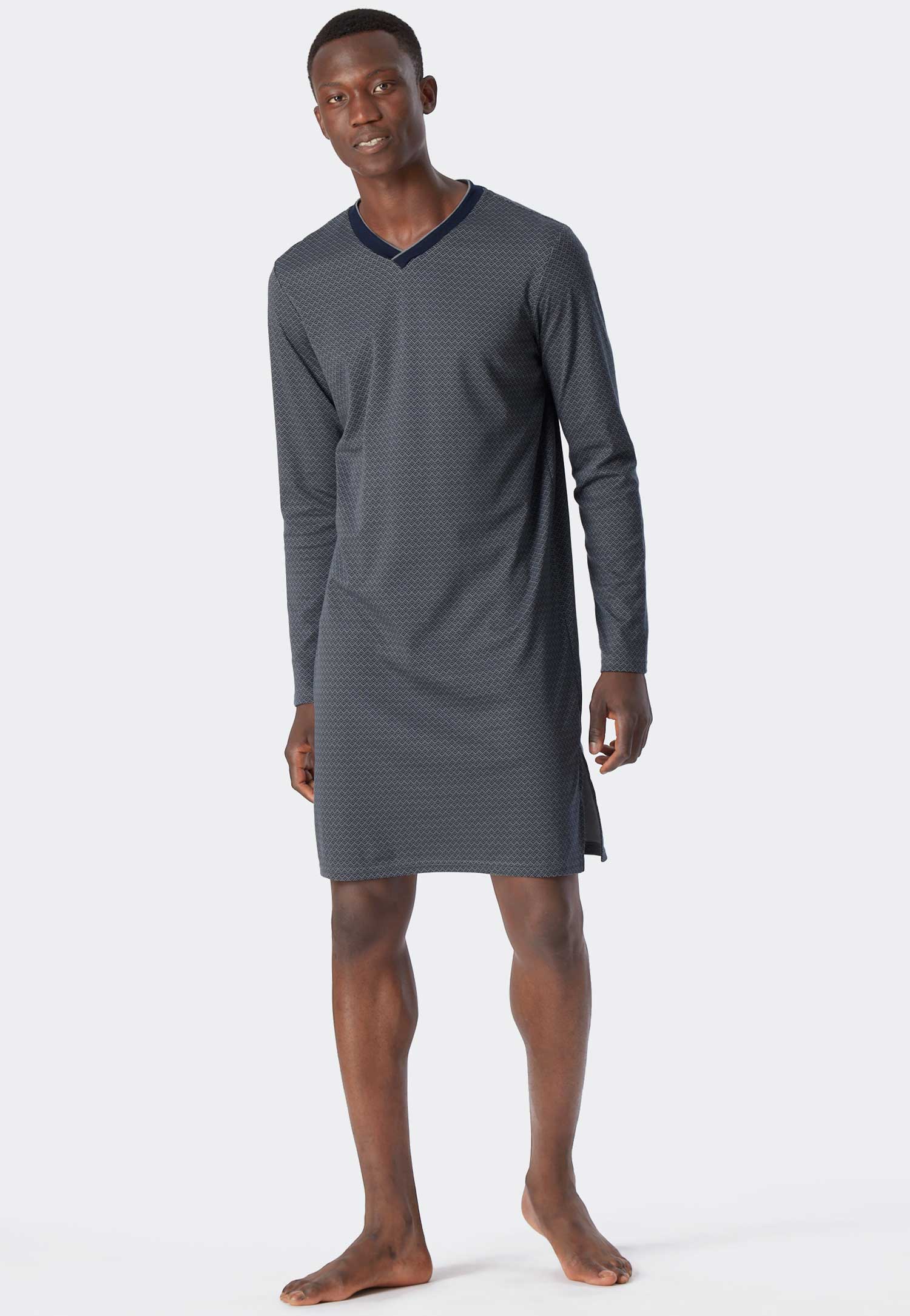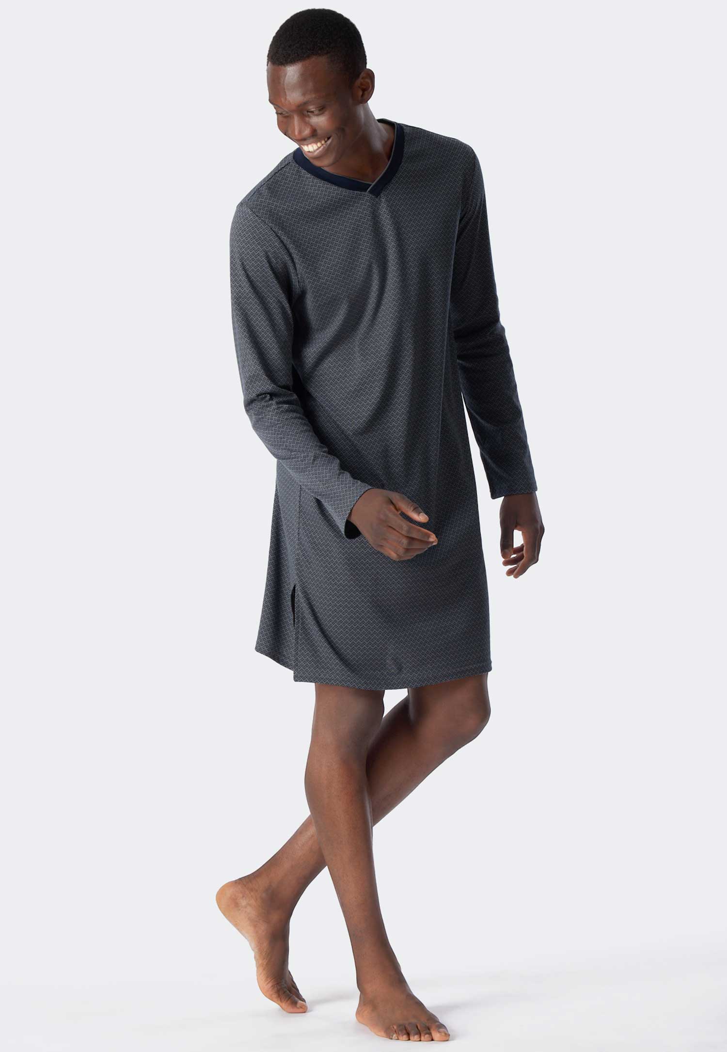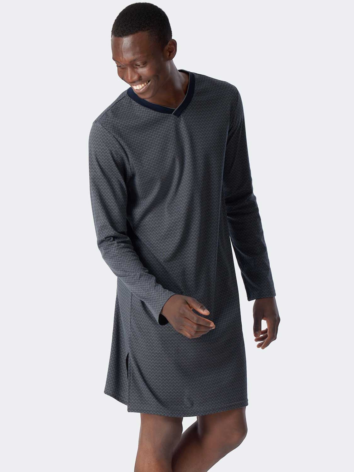 This men's nightshirt by Schiesser is made from 100% cotton and features long sleeves and a minimalist print. The nightshirt has a V-neck to provide some space around the neck and side slits for optimal freedom of movement. The nightshirt is made from a pleasantly fine interlock quality.