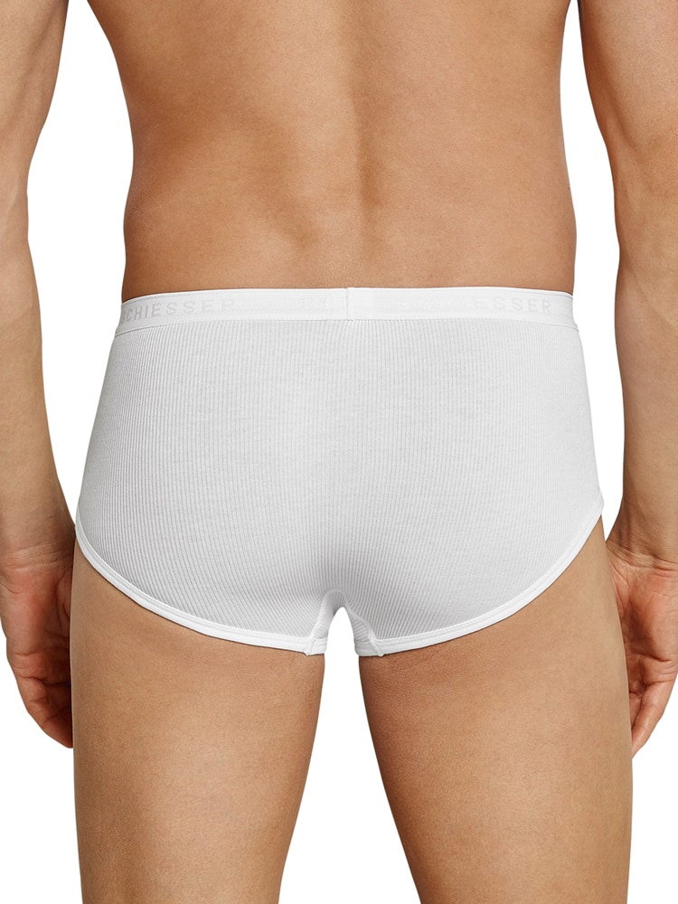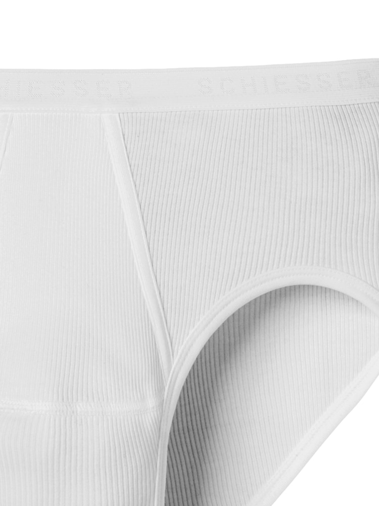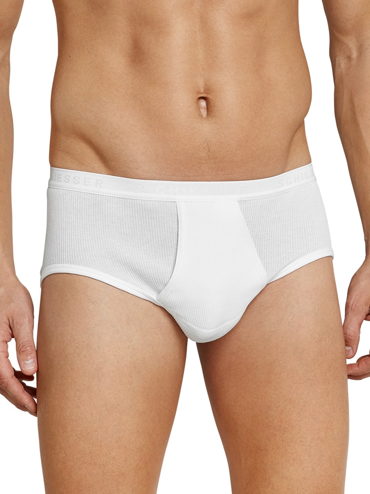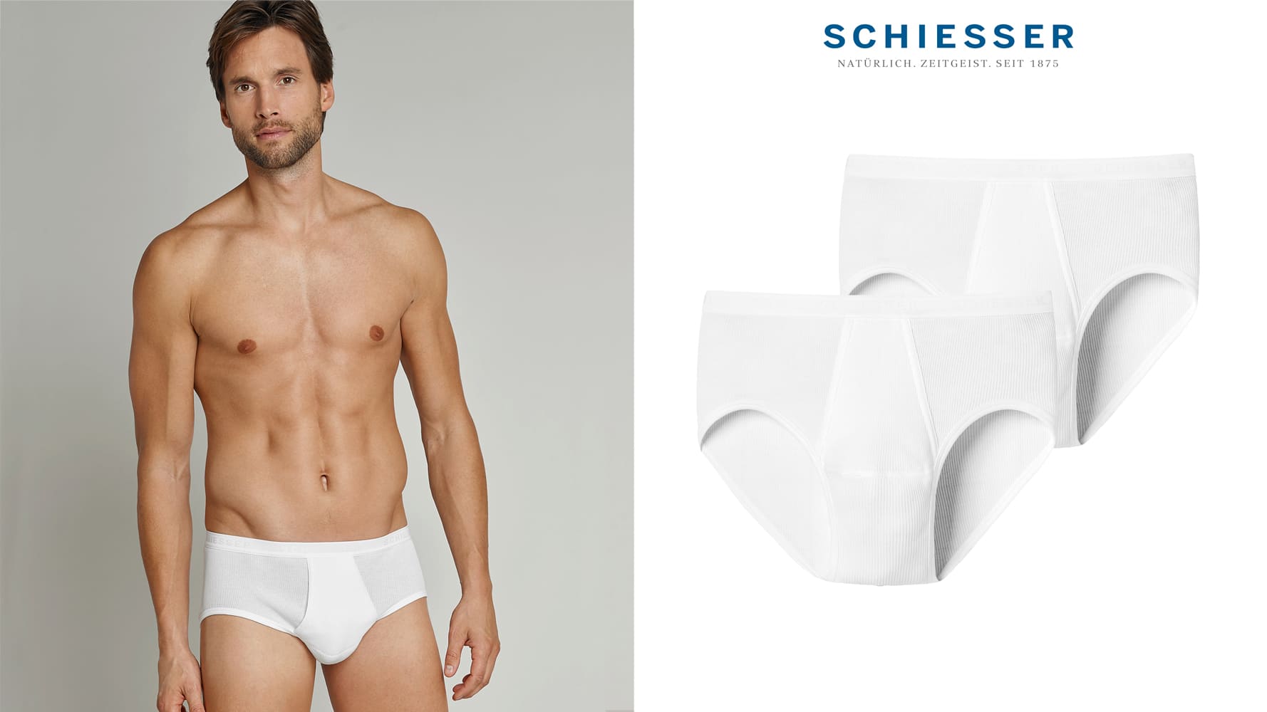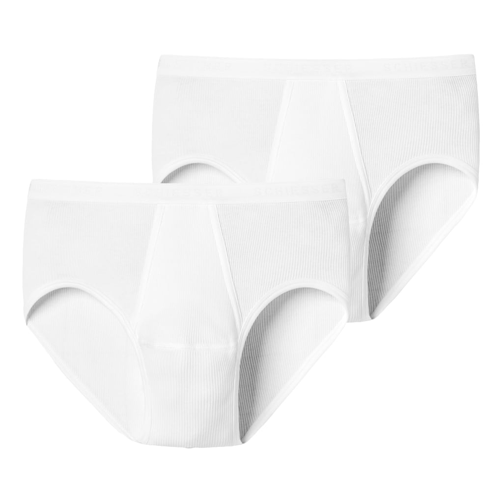 A men's underwear with a double rib in a value 2-pack! This sports brief from the Doppelripp collection is a Schiesser "Original Classic". This men's brief has a classic cut and is equipped with a fly. The brief is worn on the hips and provides exceptional comfort thanks to its optimal fit. The 100% two-ply Mako cotton feels pleasantly soft on the skin, and because the brief is made of 100% cotton, you can wash it at a temperature of 95 degrees without losing its shape. In short, 2 shape-retaining, durable briefs of the best SCHIESSER quality!