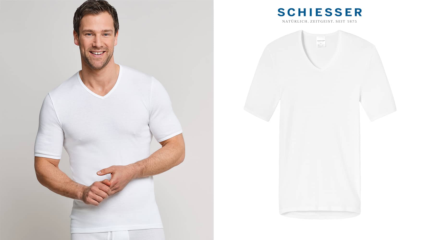 Classics at their best: this men's short-sleeve shirt with a V-neck from the "Original Classics" series by SCHIESSER combines high-quality material with an optimal fit. As the name Original Feinripp suggests, the shirt is made from a fine rib of 100% super-combed cotton, making it exceptionally soft on the skin. The shirt offers optimal comfort because it is circularly knitted, so it has no bothersome side seams. A true SCHIESSER classic in the best quality!