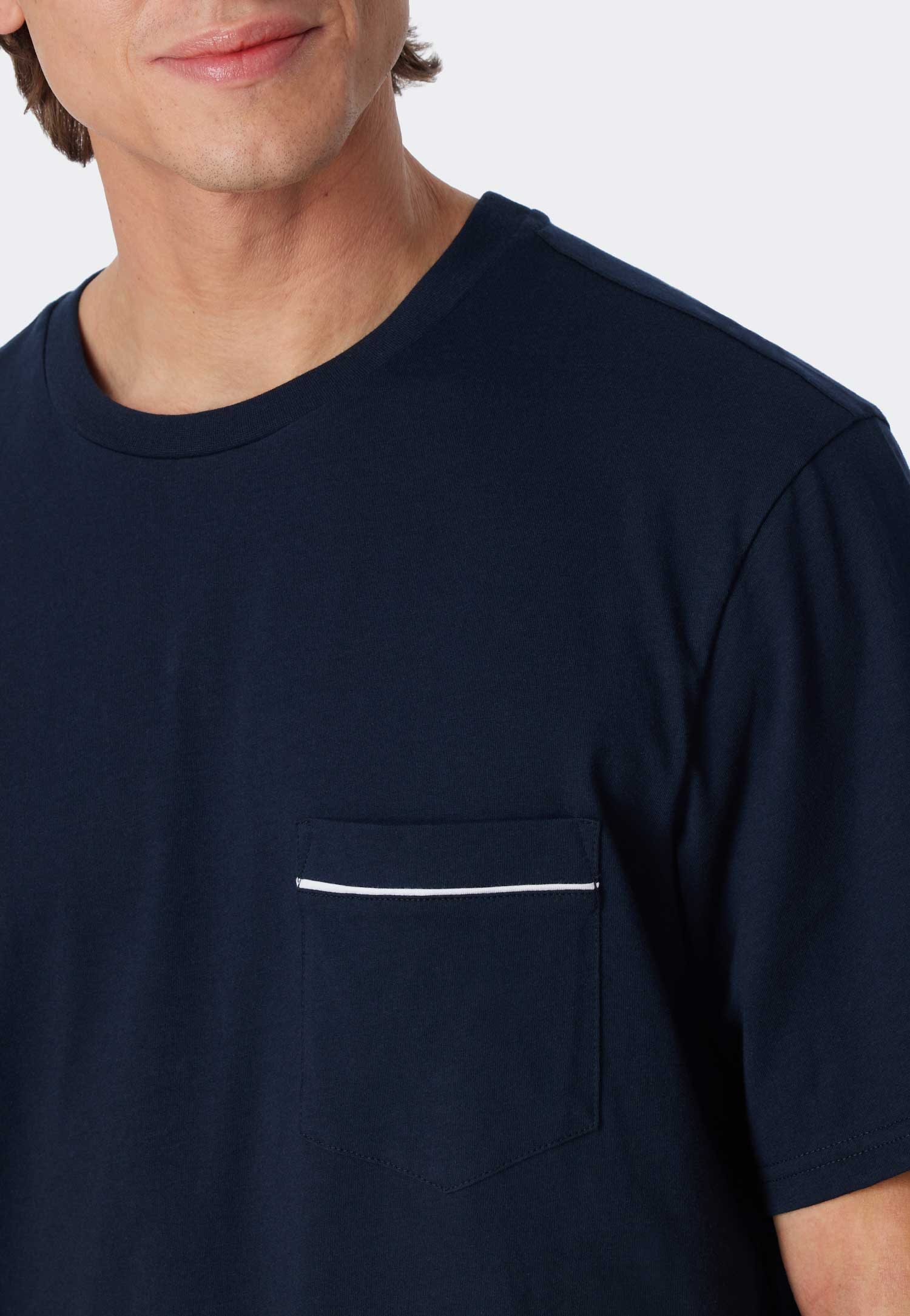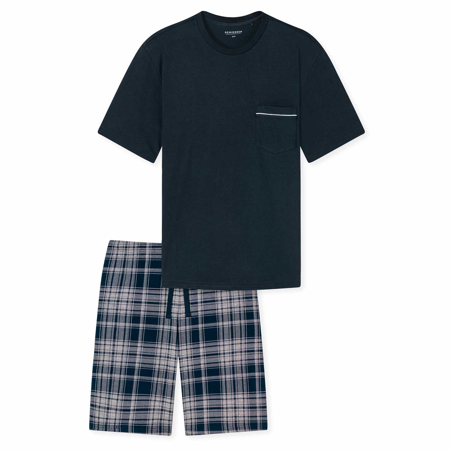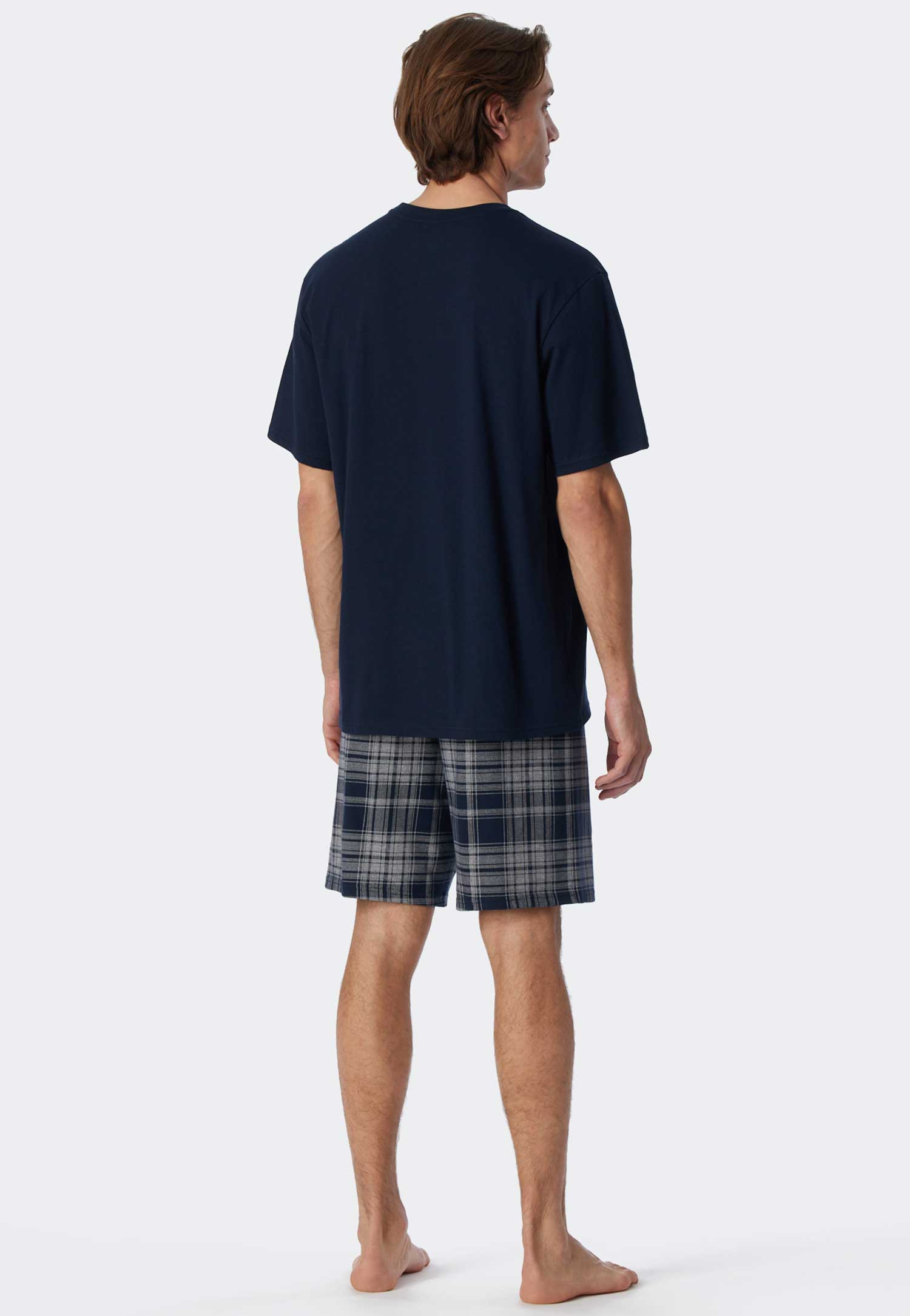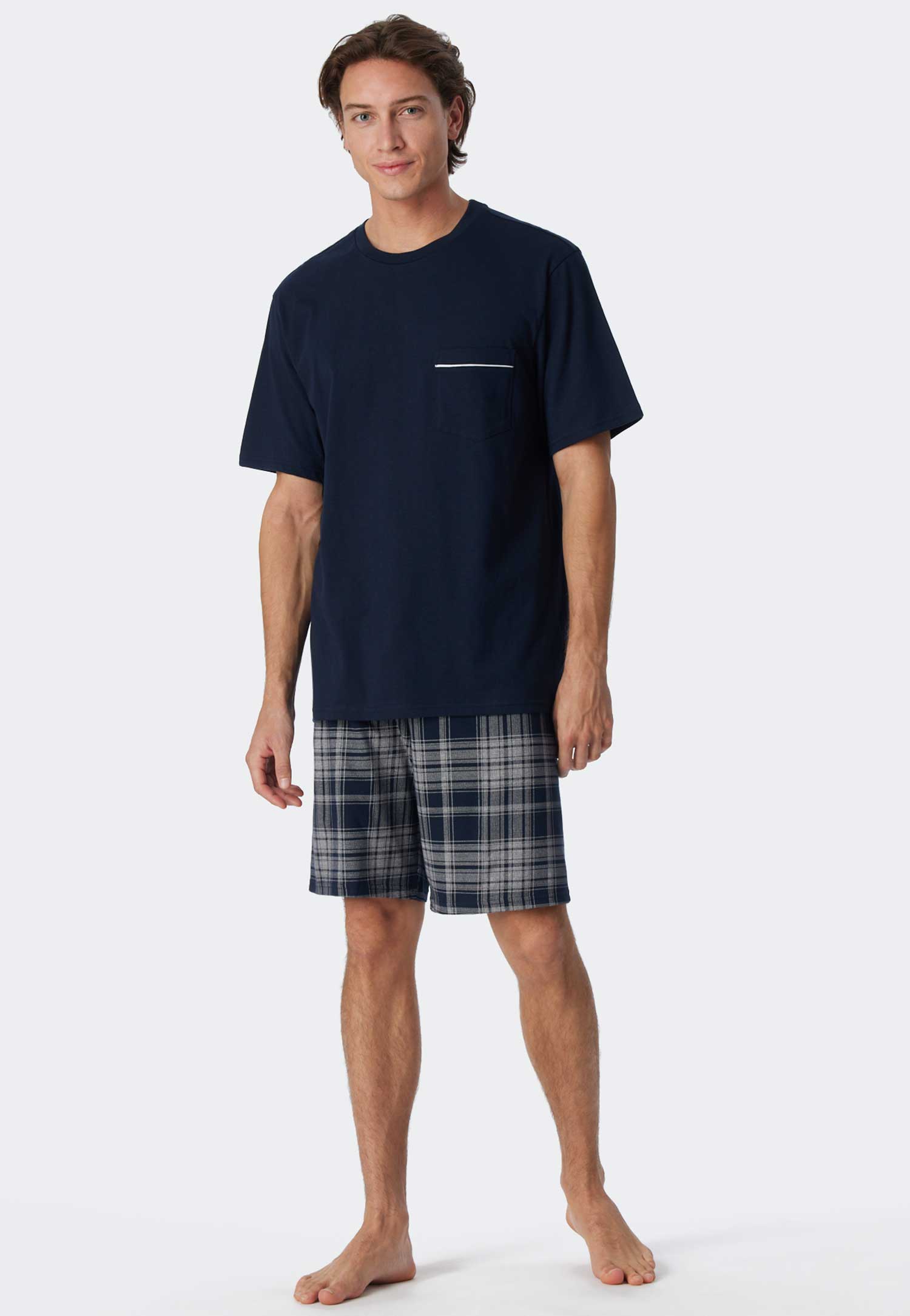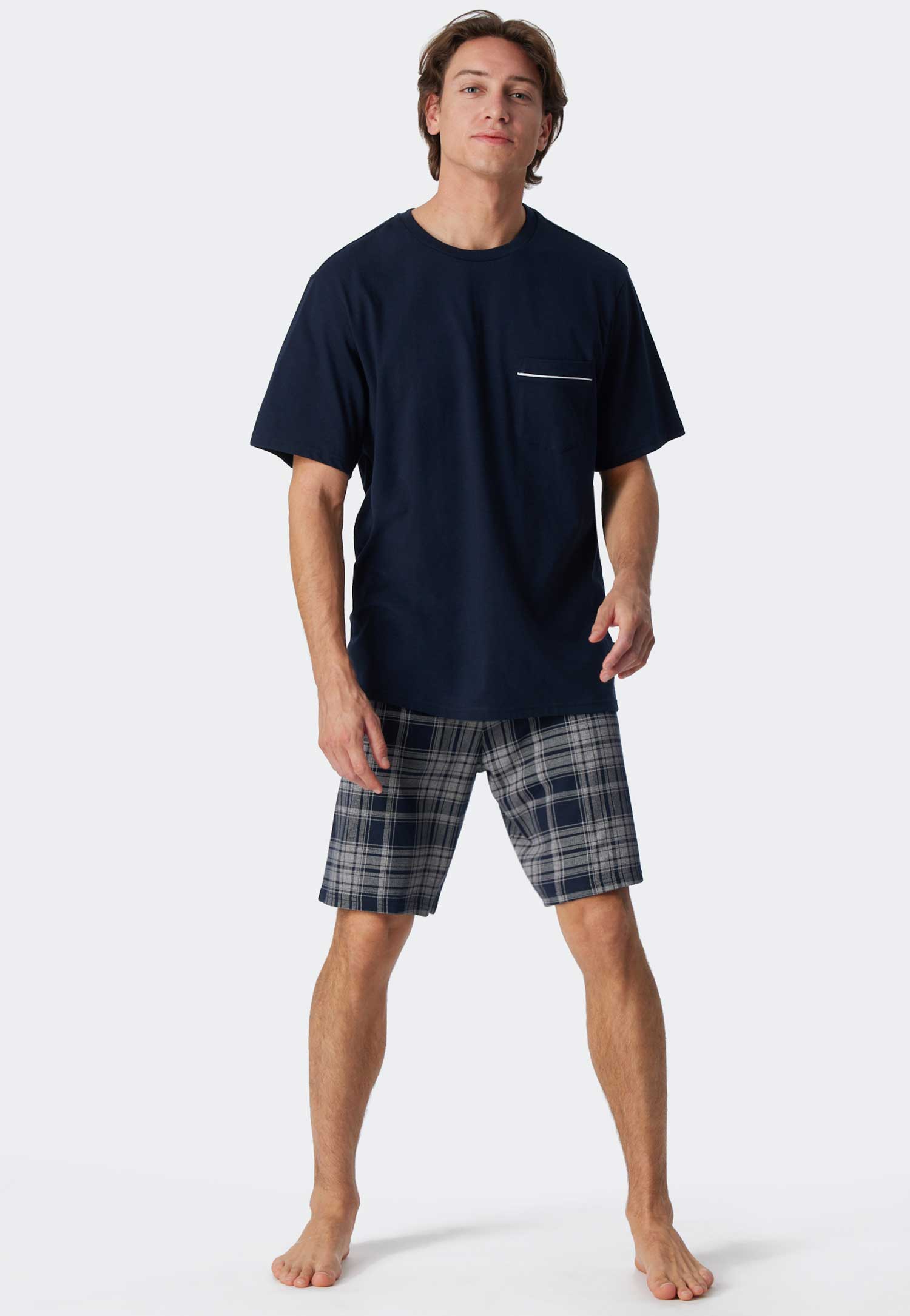 This men's short pajama set by Schiesser is made from 100% organic cotton. The pajama set features checkered shorts and a shirt with a round neck and a decorative patch pocket on the chest. The shorts are designed with a drawstring in the waistband. The pajama is knitted in jersey fabric. This pajama set is a real eye-catcher and easy to clean. You can wash the pajama at a temperature of 60 degrees.
