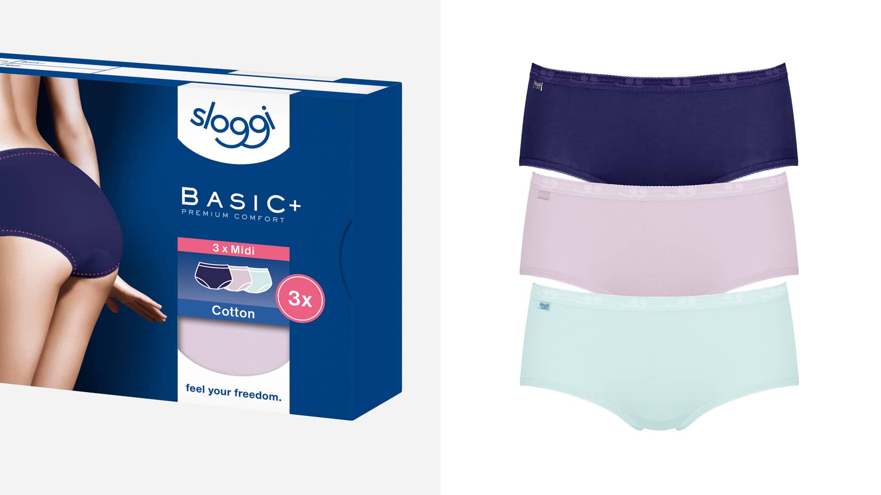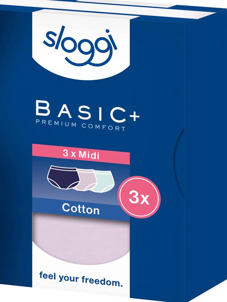 With the Sloggi Basic+ series, you choose timeless underwear. These proven models help you get through the day excellently. The Basic+ series has an excellent fit and feels comfortable on the skin due to the cotton/elastane mix. Cotton breathes well and is easy to clean. Because the elastane is wrapped in cotton, you can wash the Basic+ series at a temperature of up to 60 degrees without losing its shape or color! This 3-pack includes 3 beautiful midi briefs that sit over the hips in 3 different colors, so you can switch according to any occasion or mood.