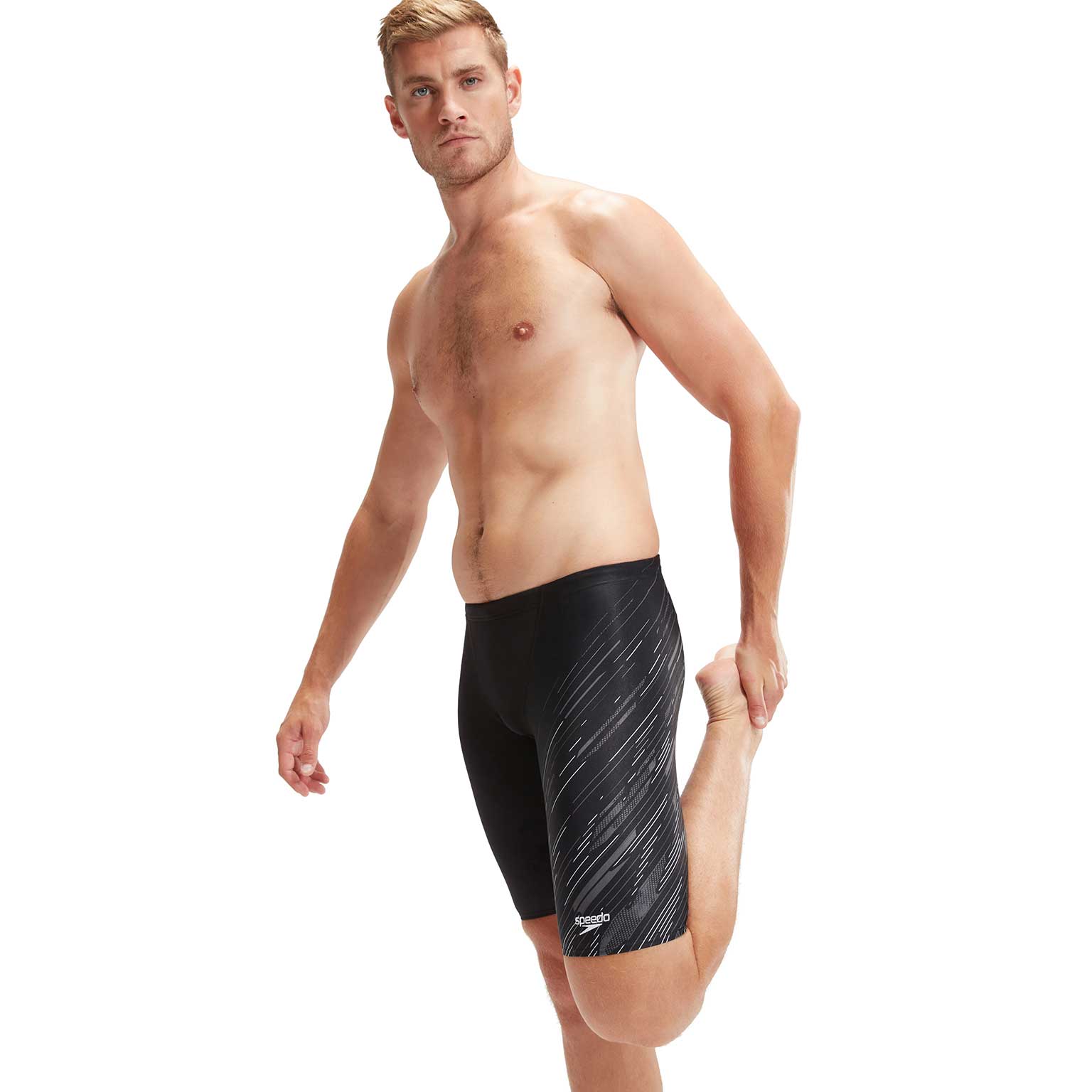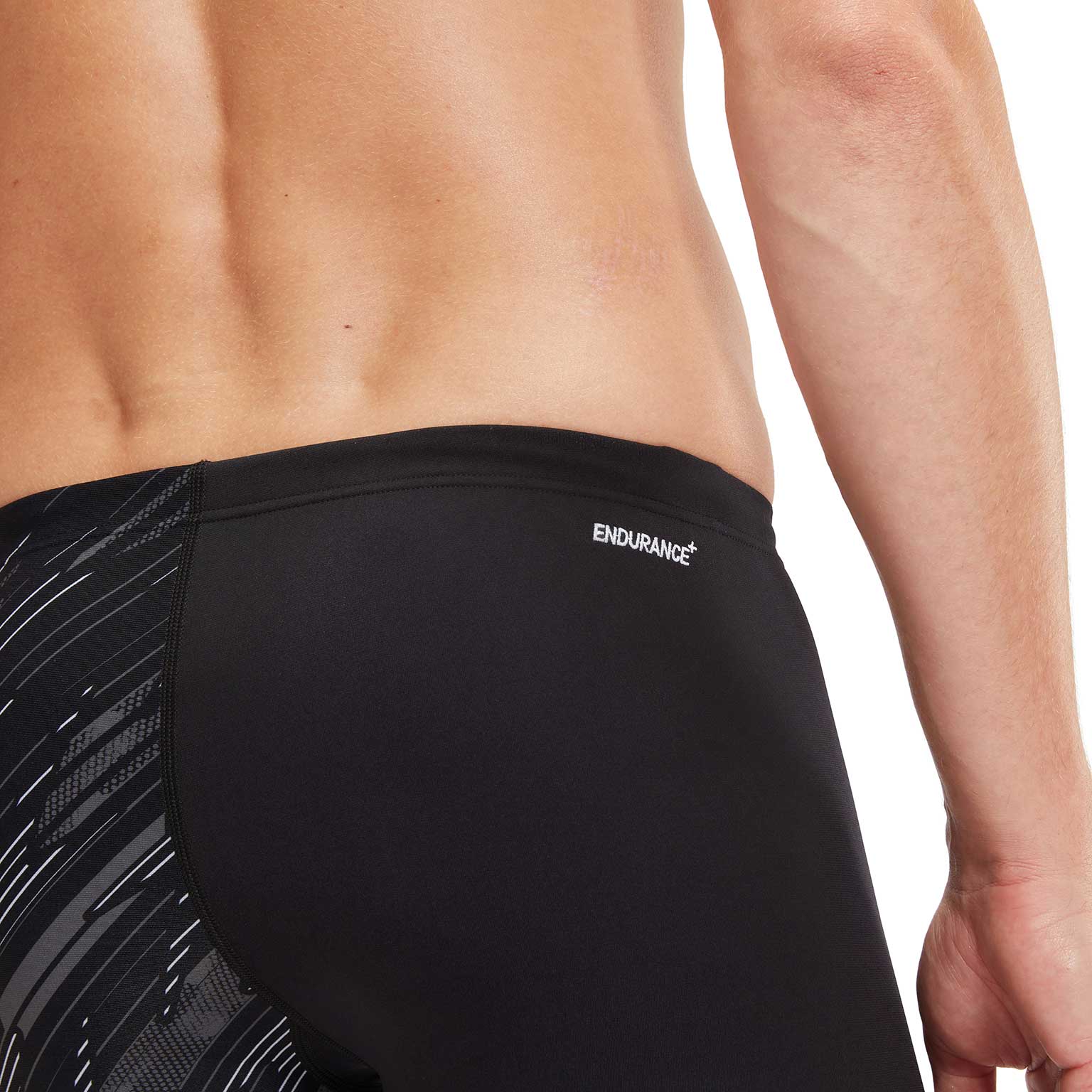 The Eco+ Jammer from Speedo, perfect for your training needs and featuring a vibrant 'Hyperboom' print. This long swim jammer is made from Eco Endurance+, a chlorine-resistant fabric that dries quickly and lasts much longer than standard swimwear. The internal drawstring allows you to adjust the fit perfectly. The V-shaped lining provides enhanced comfort and extra security during training. Eco Endurance+ is made from recycled materials.
