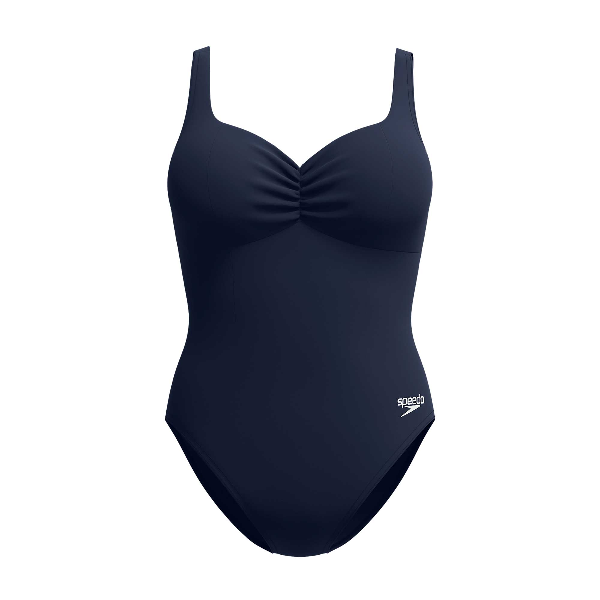 The Aquanite is a sculpture swimsuit from Speedo's Shaping collection, featuring a timeless and elegant design. The sculpture fabric fits perfectly to the body, accentuating feminine curves for a beautifully streamlined silhouette without compromising comfort. The swimsuit provides medium bust support, integrated into the fabric, and has an all-over shaping effect. The adjustable shoulder straps ensure a customized fit. With its soft V-neckline, this swimsuit is ideal for women with broader shoulders or those who need a larger cup size. The sculpture fabric lasts up to twice as long as standard swimwear when exposed to chlorine, allowing you to enjoy your swimsuit for longer.