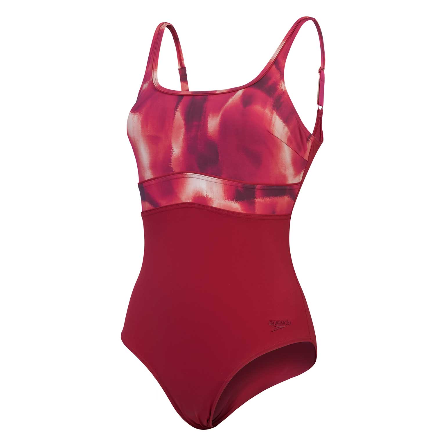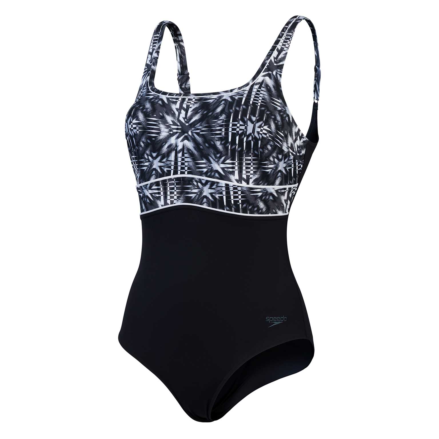The Contour Eclipse is a sculpting swimsuit from Speedo's Shaping collection and the replacement for the Contourlustre. The sculpting fabric fits perfectly to the body and accentuates the feminine curves for a beautifully streamlined figure without compromising on comfort. The swimsuit offers medium bust support woven into the fabric and has an all-over shaping effect. The adjustable shoulder straps allow you to perfectly adjust the fit. The Contour Eclipse features a straight neckline that provides enough space for women who are broader on top or need a larger cup size. The sculpting fabric lasts up to 2x longer than standard swimwear when swimming in chlorine, allowing you to enjoy your swimsuit for longer.