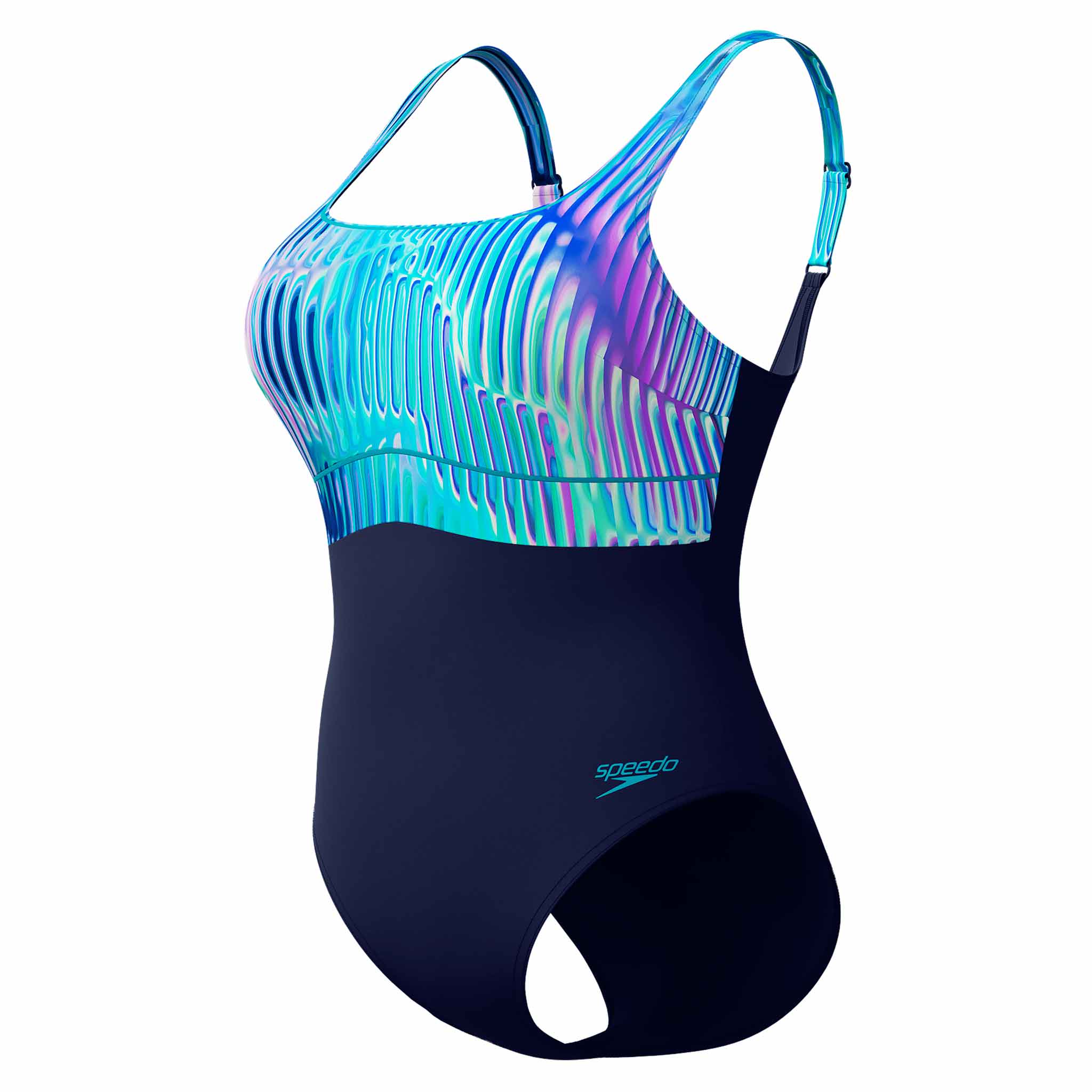The Contour Eclipse is a sculpting swimsuit from Speedo's Shaping collection and the replacement for the Contourlustre. The sculpting fabric fits perfectly to the body and accentuates the feminine curves for a beautifully streamlined figure without compromising on comfort. The swimsuit offers medium bust support woven into the fabric and has an all-over shaping effect. The adjustable shoulder straps allow you to perfectly adjust the fit. The Contour Eclipse features a straight neckline that provides enough space for women who are broader on top or need a larger cup size. The sculpting fabric lasts up to 2x longer than standard swimwear when swimming in chlorine, allowing you to enjoy your swimsuit for longer.