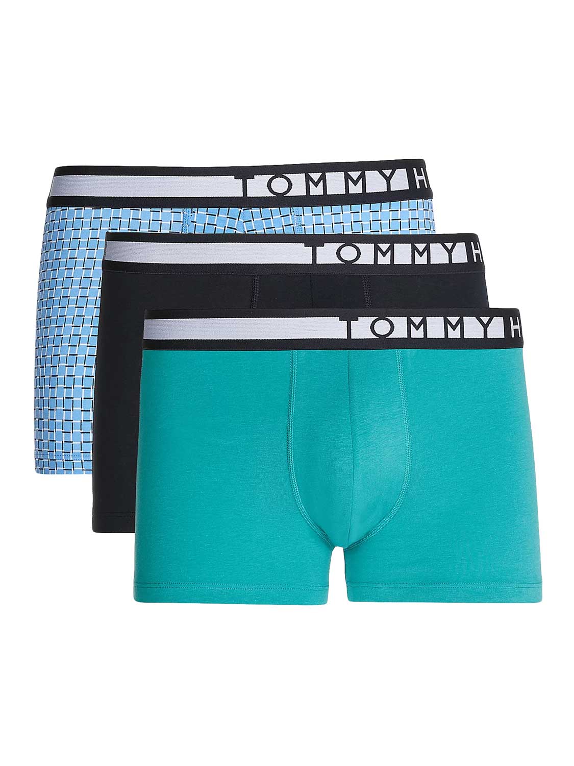 This set of 3 boxers is made from stretch cotton, available with 3 boxers each in a unique color/print. The boxers are designed in a trunk model and feature Tommy Hilfiger branding.