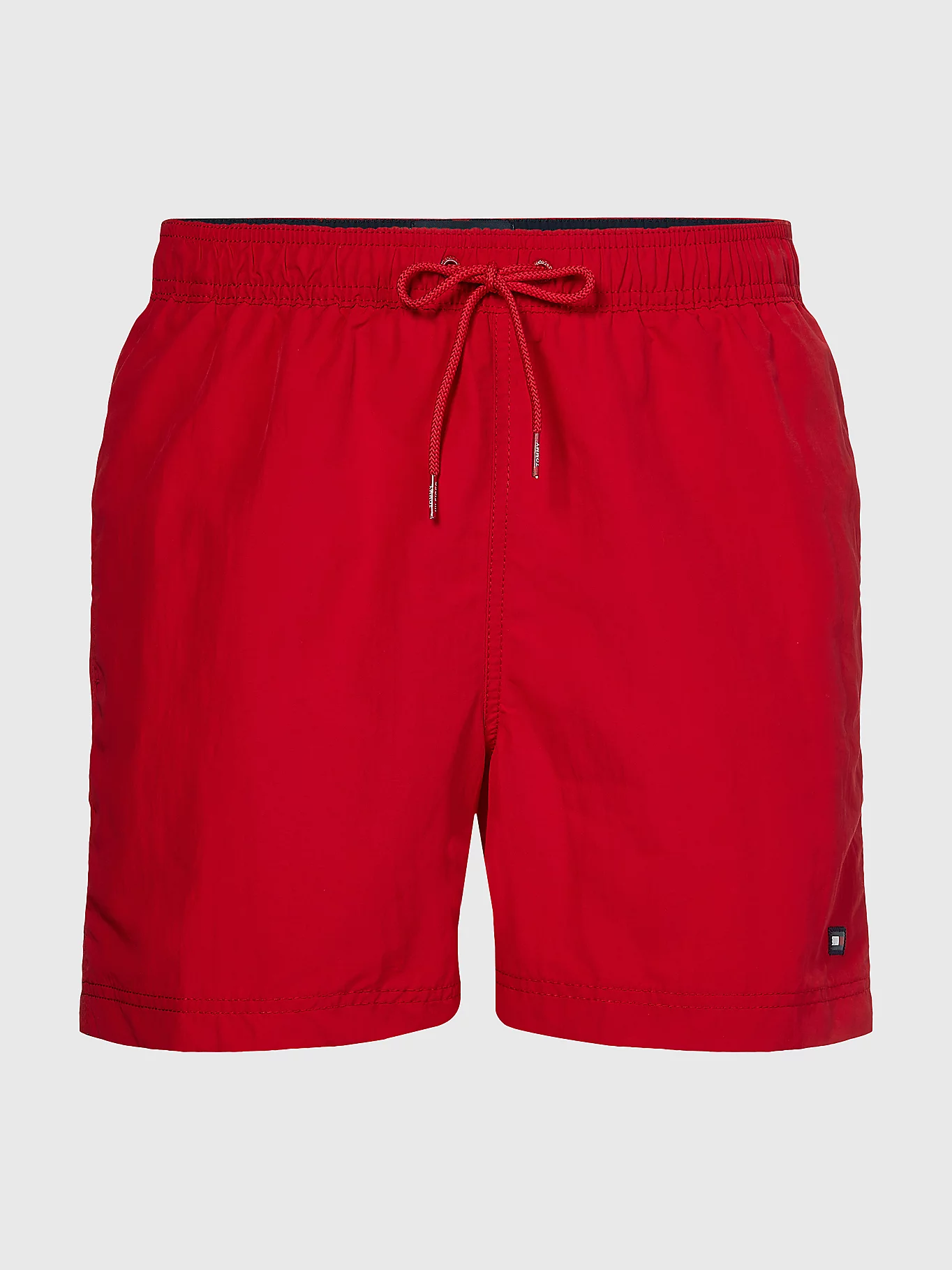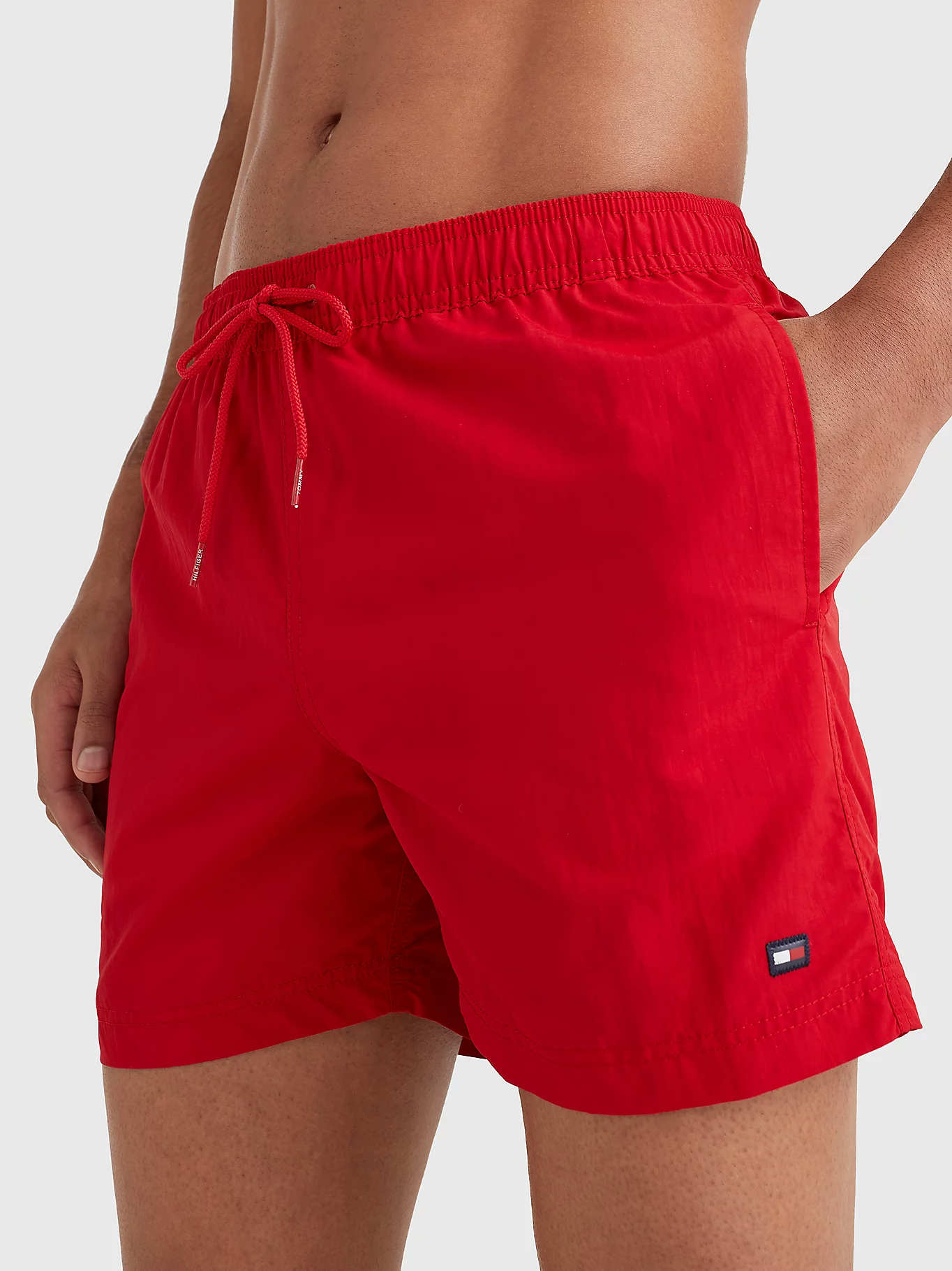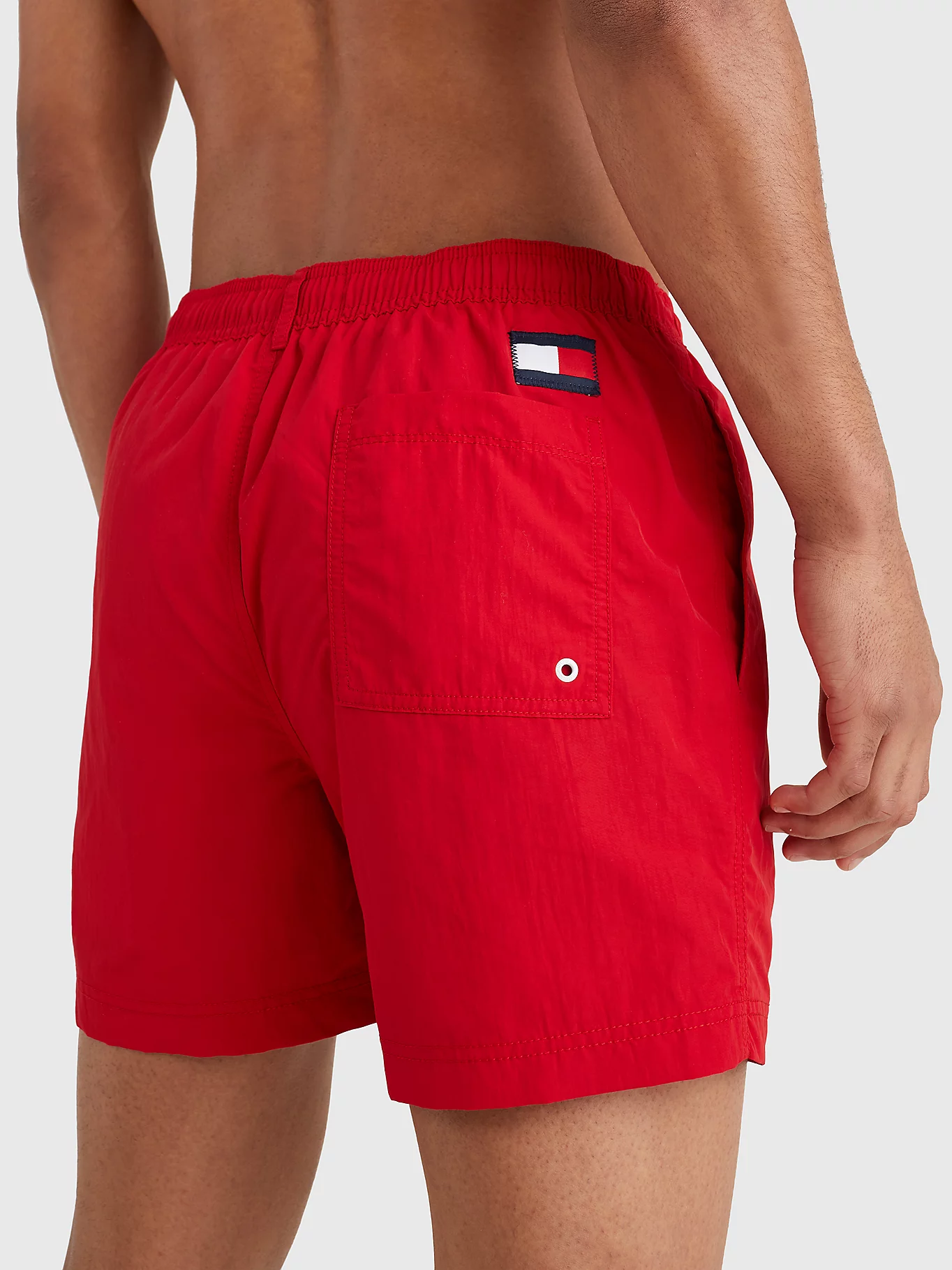 These Tommy Hilfiger swim shorts have a mid-length design in a solid color. The swim shorts are made from recycled nylon and feature a drawstring in the waistband for the perfect fit. On the left and right sides, there are side pockets in the seam with a back pocket for a finishing touch.