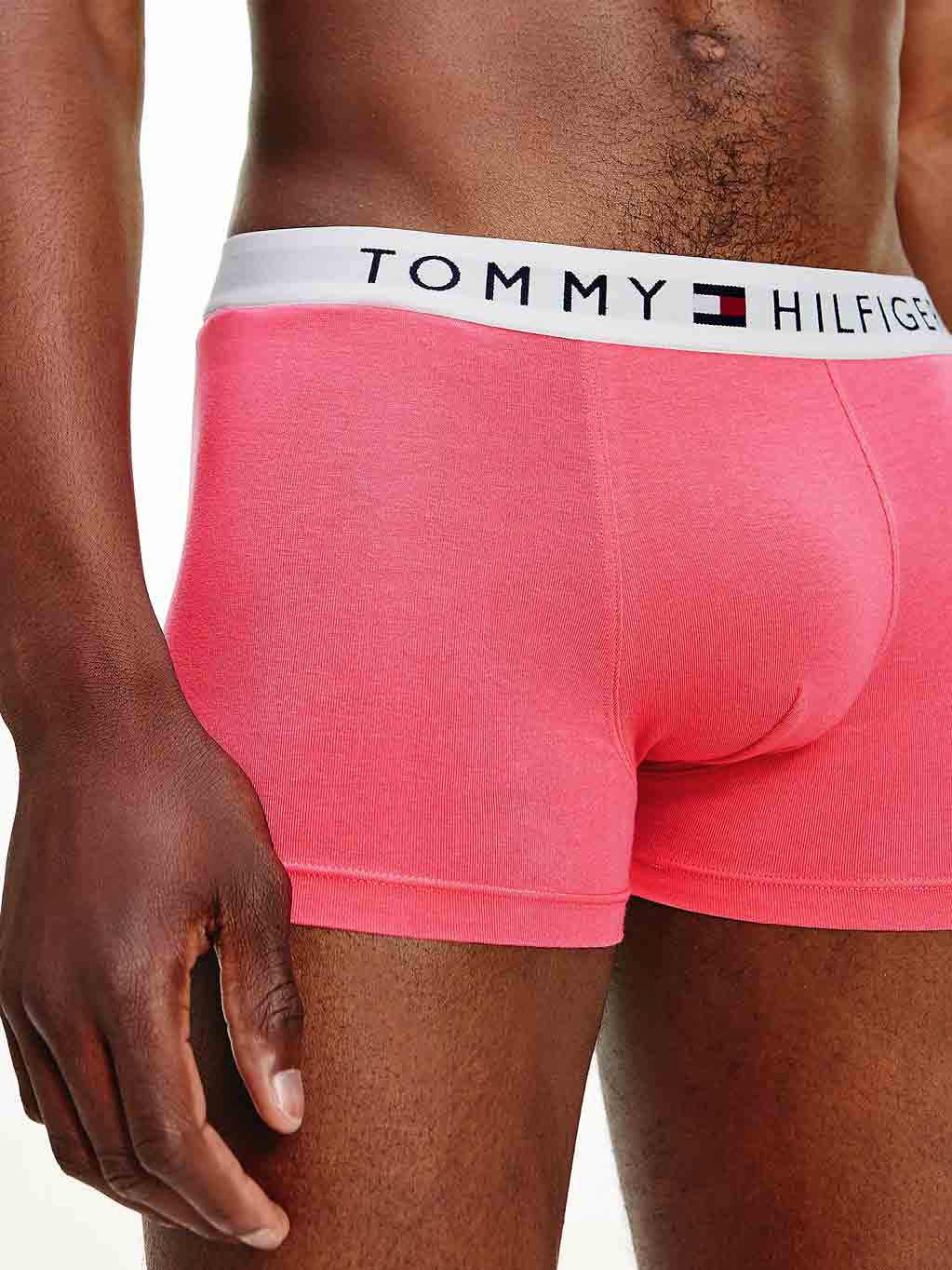 A Men's boxer from Tommy Hilfiger made from comfortable stretch cotton. This short boxer with a modern comfortable fit features the signature Tommy Hilfiger waistband with the Tommy flag centered. The boxer is available in pink, yellow, and blue.
