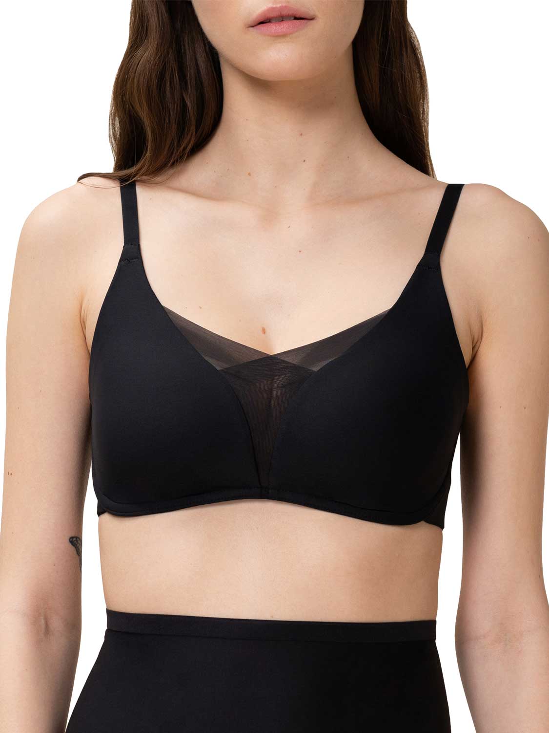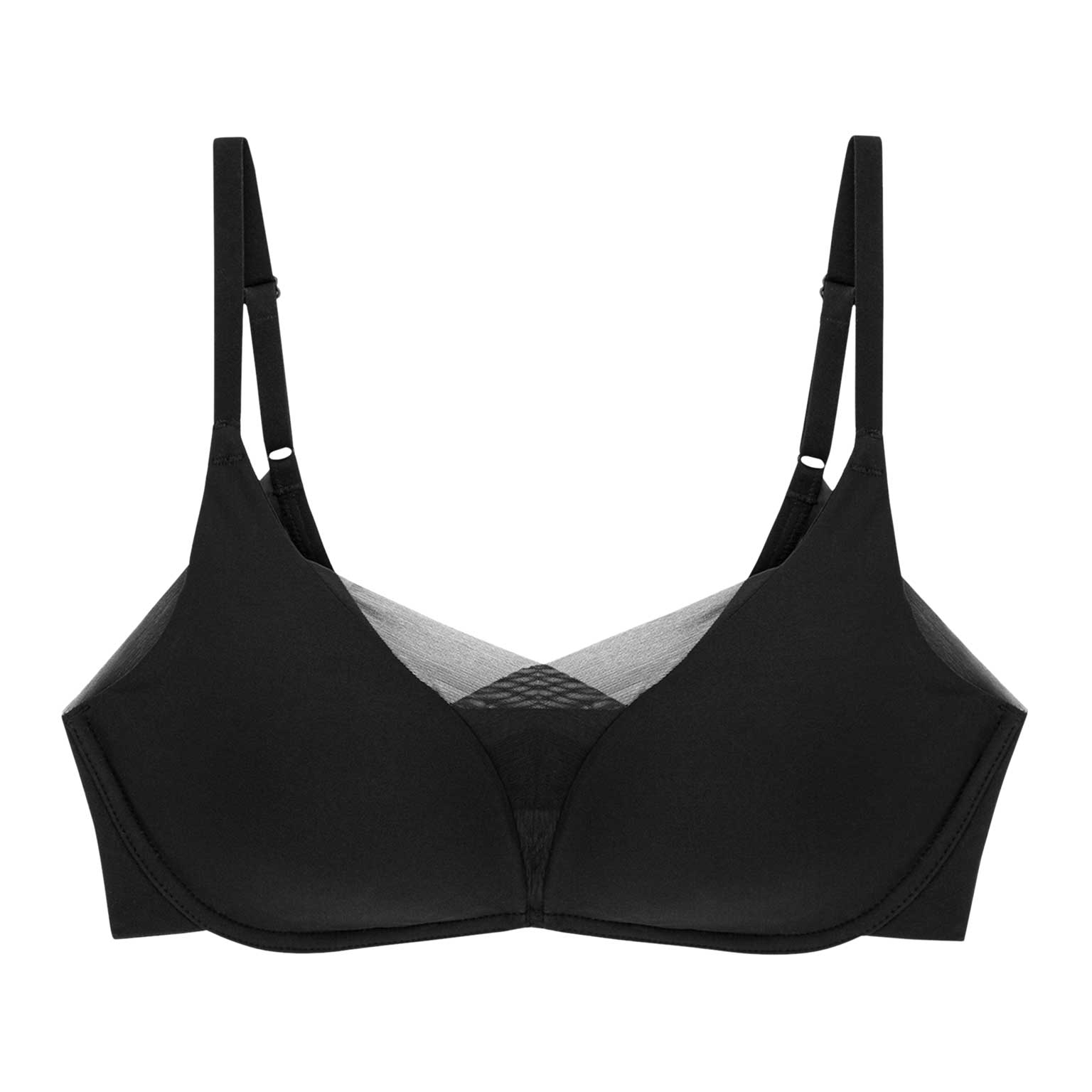 With the Smart Shape BH from Triumph, discomfort is a thing of the past. The Smart Shape BH is a wire-free bra that provides you with the support of an underwire bra. The Smart Shape BH departs from traditional bra sizing, meaning you don't have to keep buying new bras if your size changes. With the elastic band around the bust and the elastic molded cups, the bra perfectly adapts to the shape of your body, and with the adjustable shoulder straps, you can always adjust the bra for the best fit. Because the bra has no underwire, it doesn't press into the bust, providing you with optimal freedom of movement. Thus, you always have the best comfort and ease of wear with the Smart Shape BH.