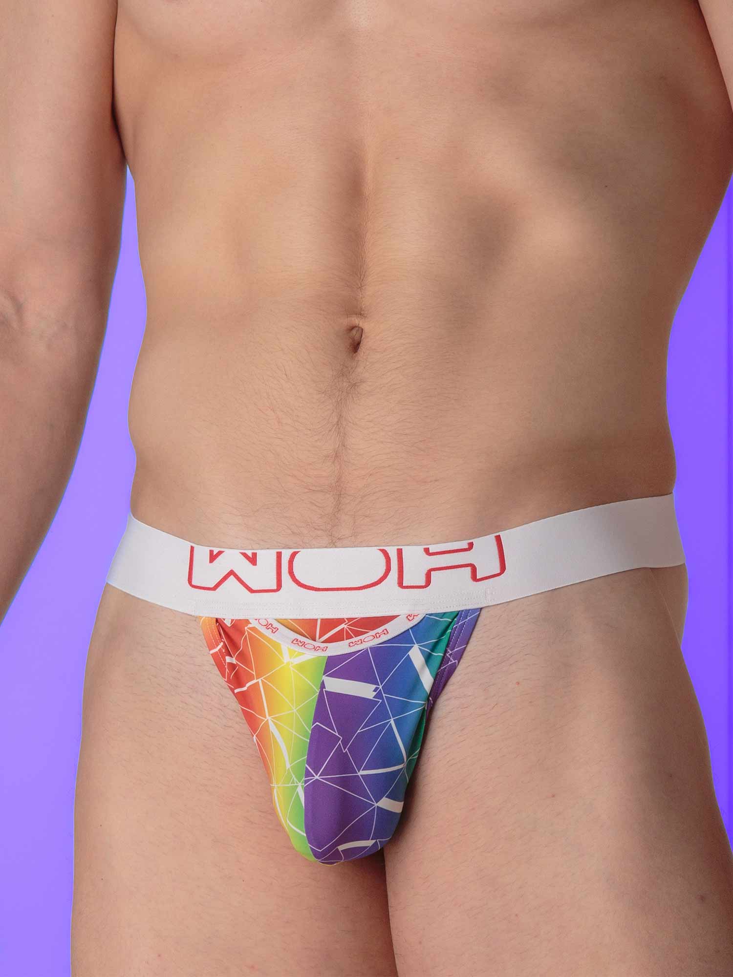 The Sexy Fun G-String by WOH is a cheeky and colorful must-have. The rainbow print combined with the sporty white waistband featuring a red WOH logo creates a playful and sexy look. The string fits snugly against the skin and offers just the right amount of support while leaving your backside completely exposed. The specially contoured pouch enhances your manhood and provides ultimate comfort.